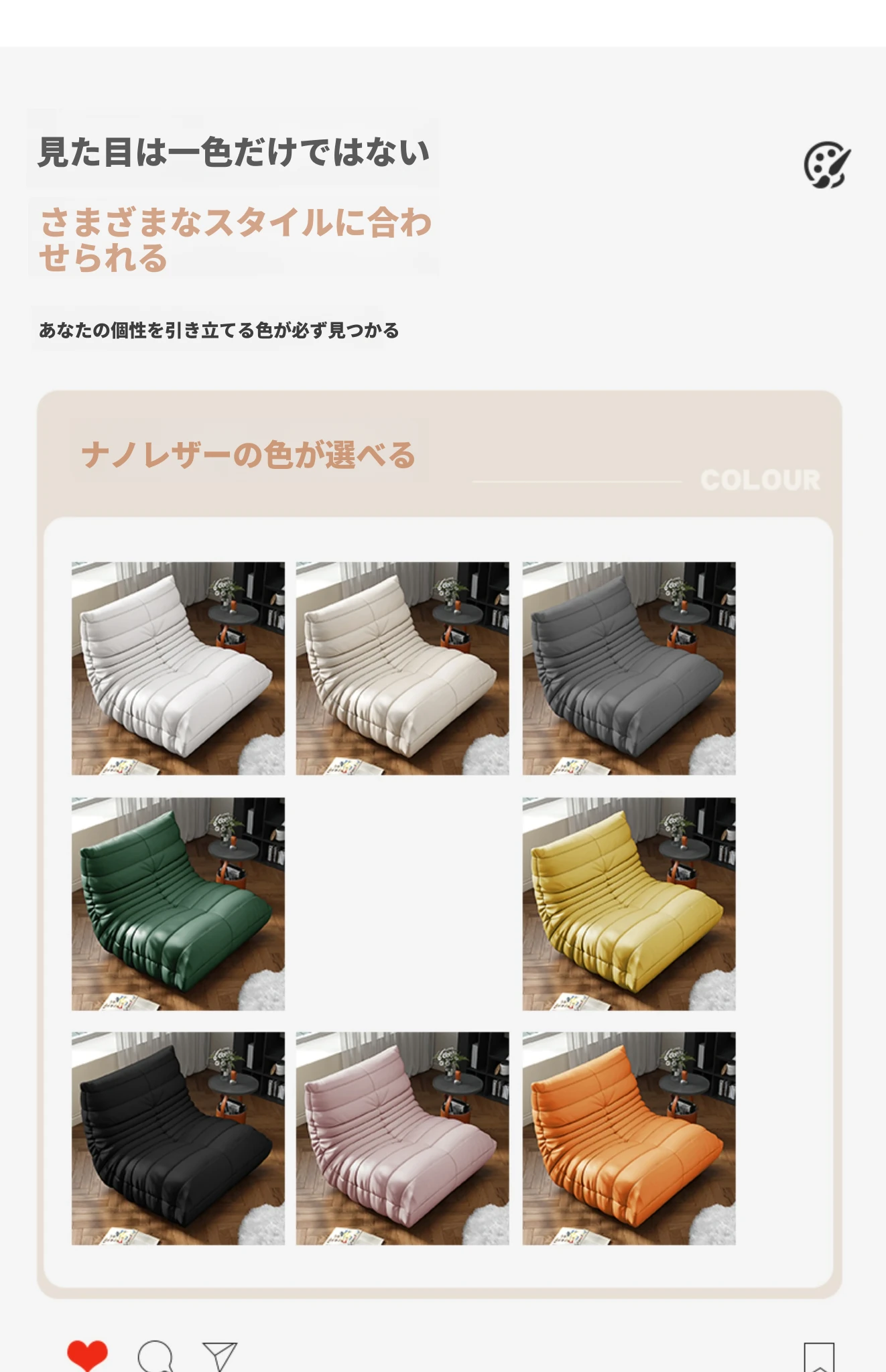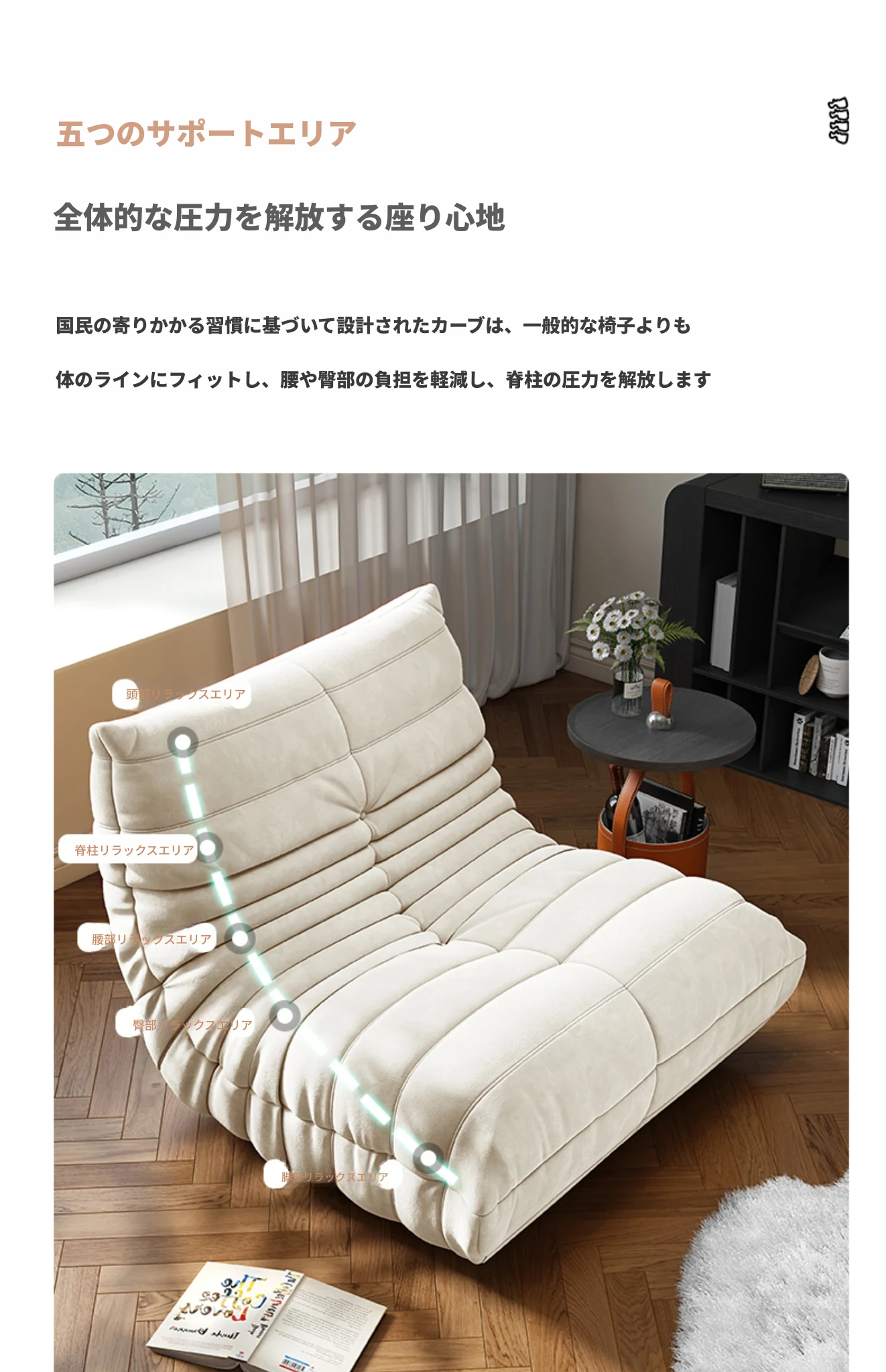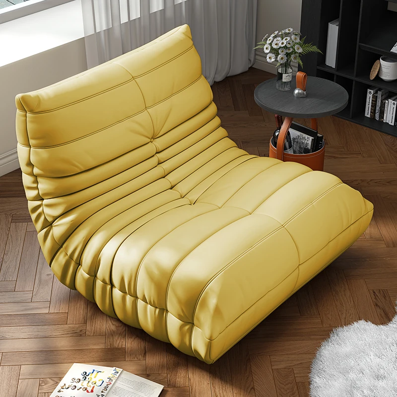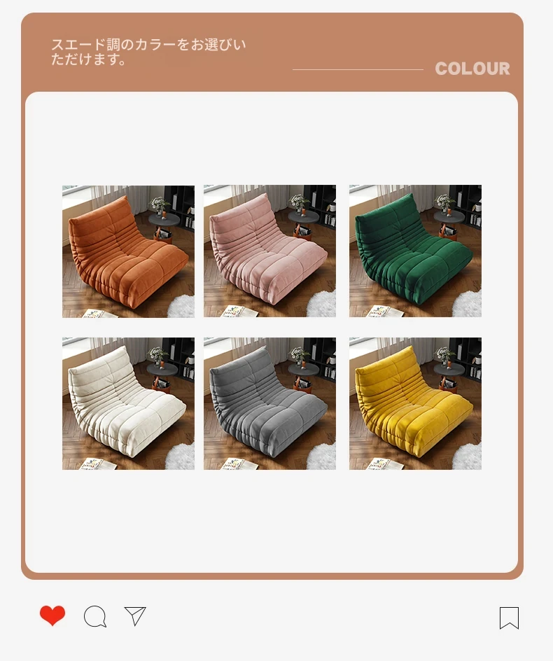 リラックスできる!寝転んでも快適な毛虫ソファ - バルコニーや畳スペースに最適な一人用リクライニングソファ。お部屋のインテリアにもぴったりの、心地よいラウンジチェアです!