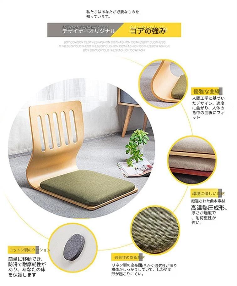 リラックスチェア|脚なし座椅子|畳用|寮生活にも最適!|ベッドや窓辺でくつろげる|快適なクッション付き|和室にもぴったり!