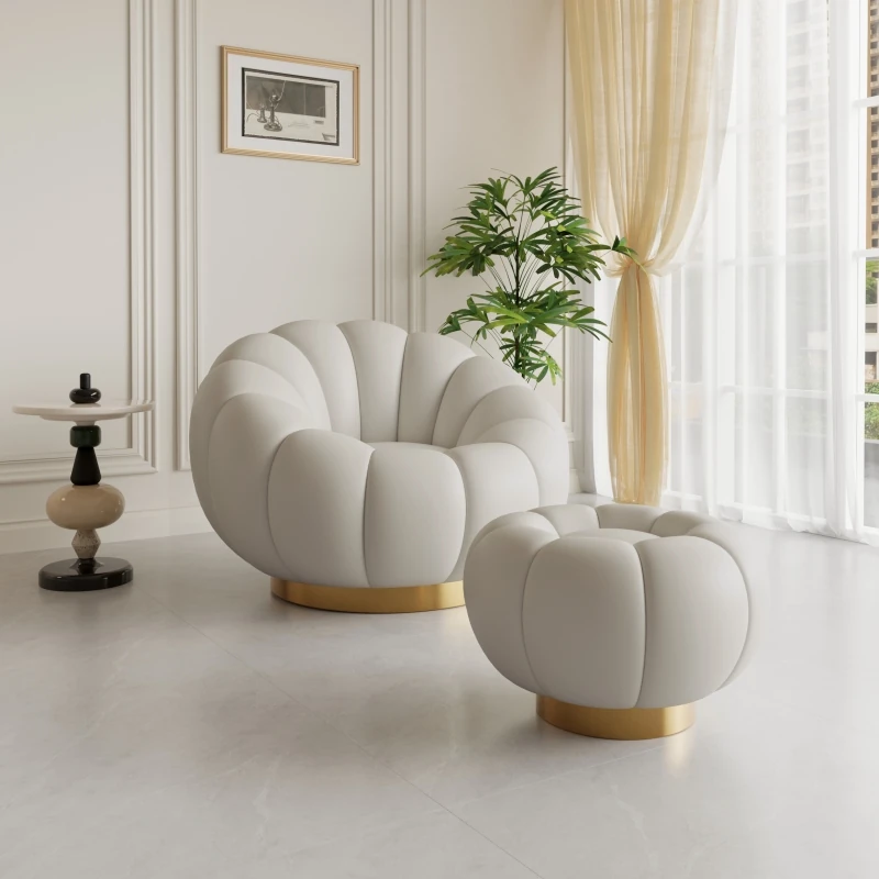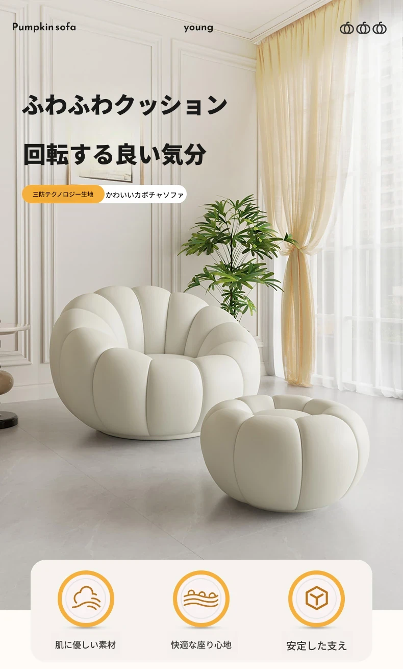 アイボリー(キャットグラブ素材)回転式【汚れ防止・お手入れ簡単・耐摩耗・耐傷】+オットマン