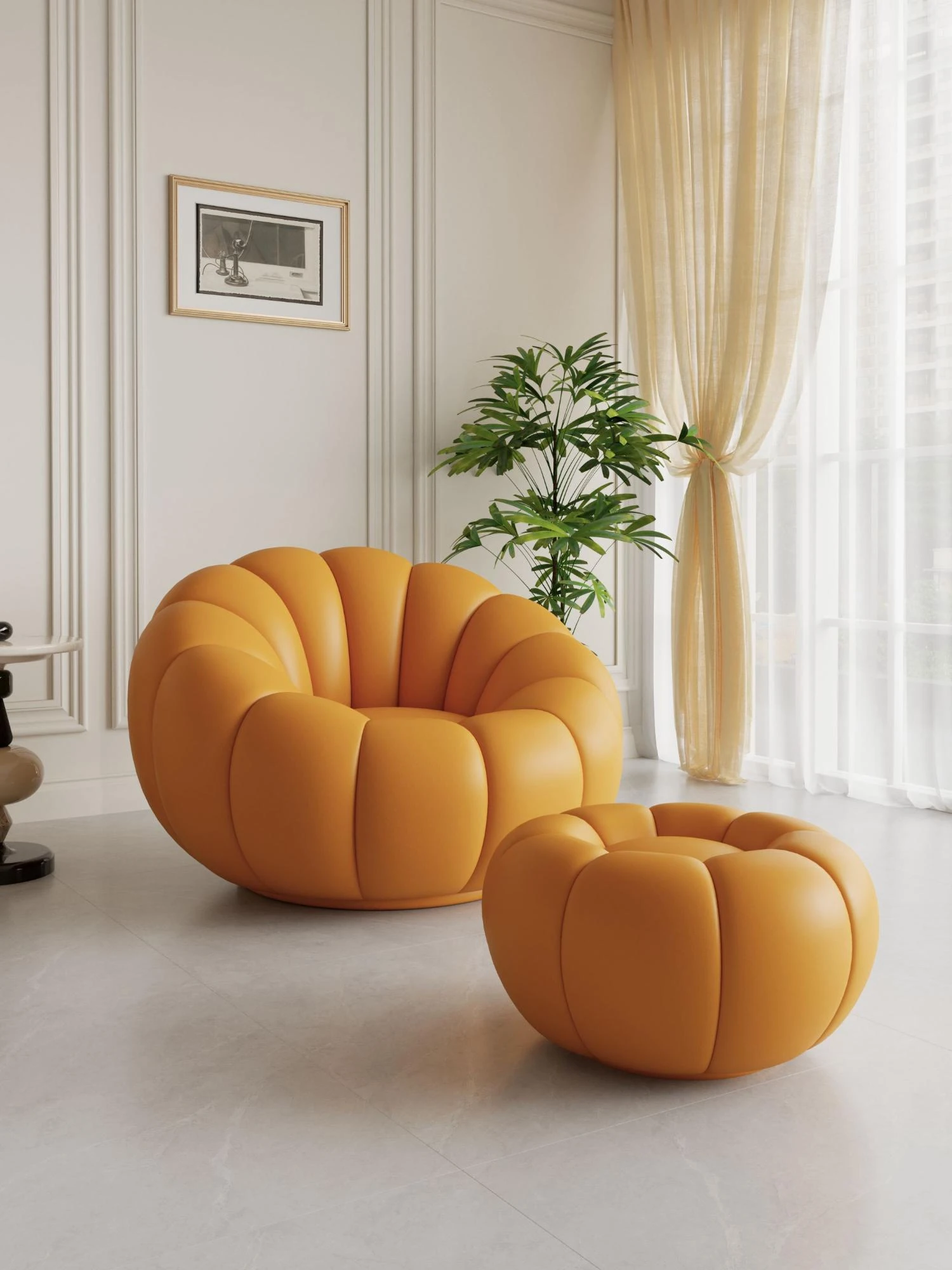 オレンジ色(テクニカルファブリック)回転可能【防汚・お手入れ簡単・耐摩耗・通気性】+フットスツール