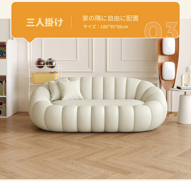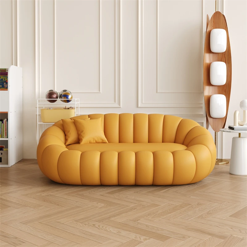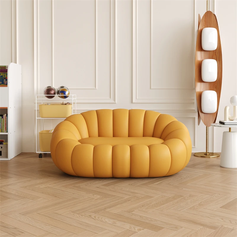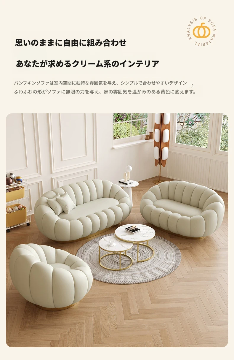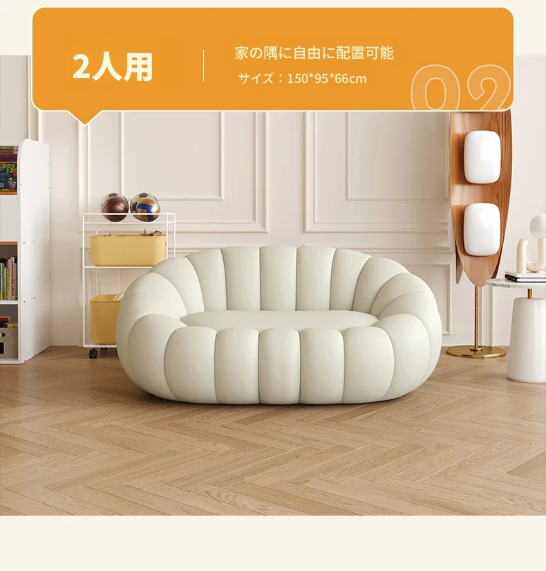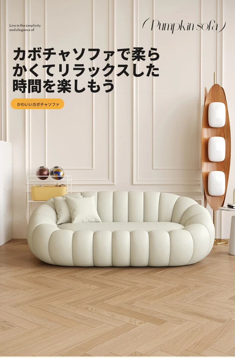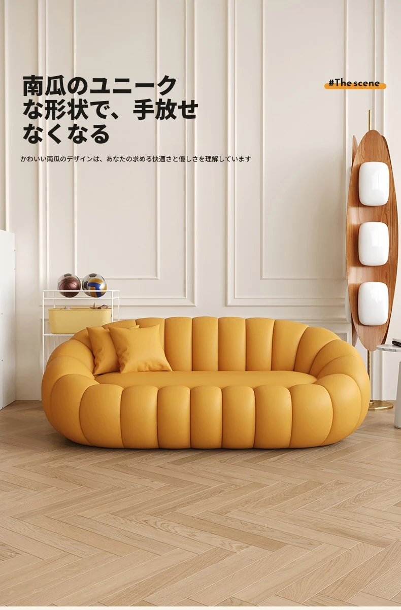 南瓜ソファー|リラックス空間を演出する美容院・アパート・カフェに最適!インスタ映えするデザインで、二人掛け・三人掛けもご用意。猫が爪を研げる皮素材使用で、耐久性も抜群!