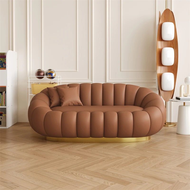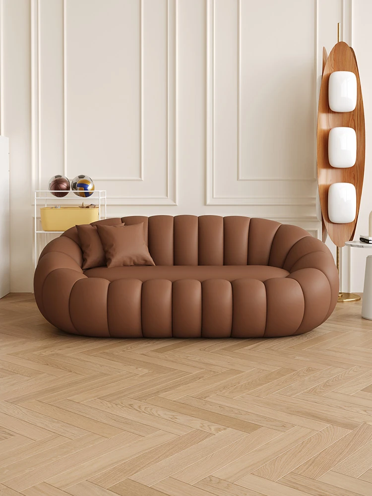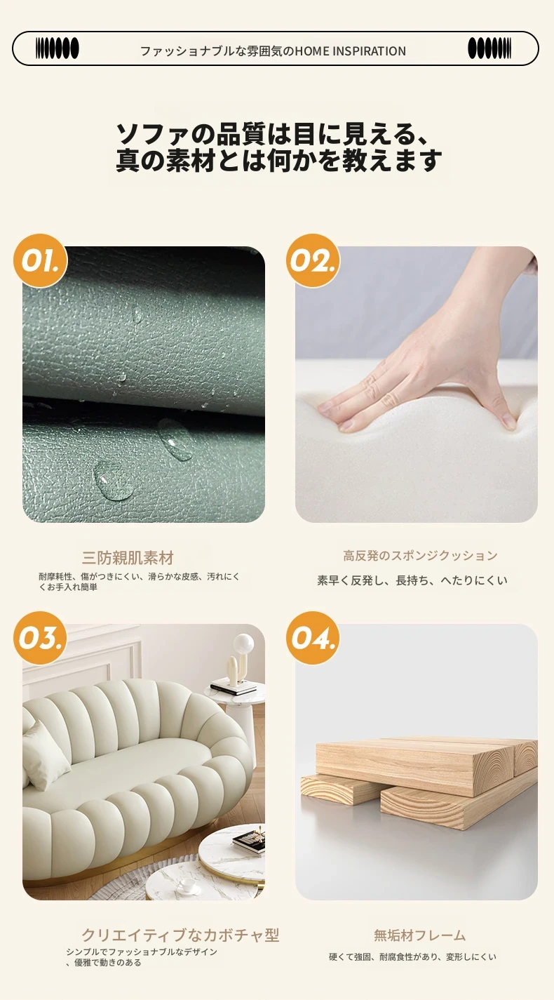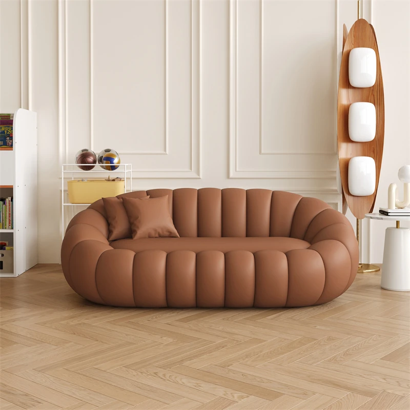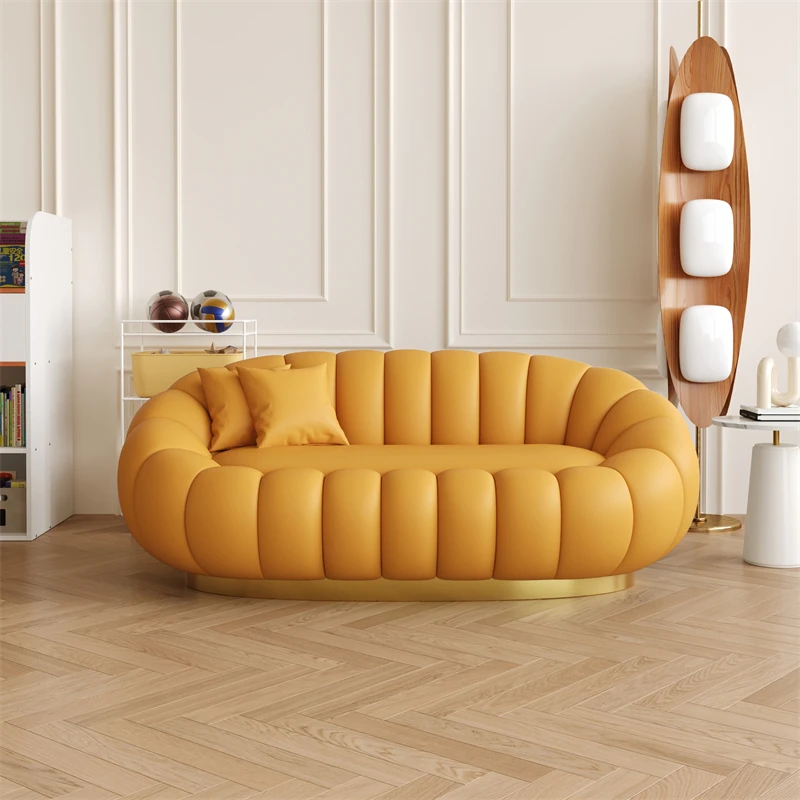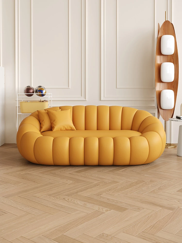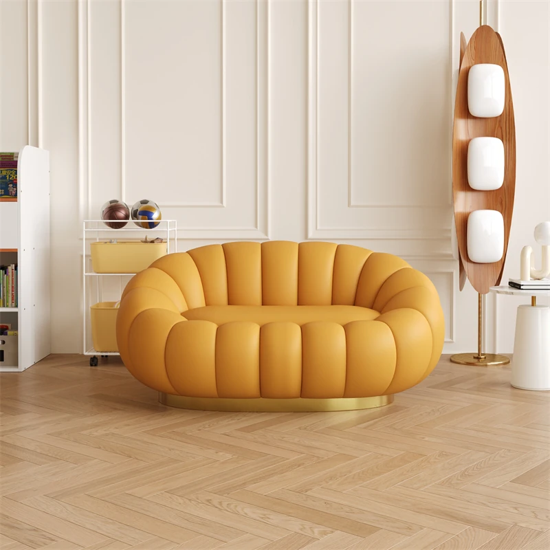 南瓜ソファー|リラックス空間を演出する美容院・アパート・カフェに最適!インスタ映えするデザインで、二人掛け・三人掛けもご用意。猫が爪を研げる皮素材使用で、耐久性も抜群!