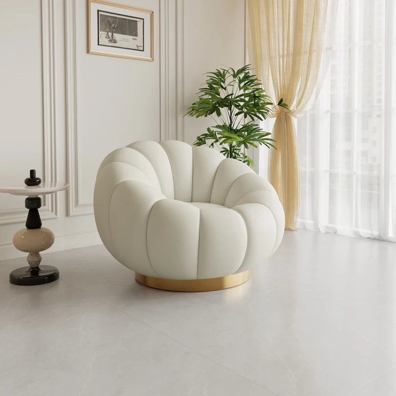 アイボリー(キャットスクラッチレザー)シングルソファ【回転可能】