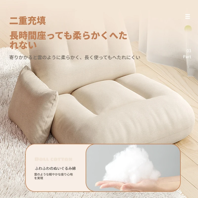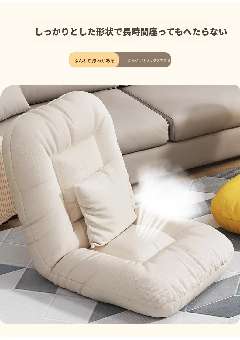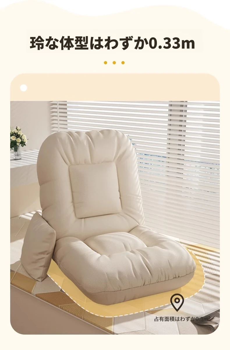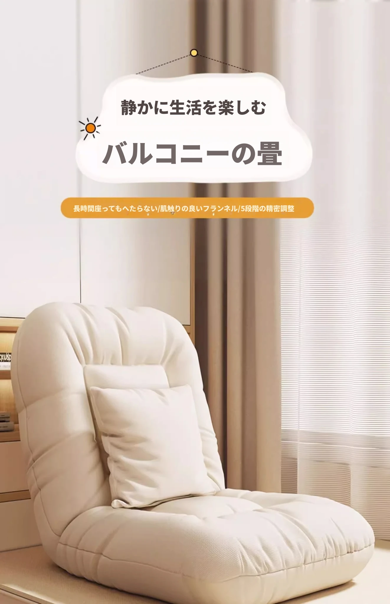 バルコニーや窓辺にぴったり!タタミスタイルのリラックスソファ。学生寮や寝室での読書に最適な背もたれ付きチェア。快適さとスタイルを兼ね備えた、あなたのくつろぎスペースを演出します!