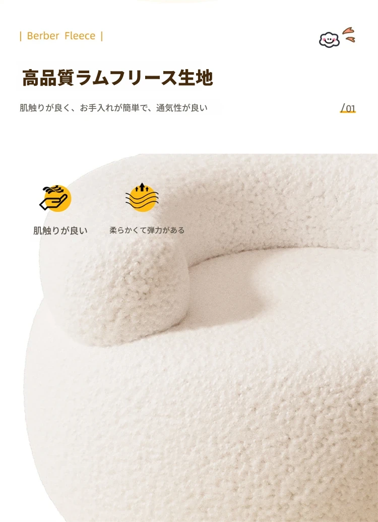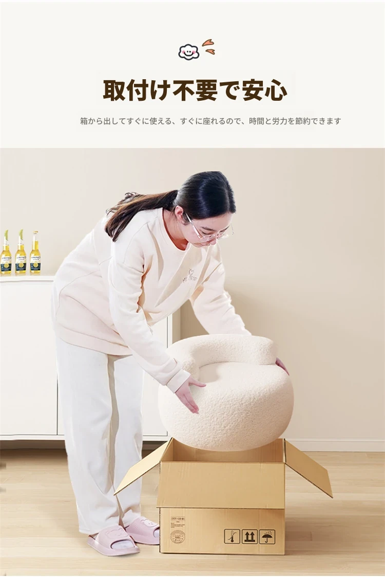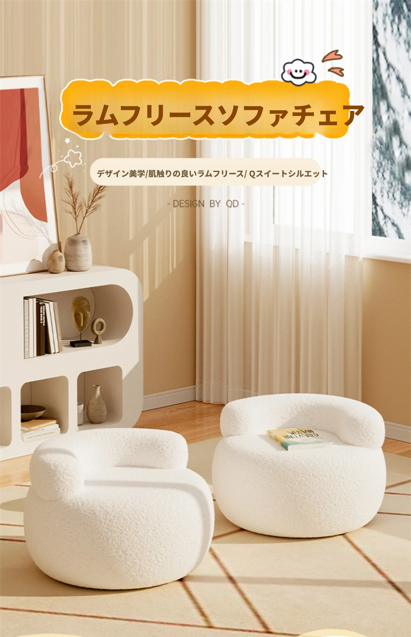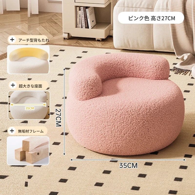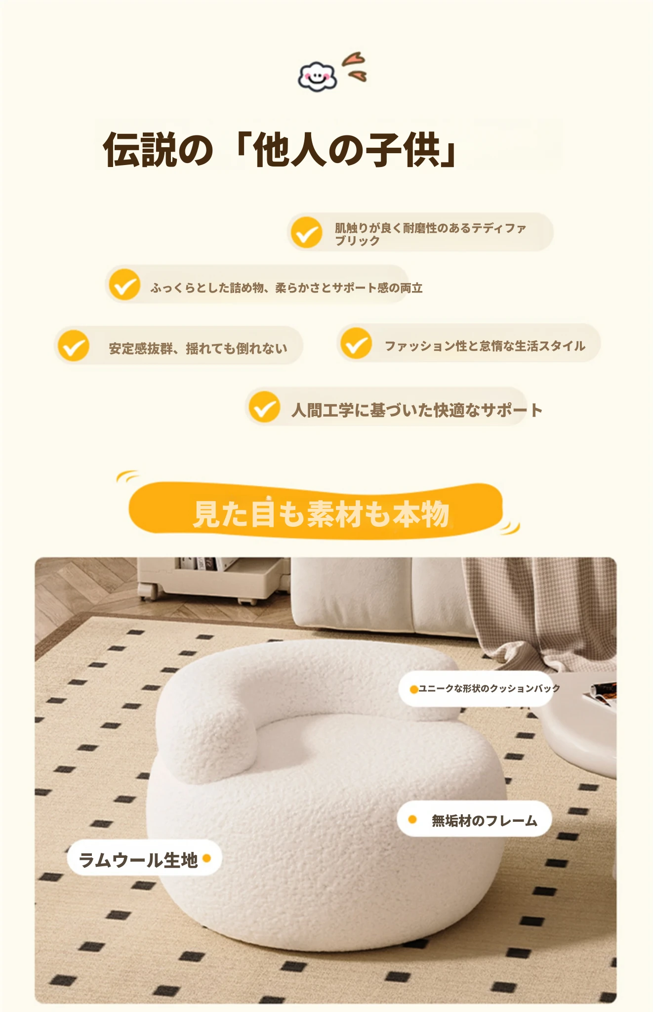 クリームカラーの一人用リラックスソファチェア|家庭用ソフトパックスツール|コンパクトなくつろぎ用低椅子|ネイルチェアにも最適!あなたのくつろぎ空間を演出します。