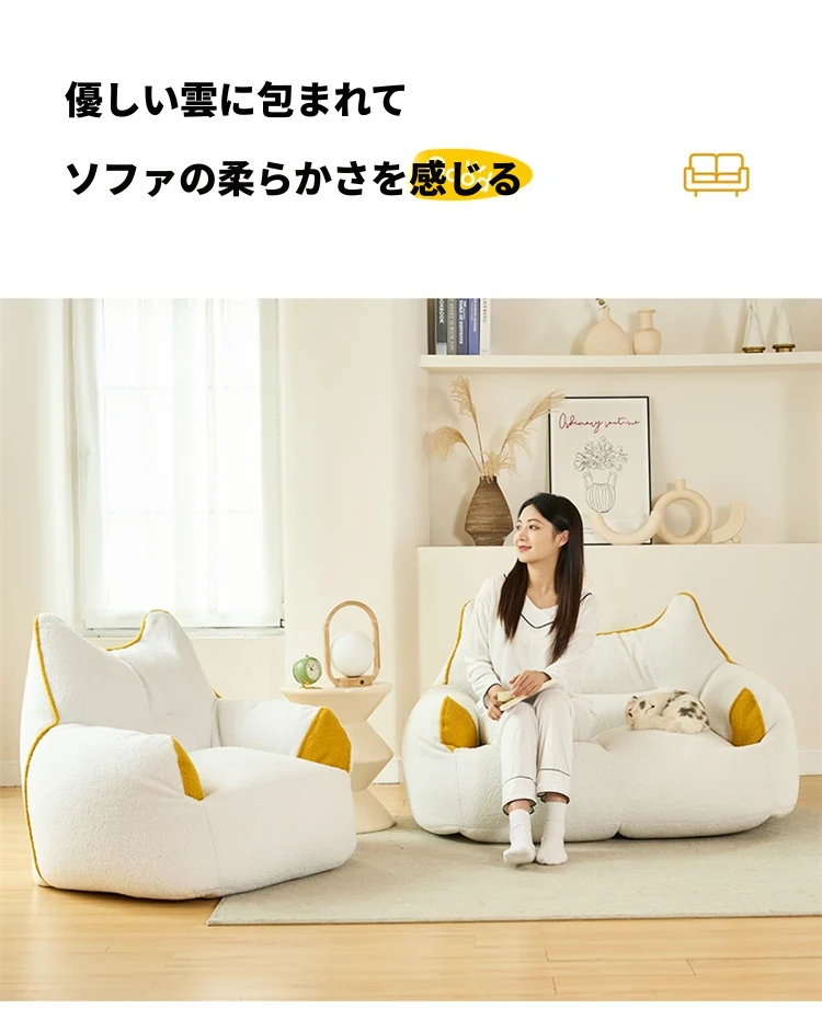 クリーム風のおしゃれなリラックスソファ!寝転んでも寝られる、リビングにぴったりな一人用・二人用の畳スタイル。インスタ映えする人間用犬小屋のような可愛いデザインで、癒しの空間を演出します。