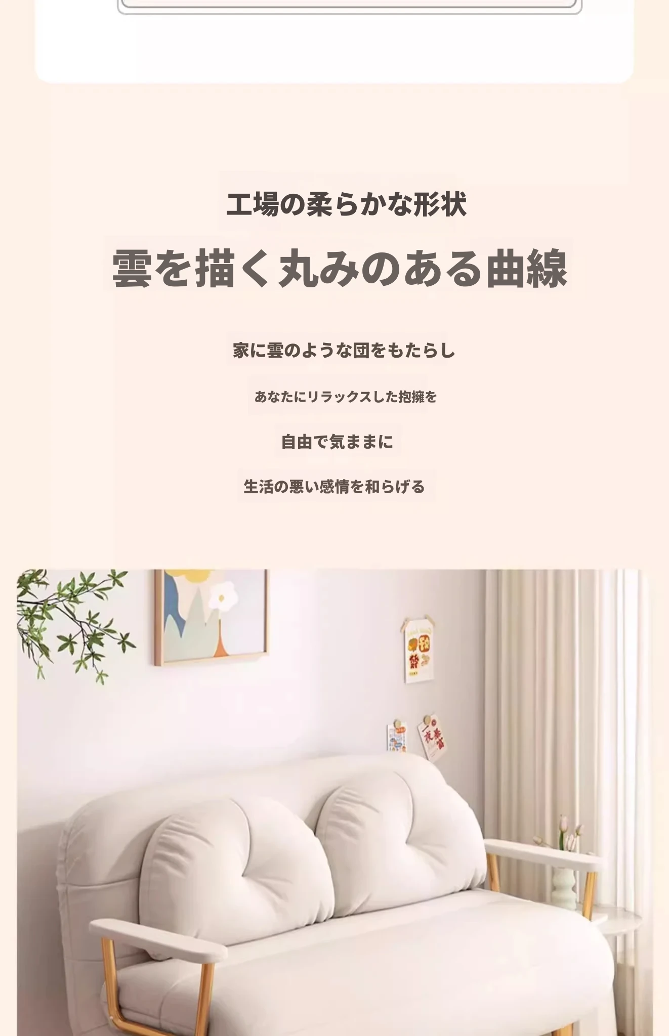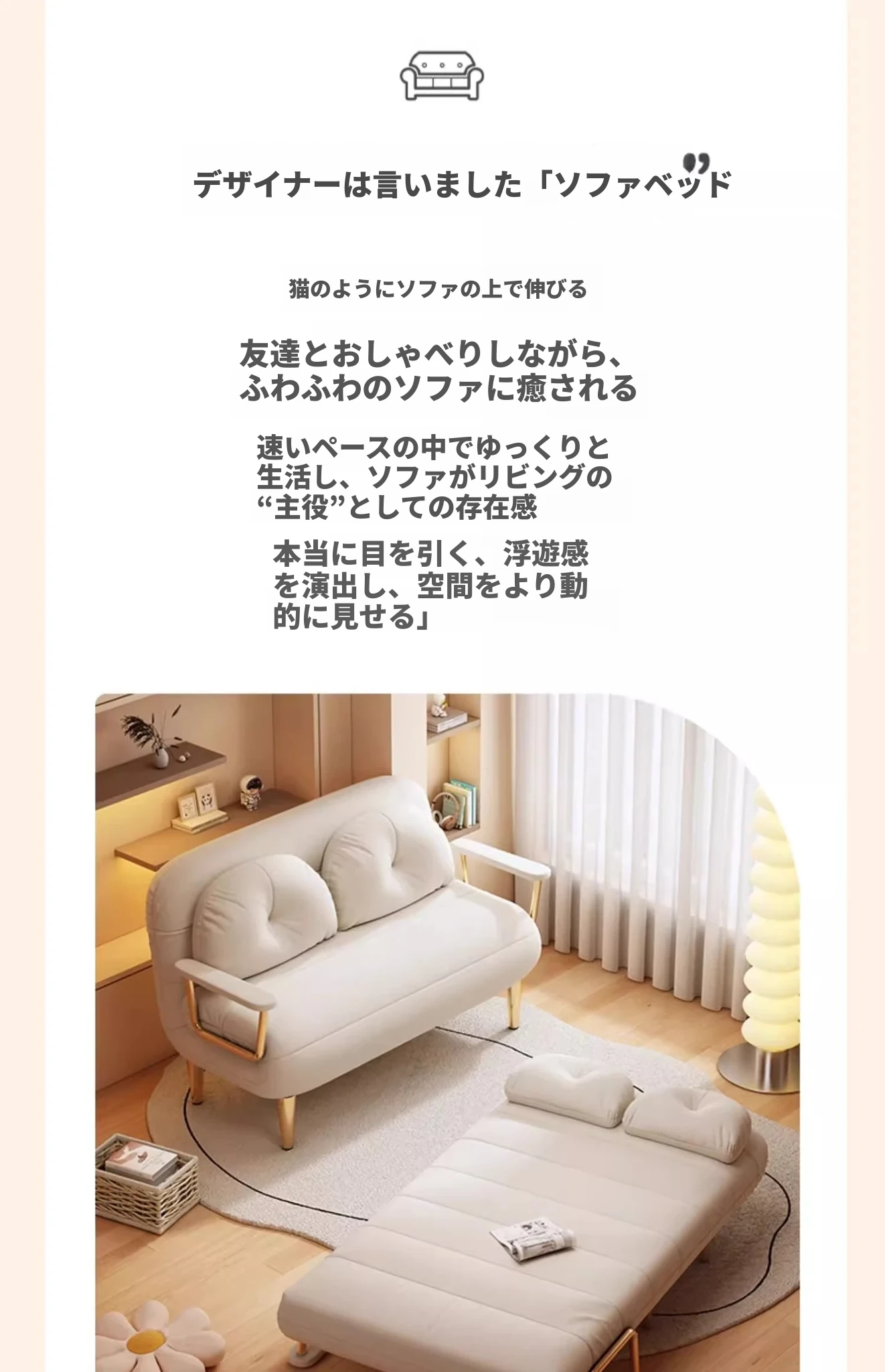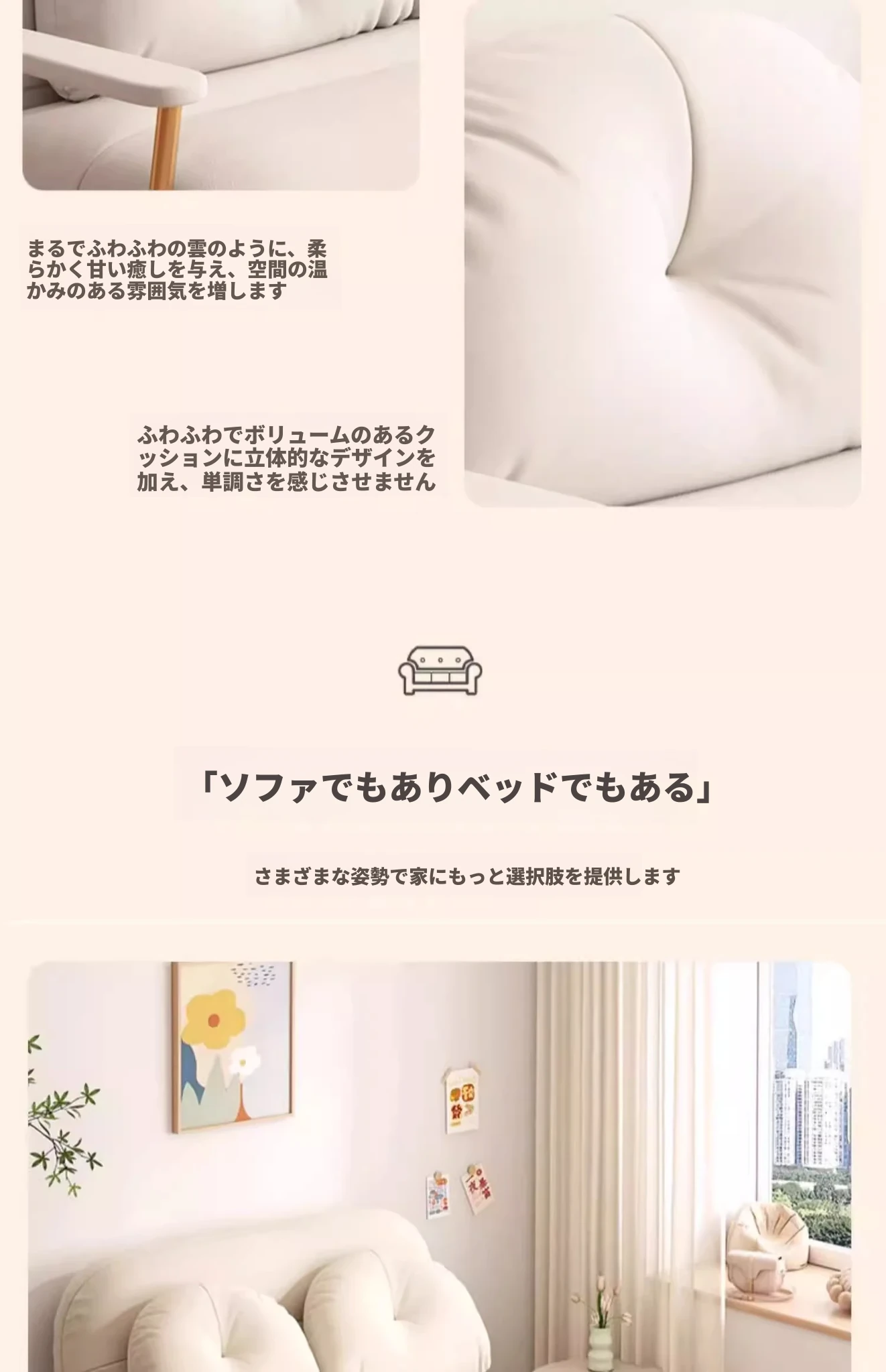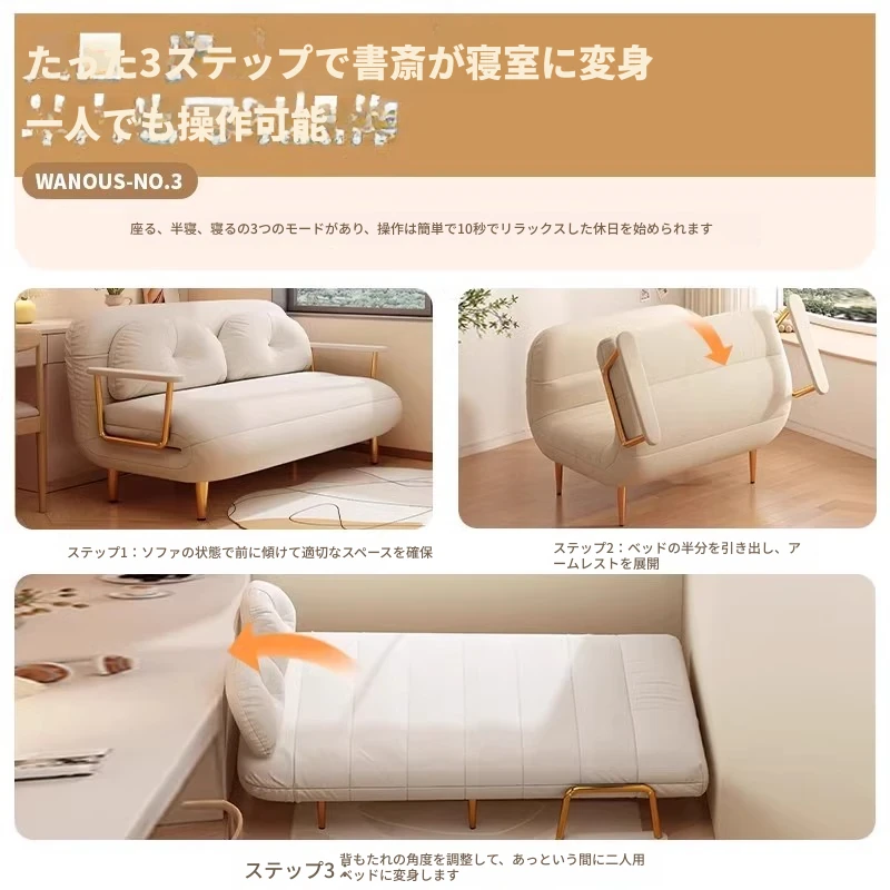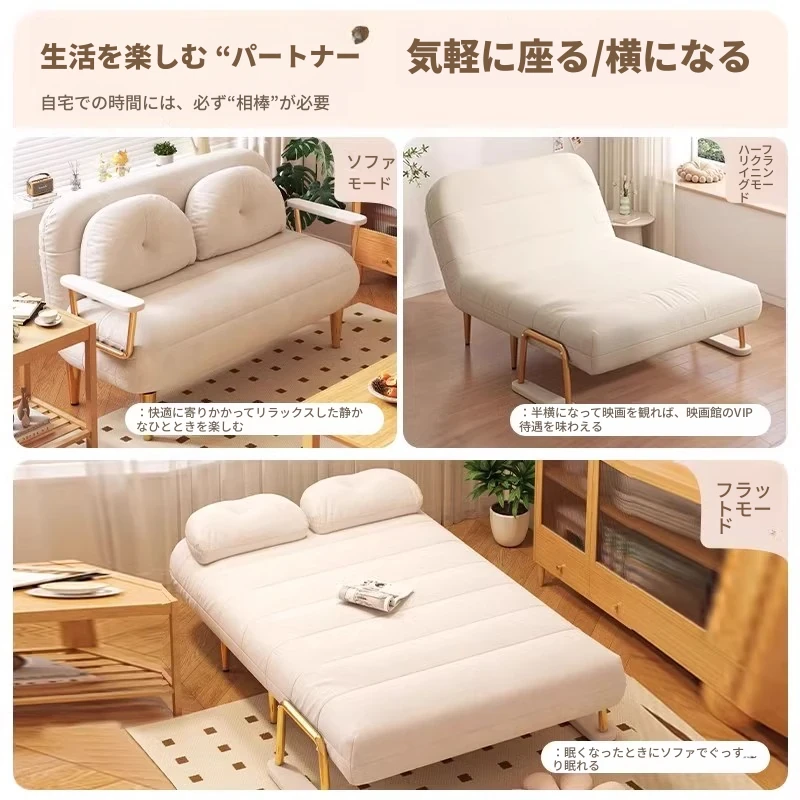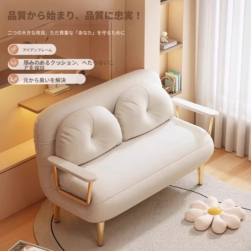 クリーム風ファー雲のソファベッド 折りたたみ式 オフィスやランチ休憩に最適!二人用リビング・バルコニー向けのコンパクトなリラックスベッド。伸縮可能で使い勝手抜群!