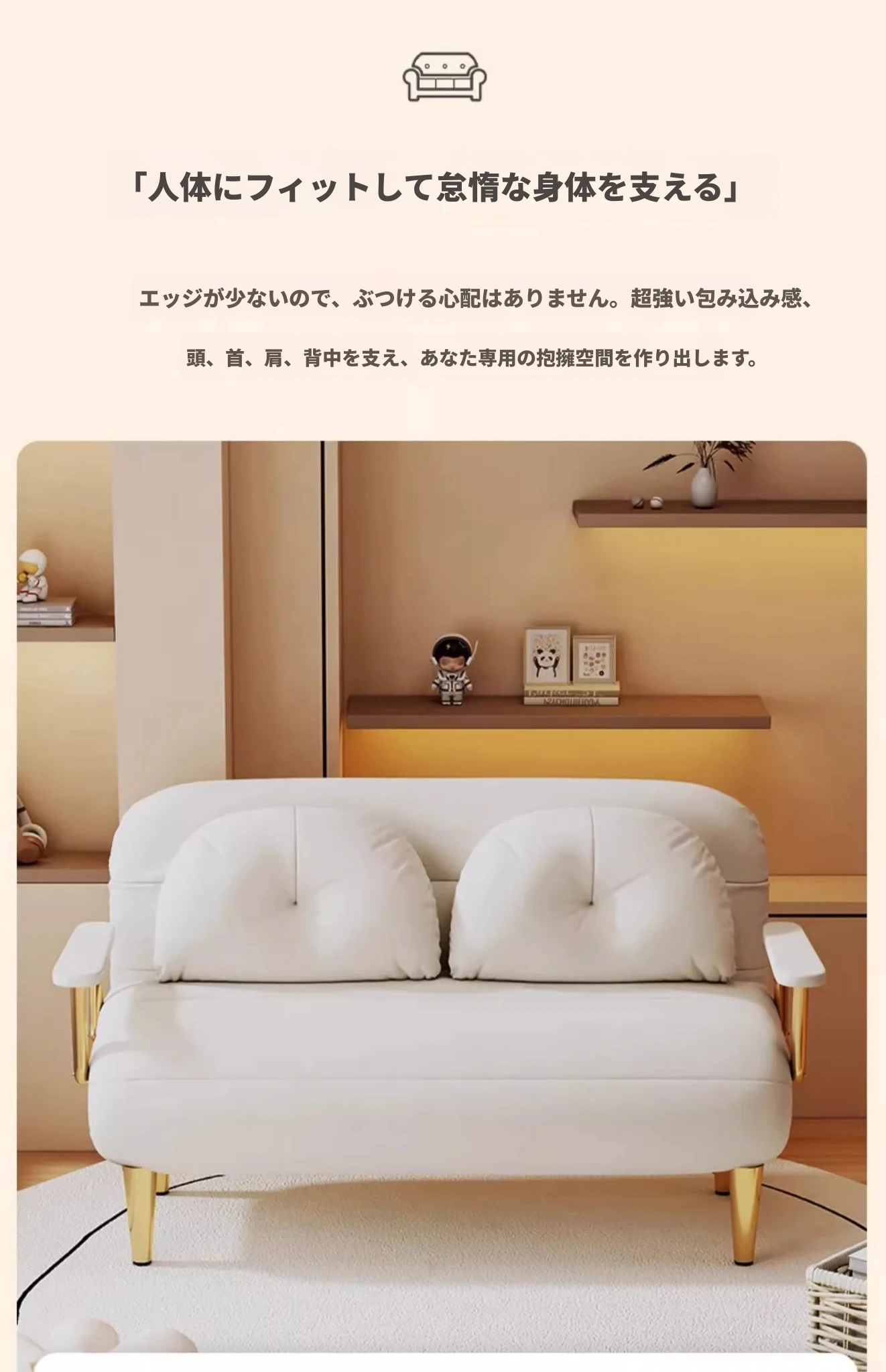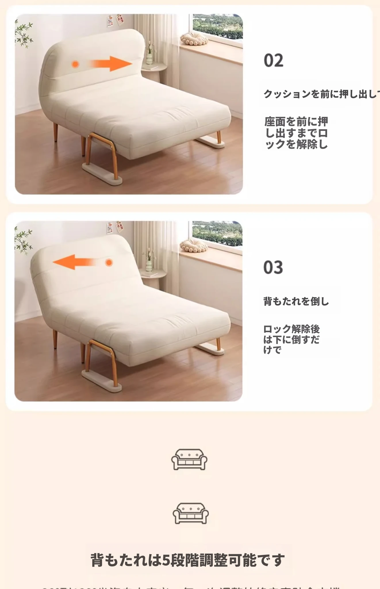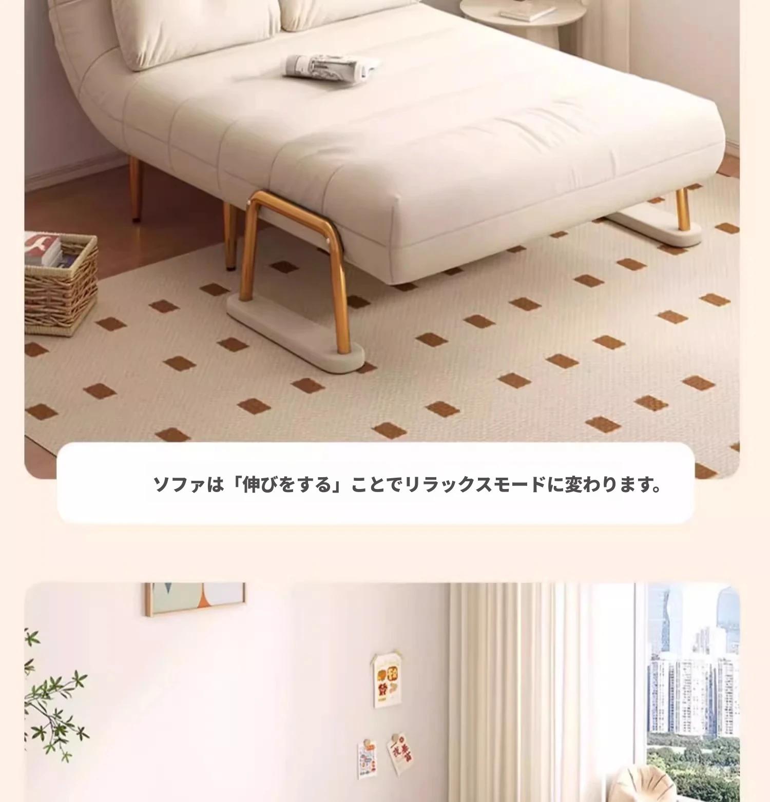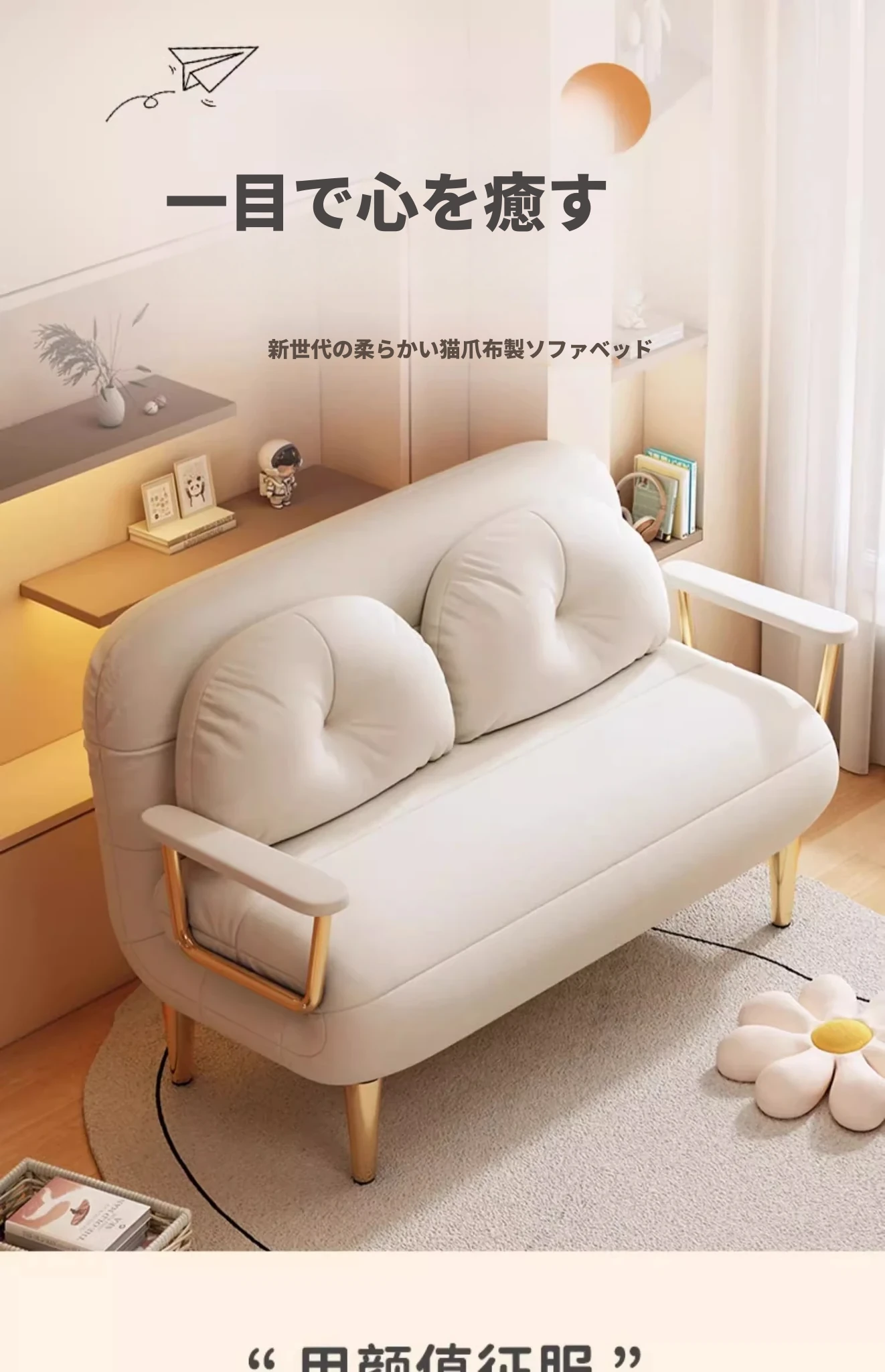 クリーム風ファー雲のソファベッド 折りたたみ式 オフィスやランチ休憩に最適!二人用リビング・バルコニー向けのコンパクトなリラックスベッド。伸縮可能で使い勝手抜群!