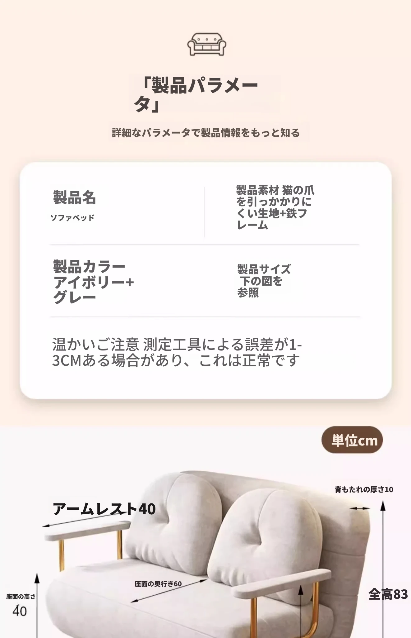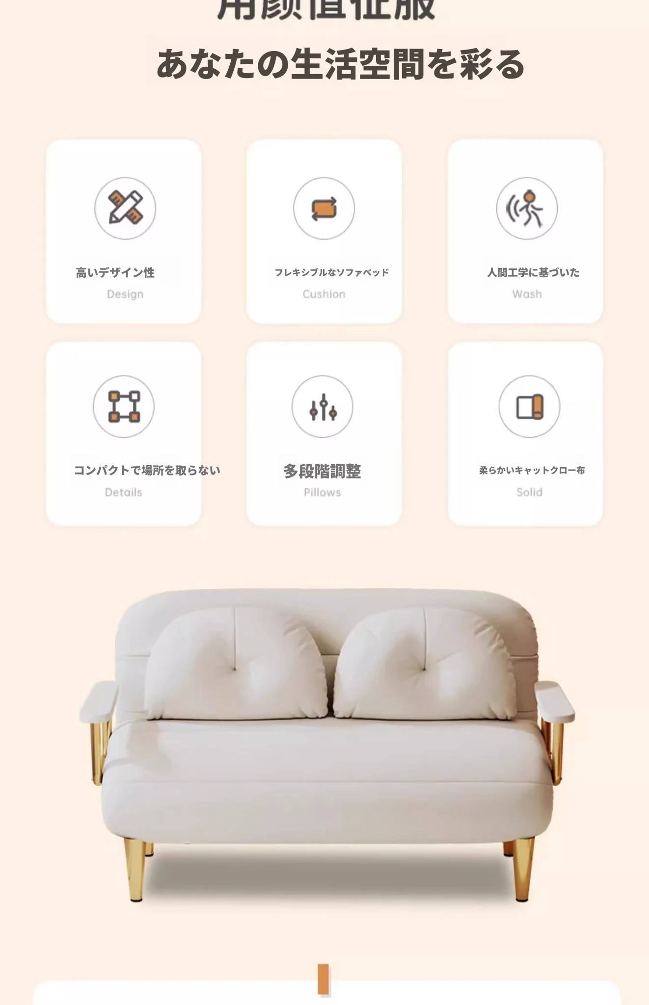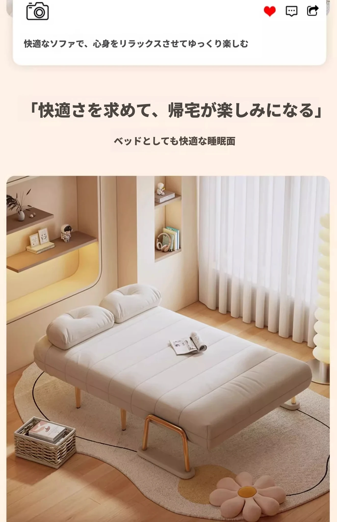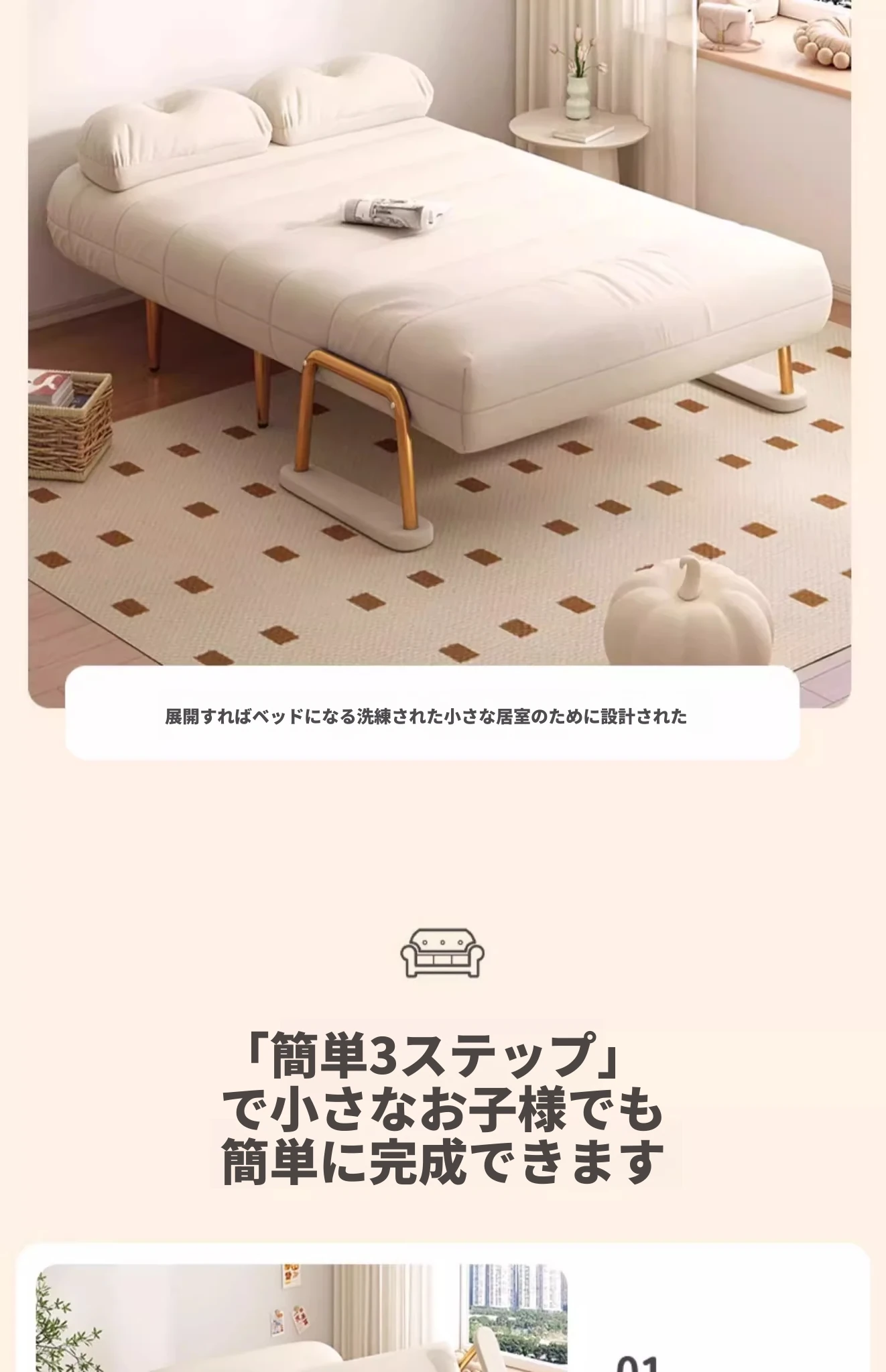 クリーム風ファー雲のソファベッド 折りたたみ式 オフィスやランチ休憩に最適!二人用リビング・バルコニー向けのコンパクトなリラックスベッド。伸縮可能で使い勝手抜群!