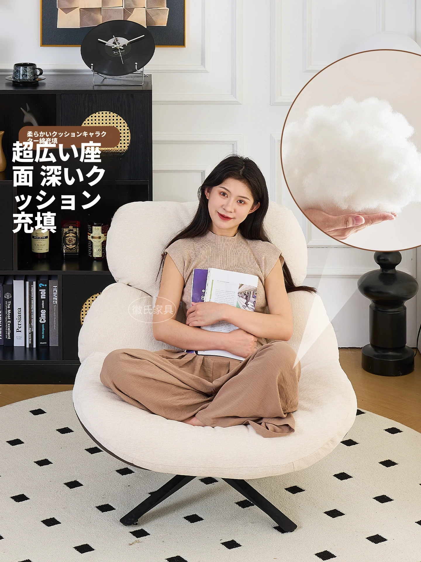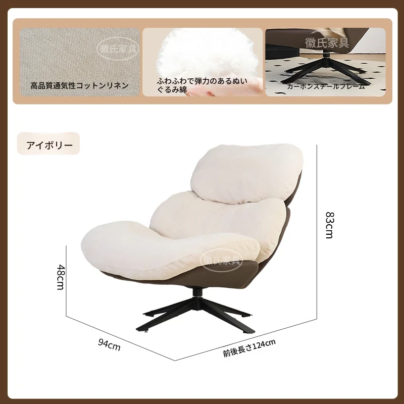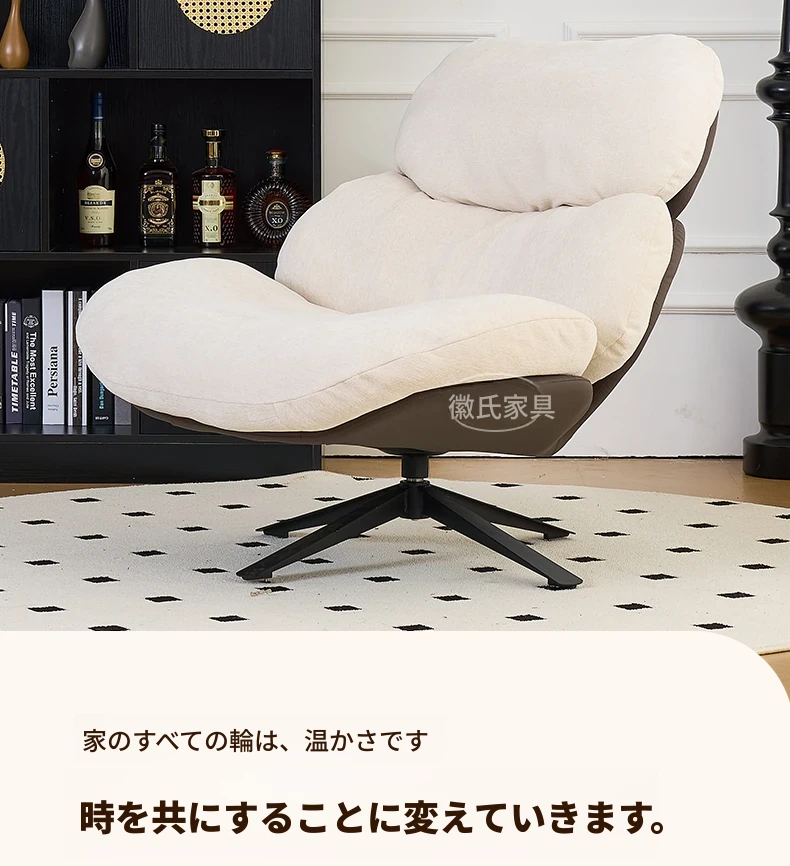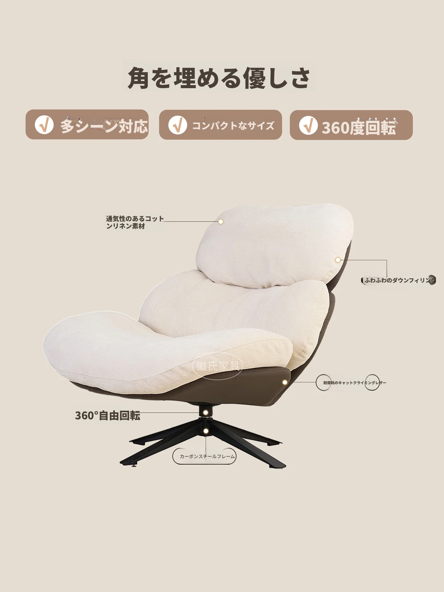 クリーム色の回転ソファチェア - 家庭用リラックスチェア、リビングルームに最適!昼寝にもぴったりな軽やかな一人用ソファ。おしゃれなバルコニーにも映える、贅沢なひとときをお楽しみください。