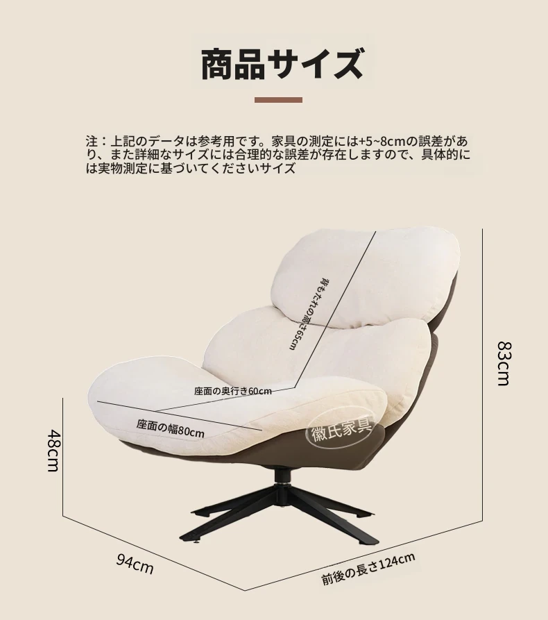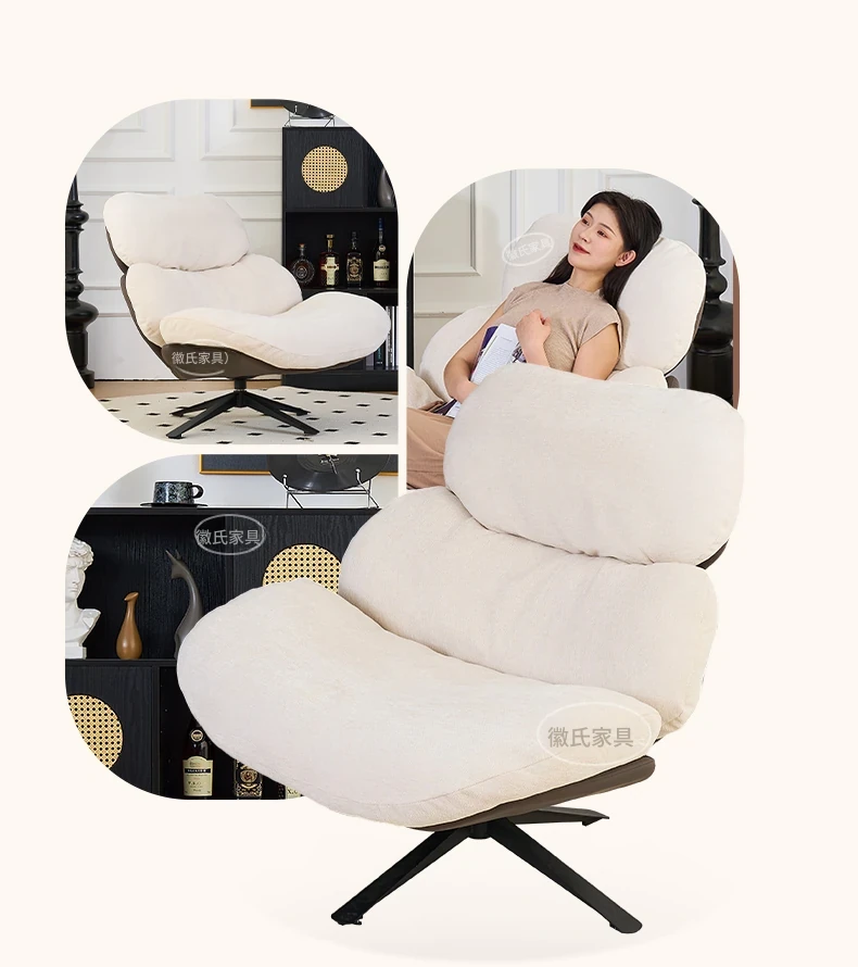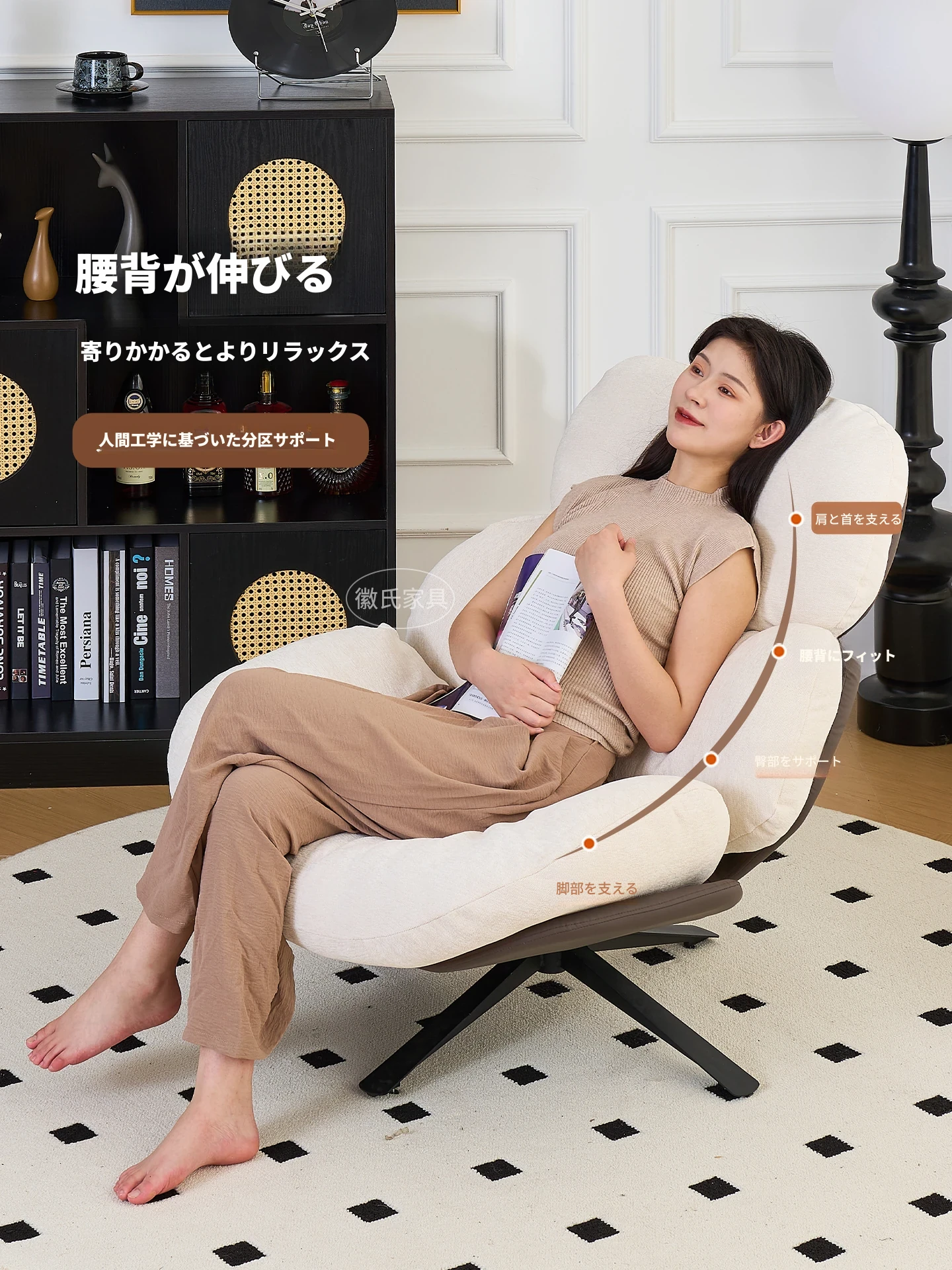 クリーム色の回転ソファチェア - 家庭用リラックスチェア、リビングルームに最適!昼寝にもぴったりな軽やかな一人用ソファ。おしゃれなバルコニーにも映える、贅沢なひとときをお楽しみください。