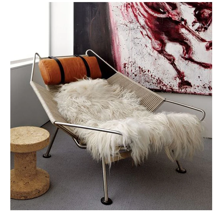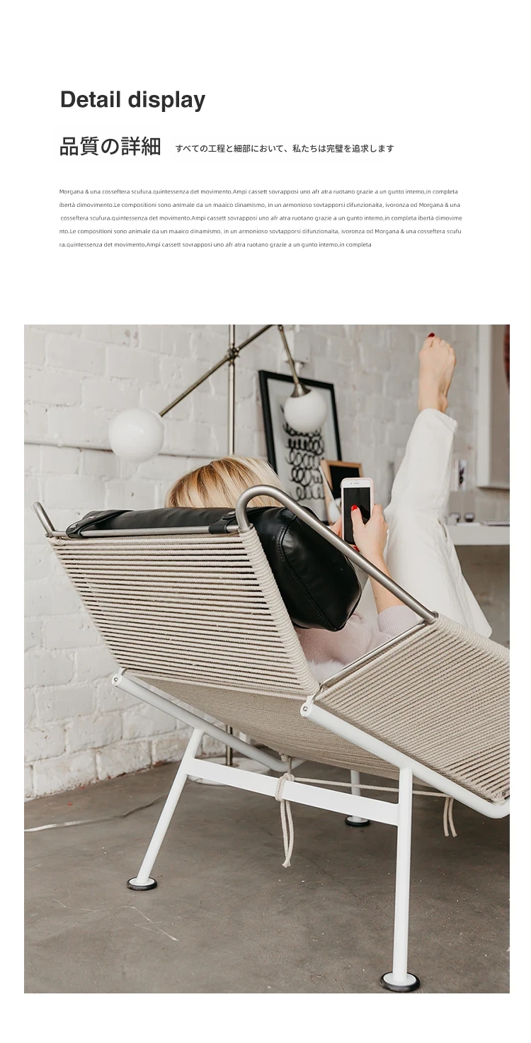 デンマークデザインのフラグロープチェア、イタリアンミニマリストの編み込みスタイル、バルコニーやリビングに最適なウールラウンジソファ。贅沢な一人掛けで、リラックスした時間をお楽しみください。