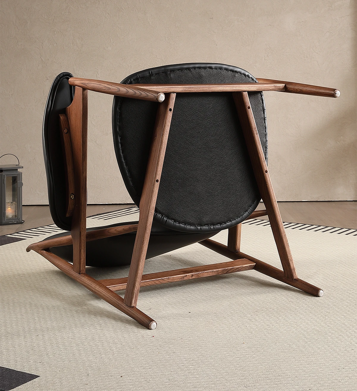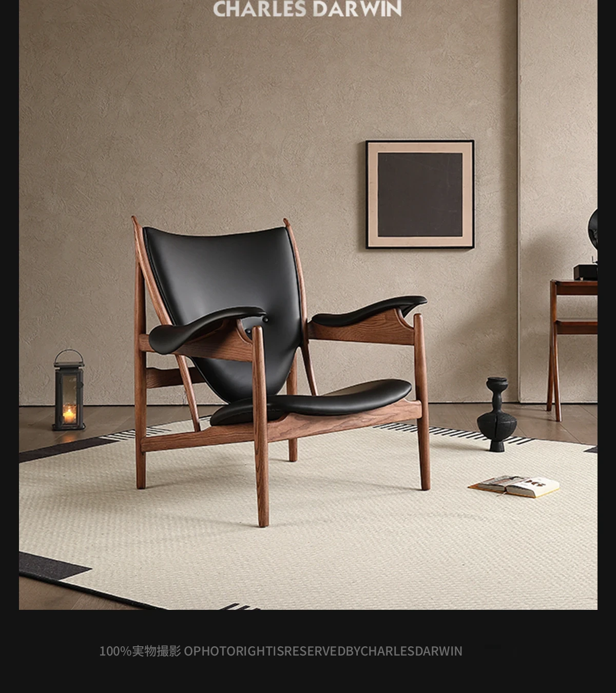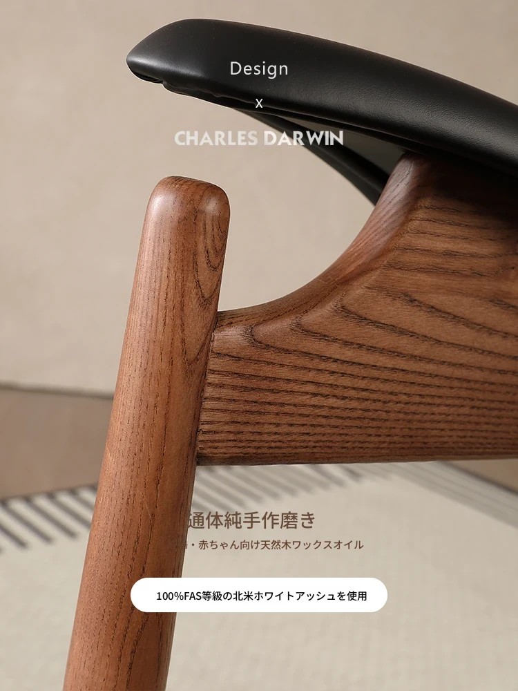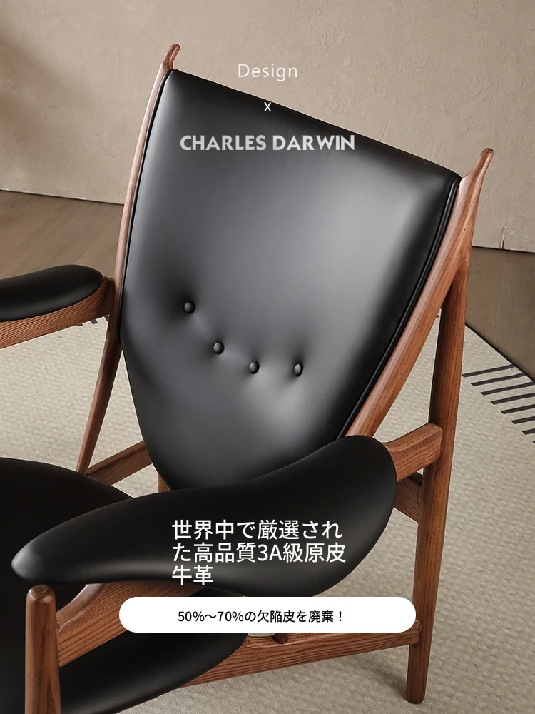 ダーヴィン チーフテン 椅子 - 侘寂風ホワイトアッシュ無垢材使用の本革一人掛けソファチェア、リラックス空間を演出!高品質な素材で作られた贅沢なひとときをお楽しみください。