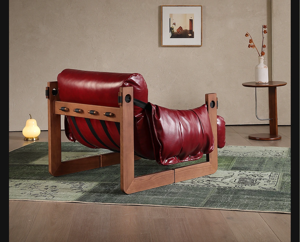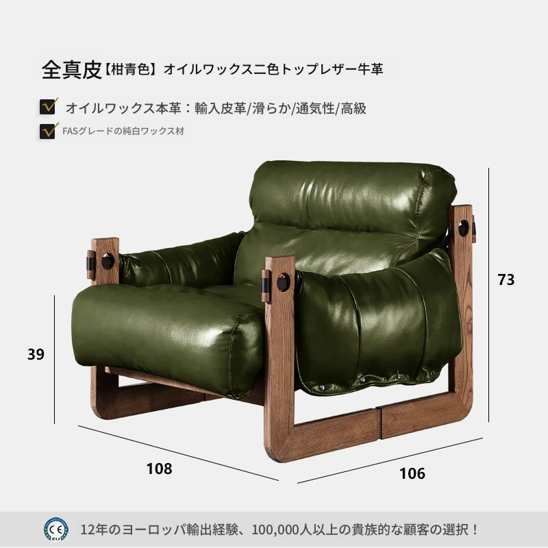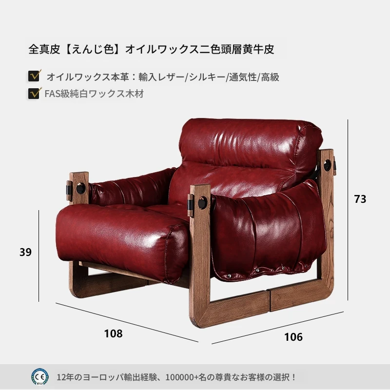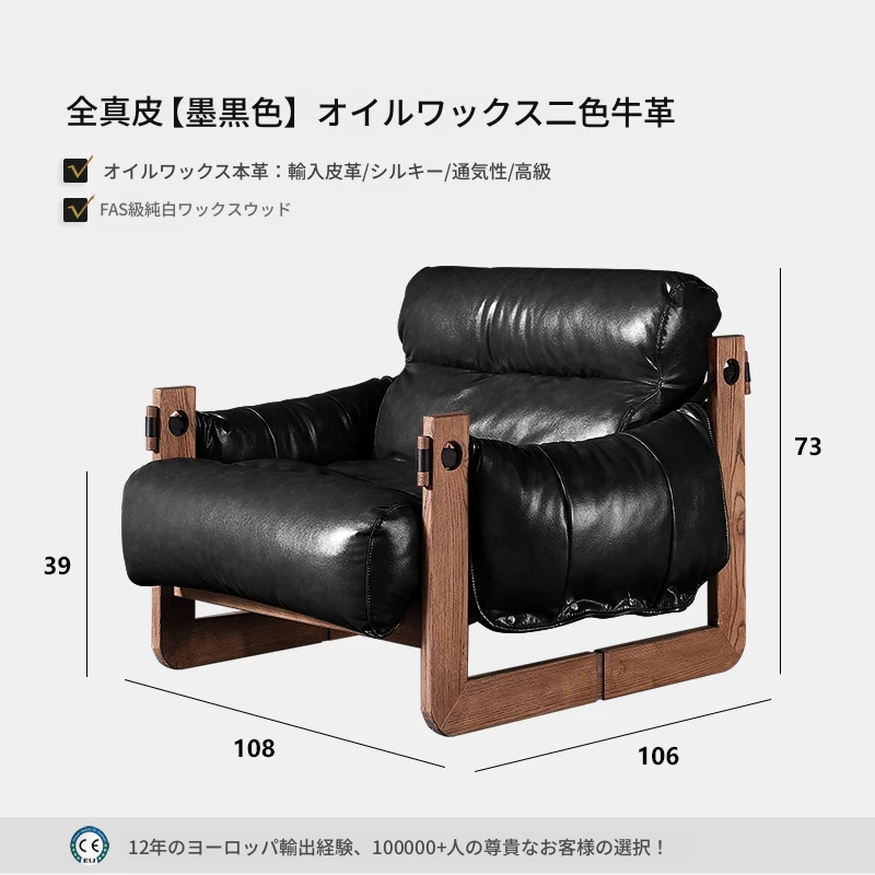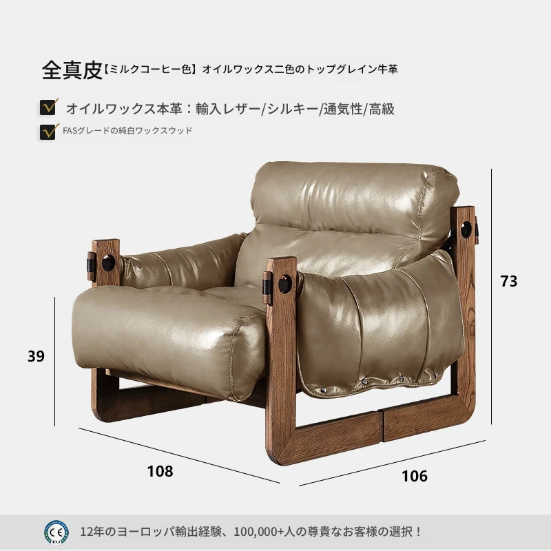 全牛革【単椅子+フットスツール】オイルワックス二色頭層黄牛革