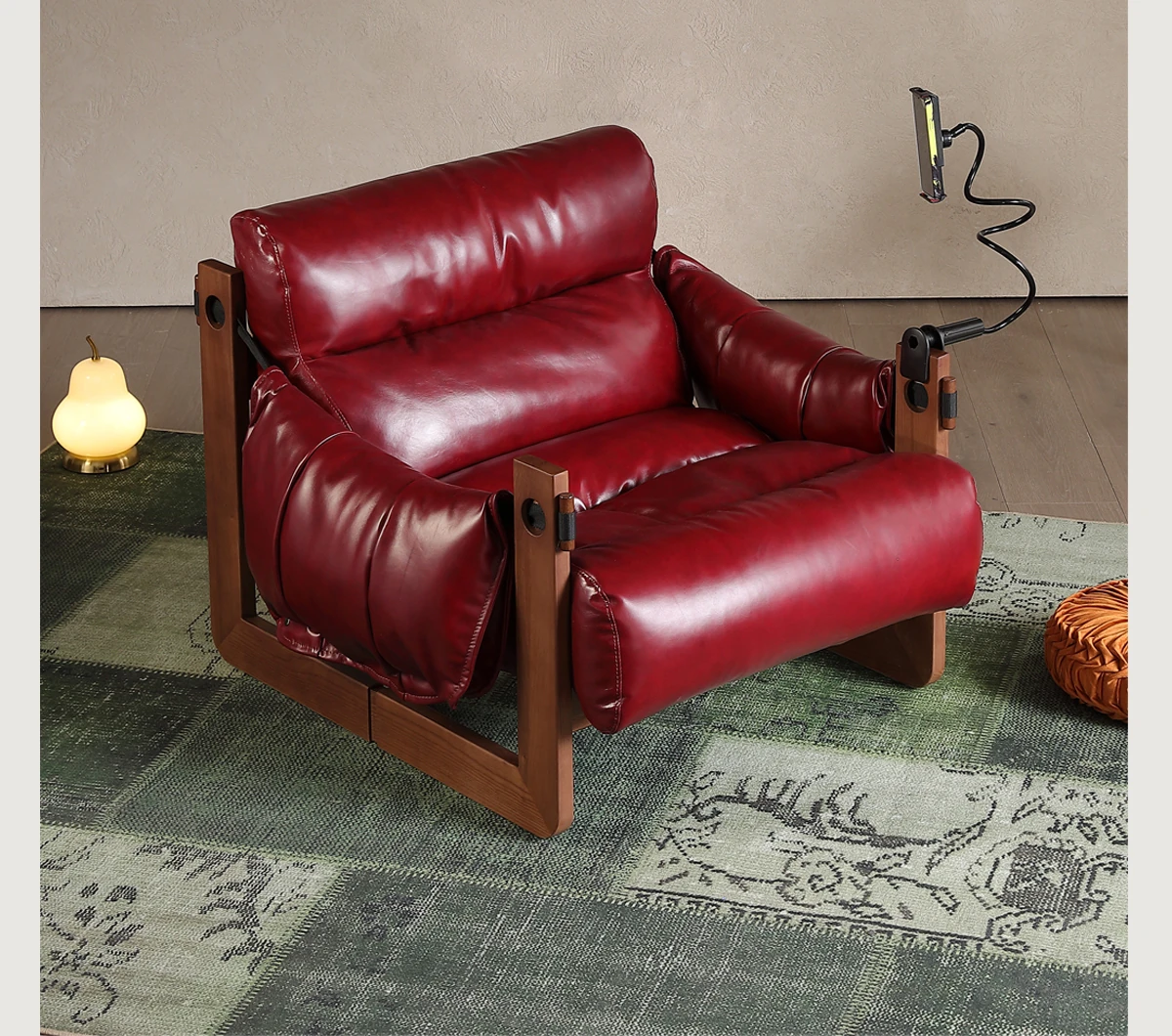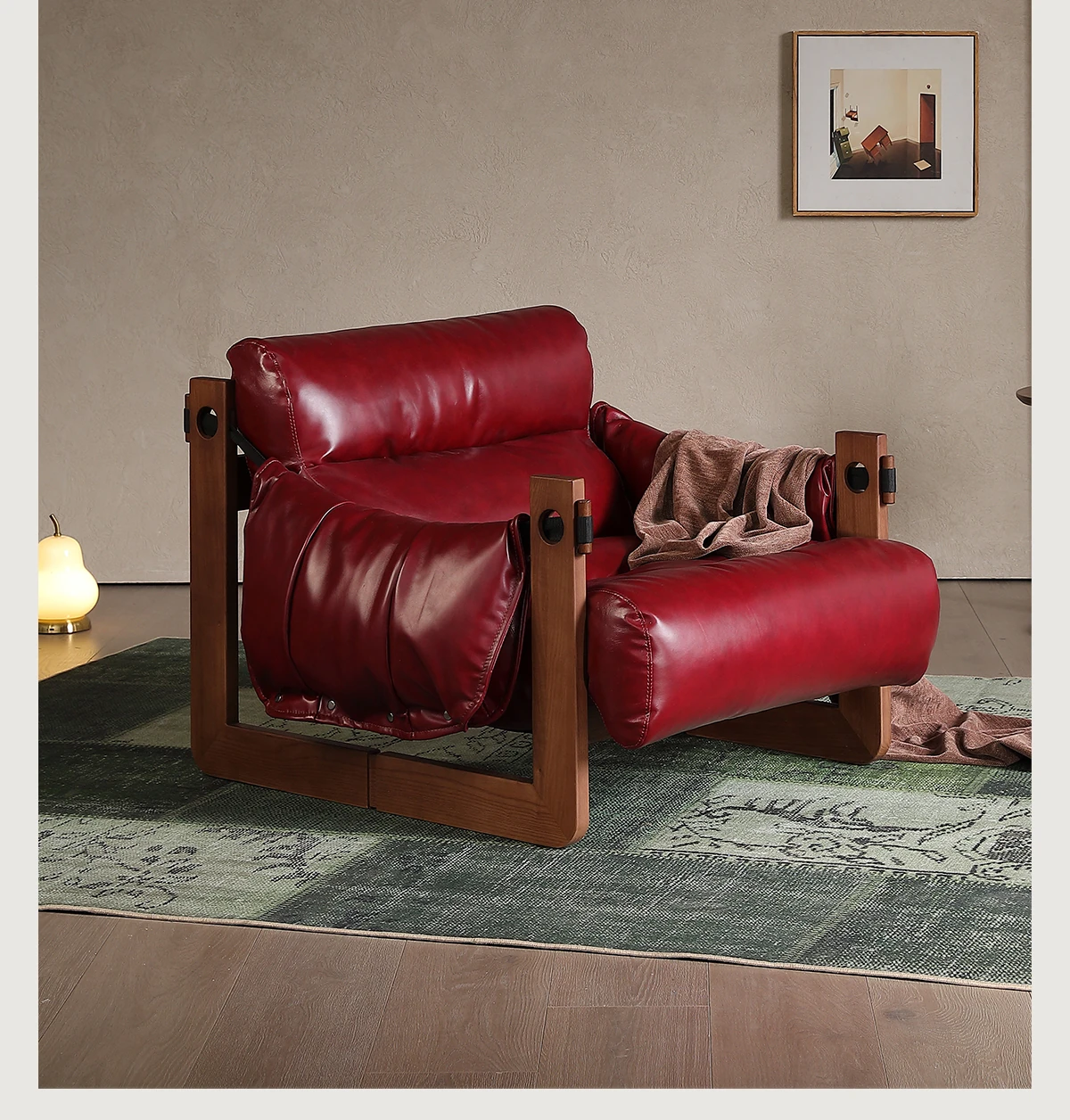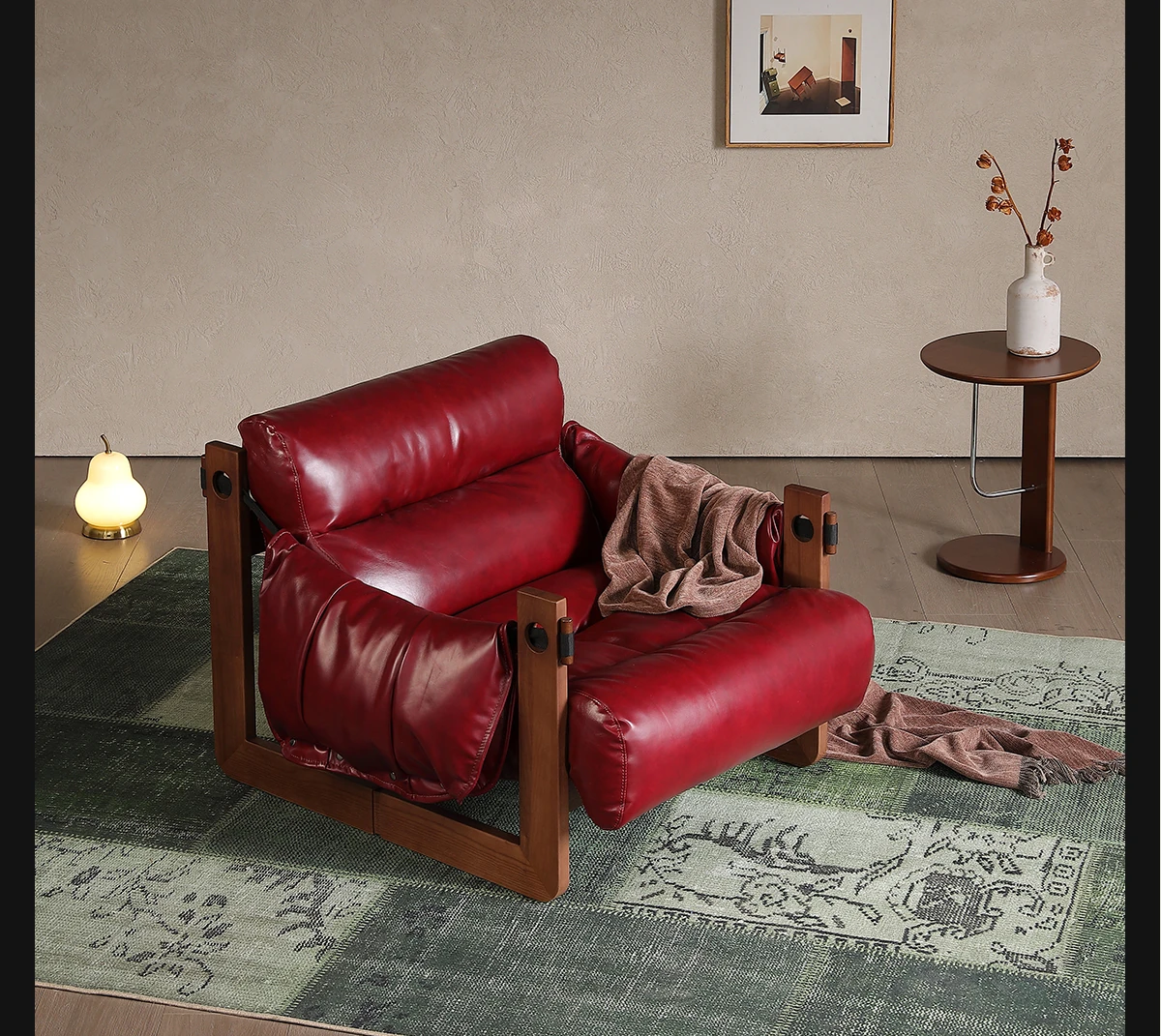 全牛革【単椅子+フットスツール】オイルワックス二色頭層黄牛革
