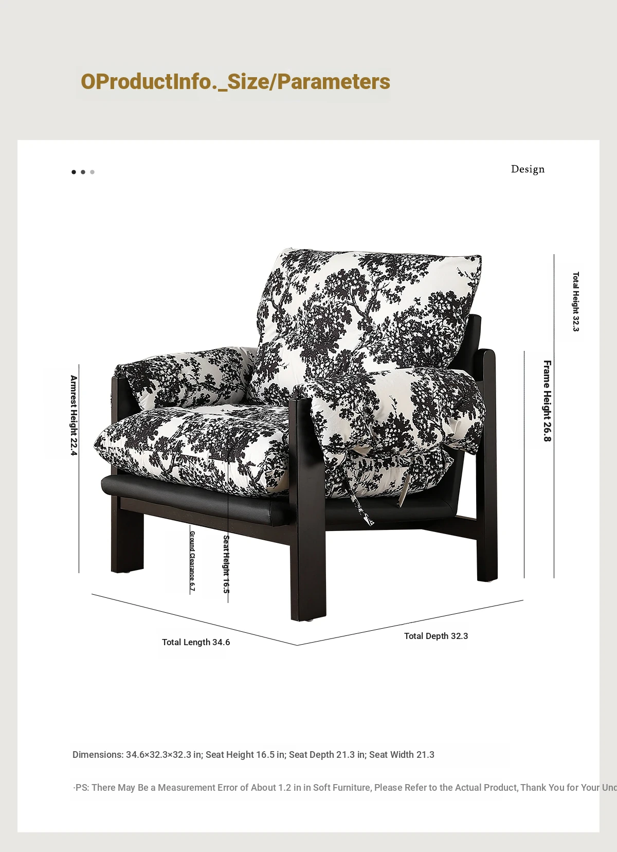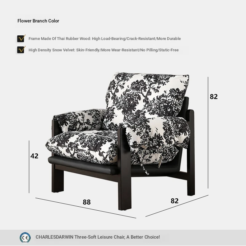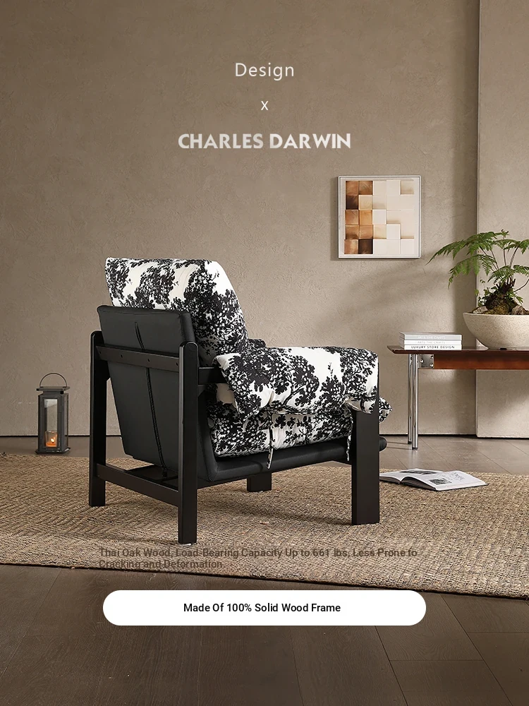Darwin Timill Thick Milk Leisure Chair - Retro Solid Wood Fabric Armchair for Living Room, Removable and Washable, Perfect for Home Use