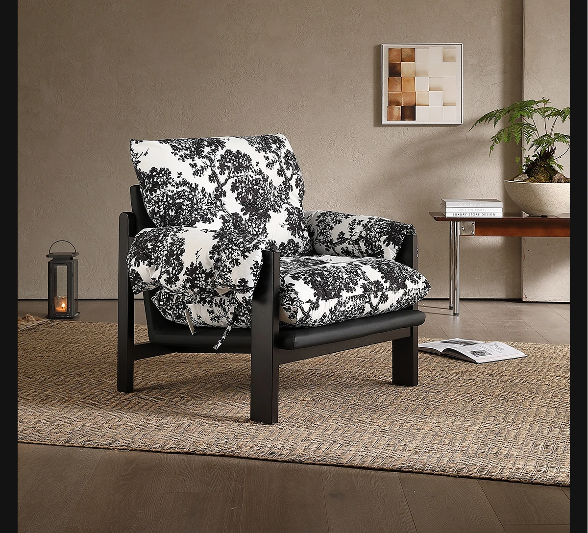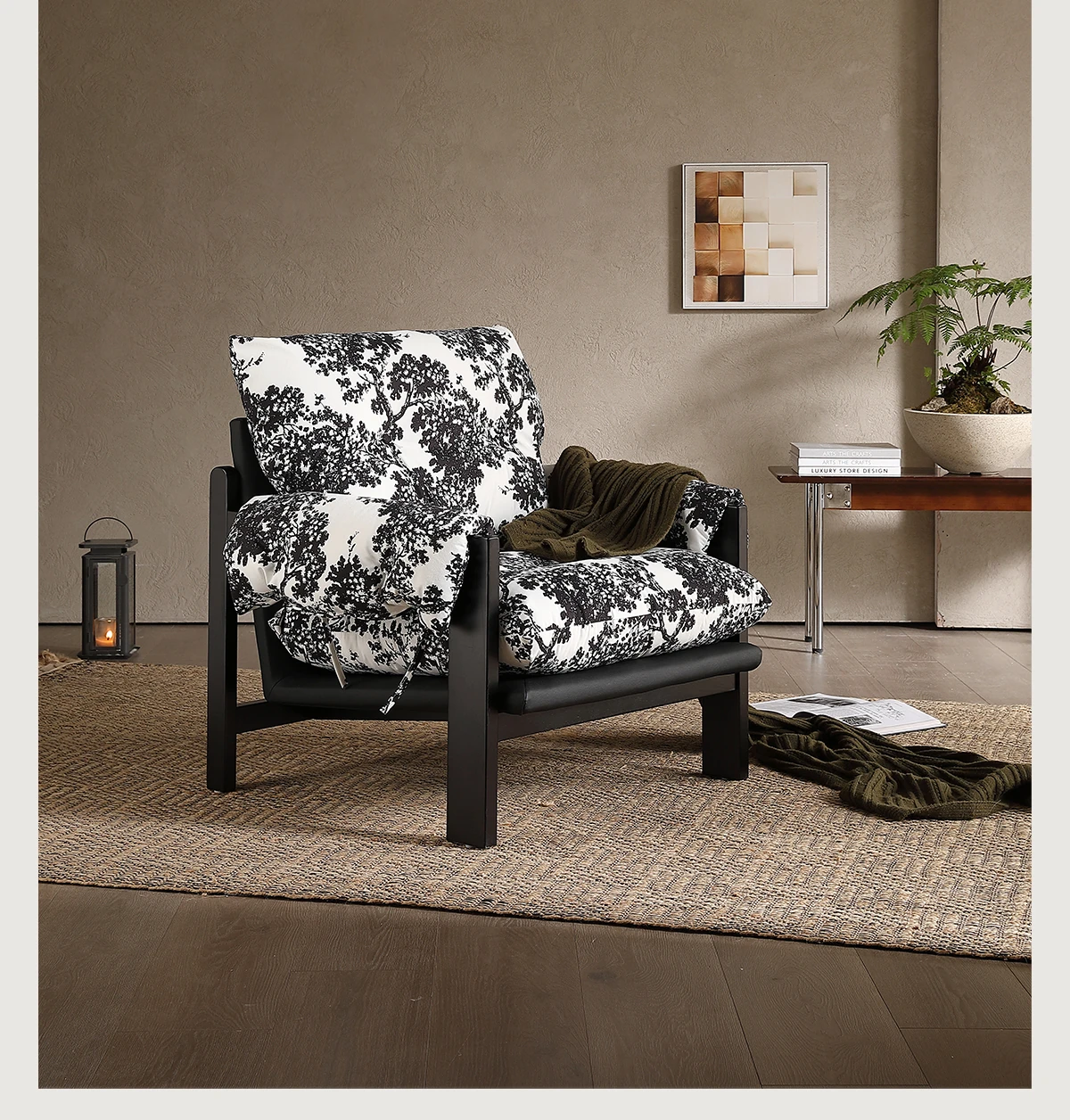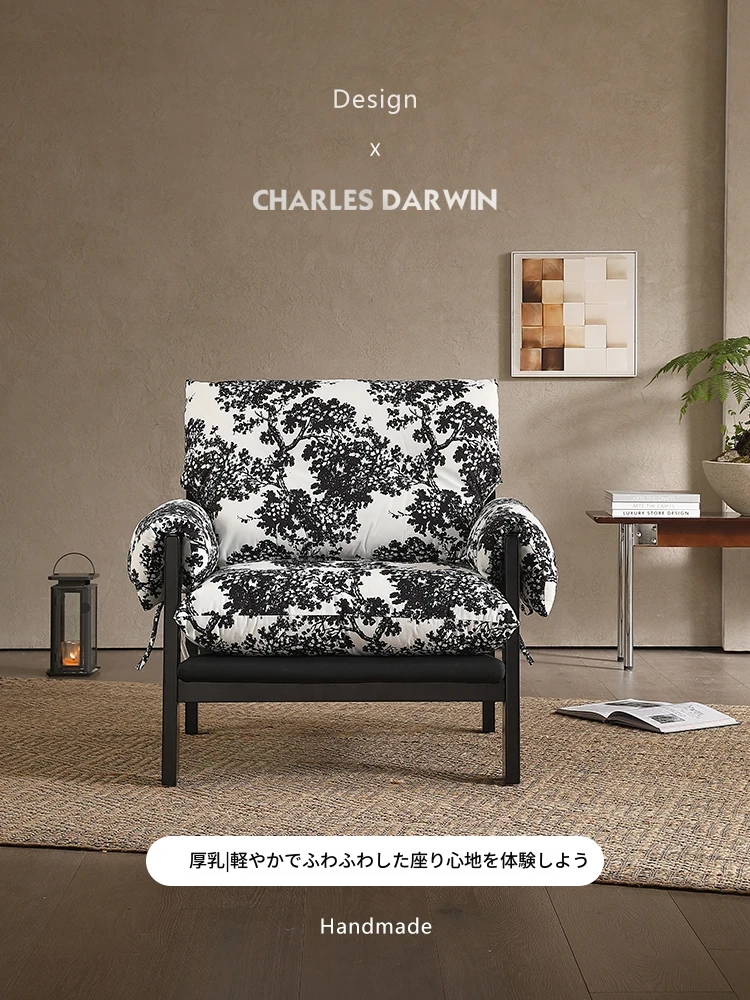 ダーヴィン・ティミル 厚乳リラックスチェア 天然木製のヴィンテージファブリック 一人掛けソファ 家庭用 洗えるカバー付きでお手入れ簡単!おしゃれなリビングにぴったり!