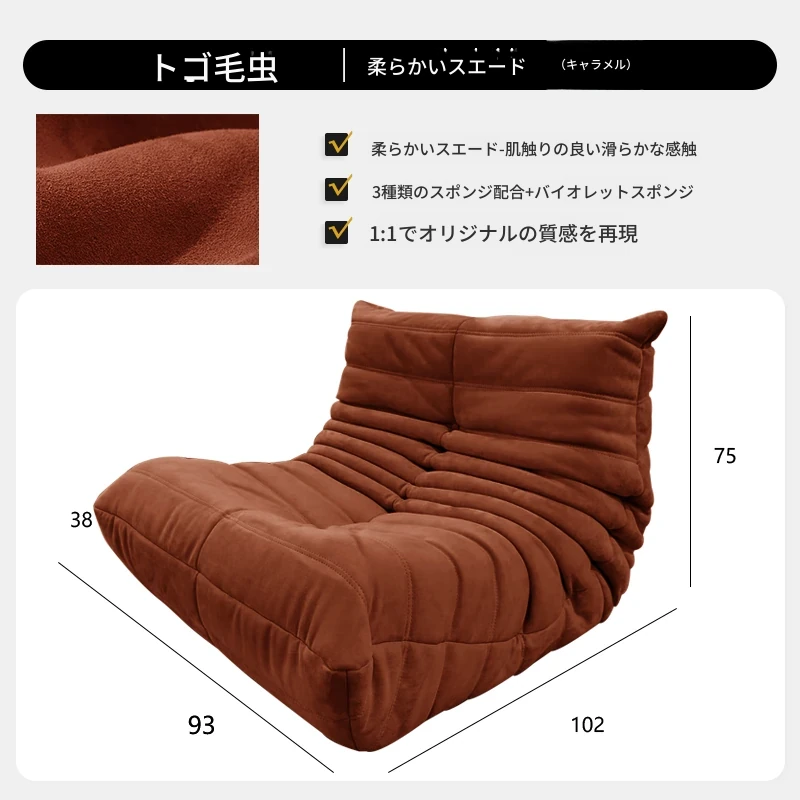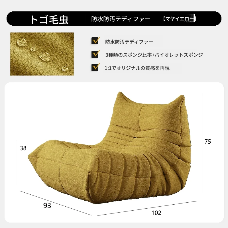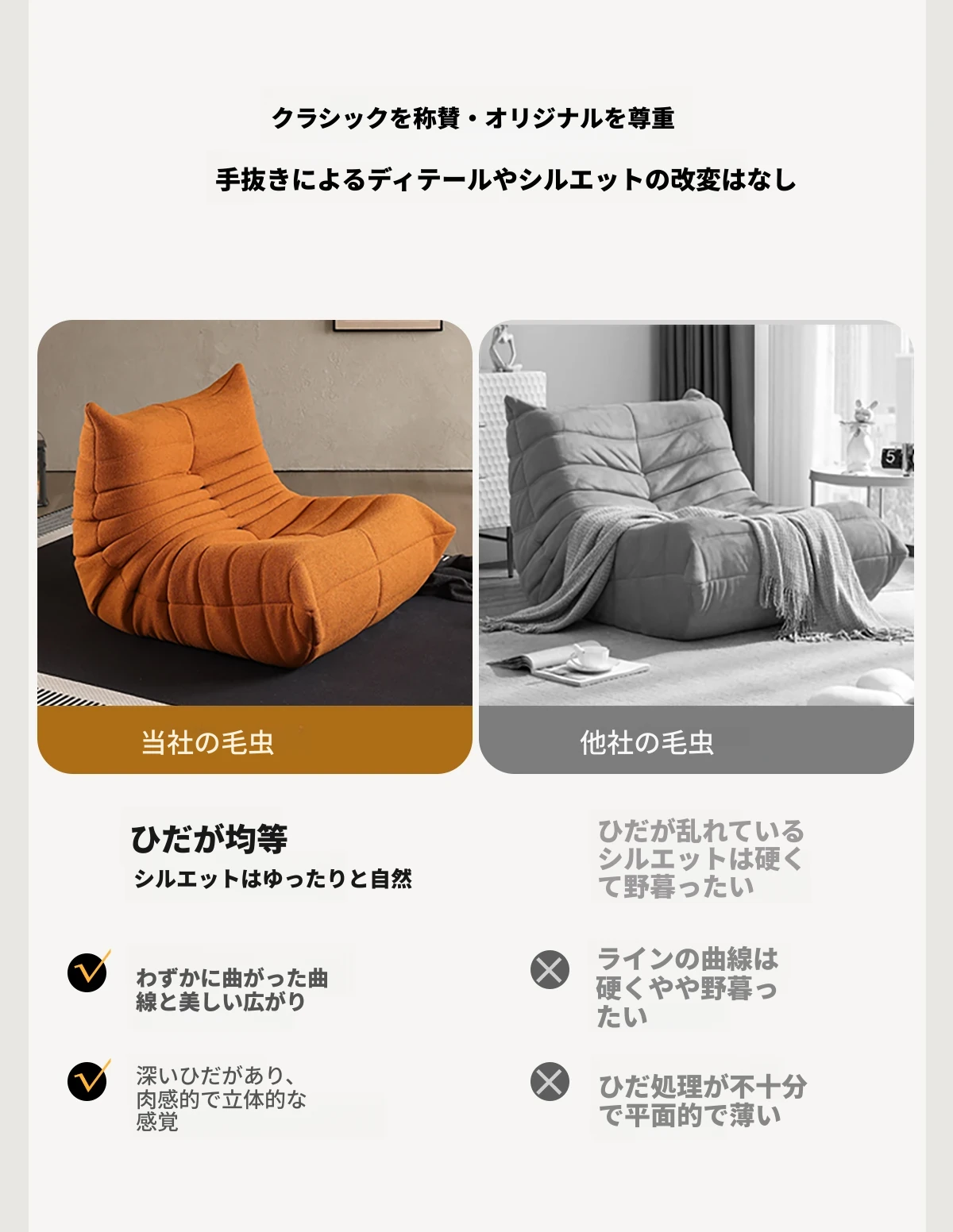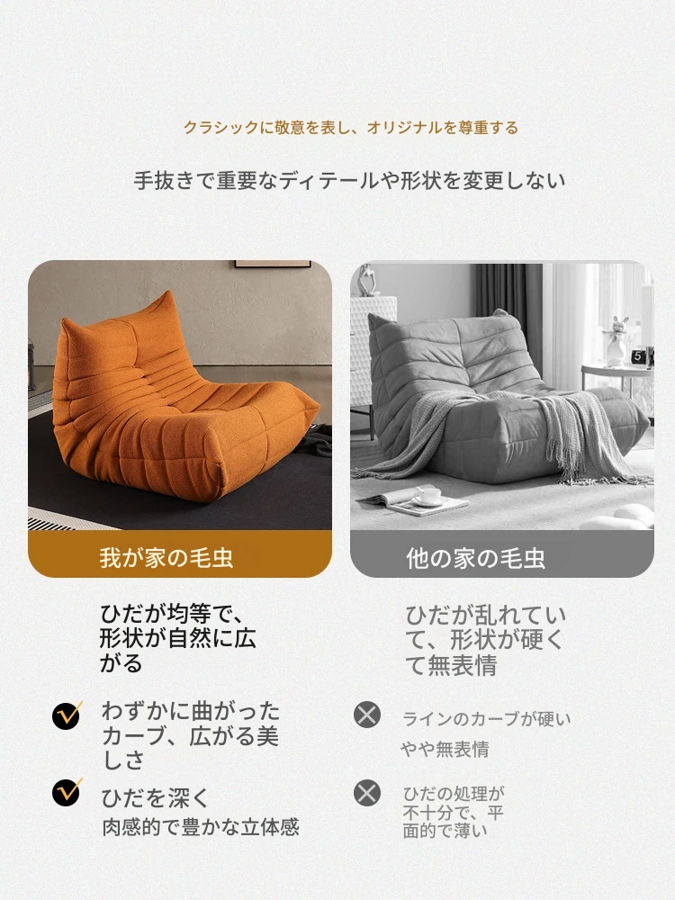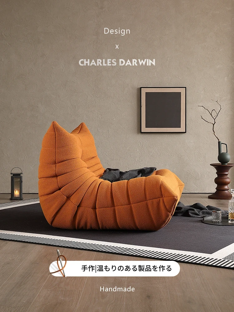 ダルウィンTogo 毛虫ラウンジチェア - デザイナーによる和モダンなリビング・寝室向け、侘寂の美しさを楽しむリラックス一人掛けソファ!