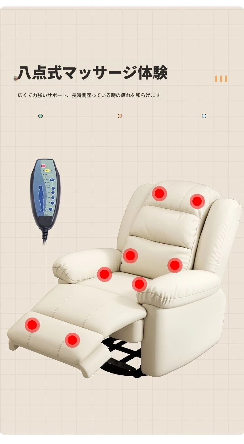 エレガントな一人用電動マッサージソファ - スペースサロン!多機能で回転式、美容とリラックスを同時に楽しめる極上の居心地。自宅のリビングで贅沢なネイル体験を!