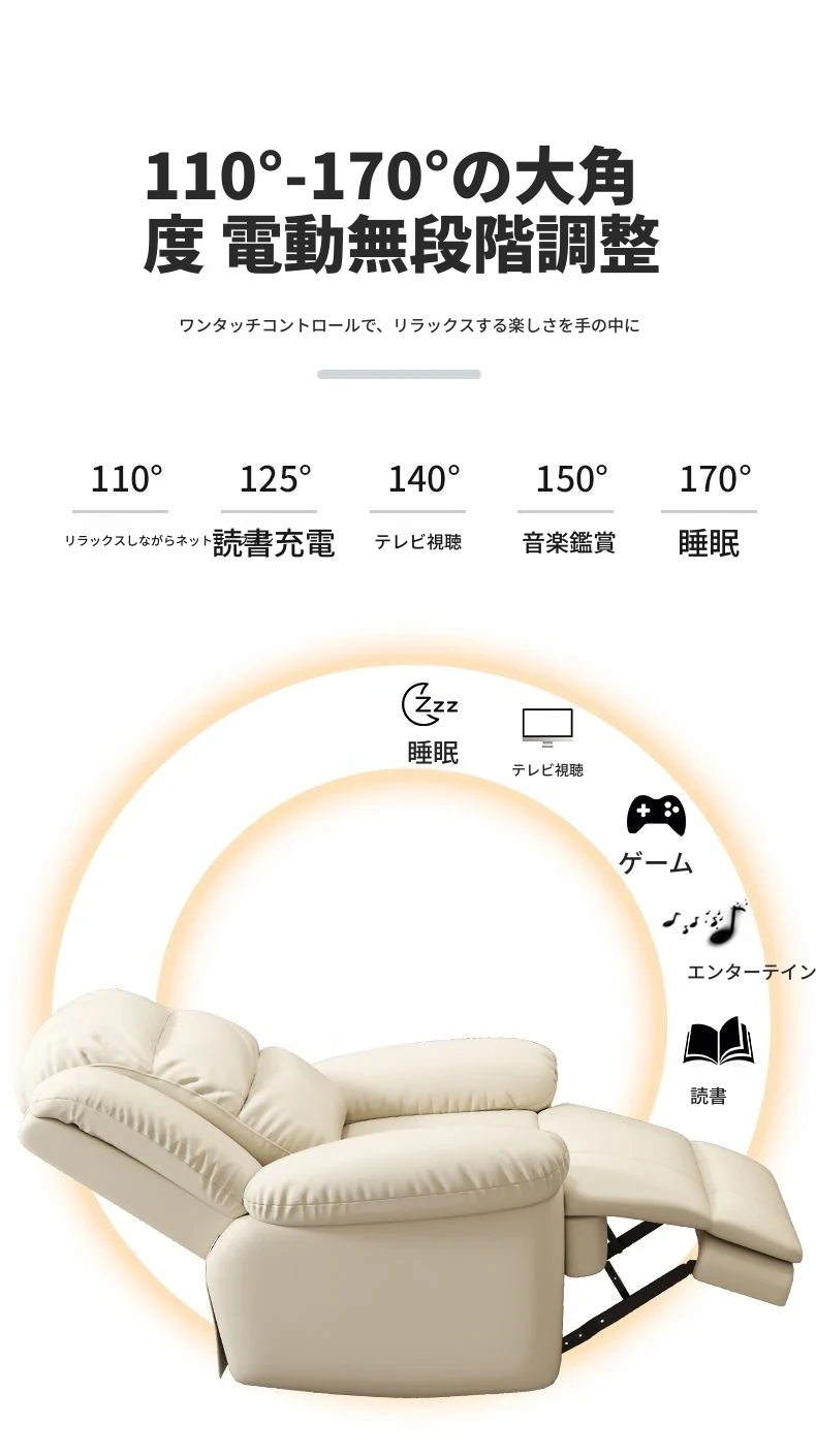 蓄電池電動USB自由伸縮可坐可躺回転揺動加熱振動