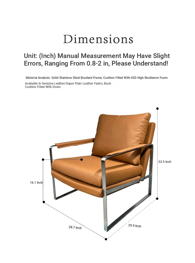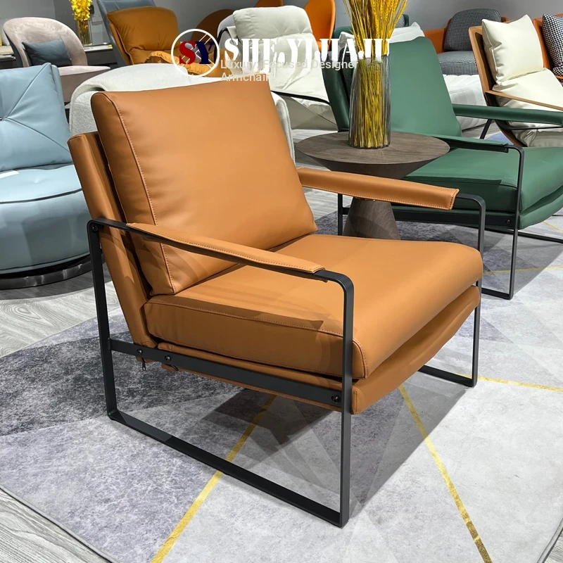 Designer Genuine Leather Sofa Chair - Nordic Style Minimalist Luxury Lounge Chair for Meetings and Conversations - Elegant Armchair for Living Room