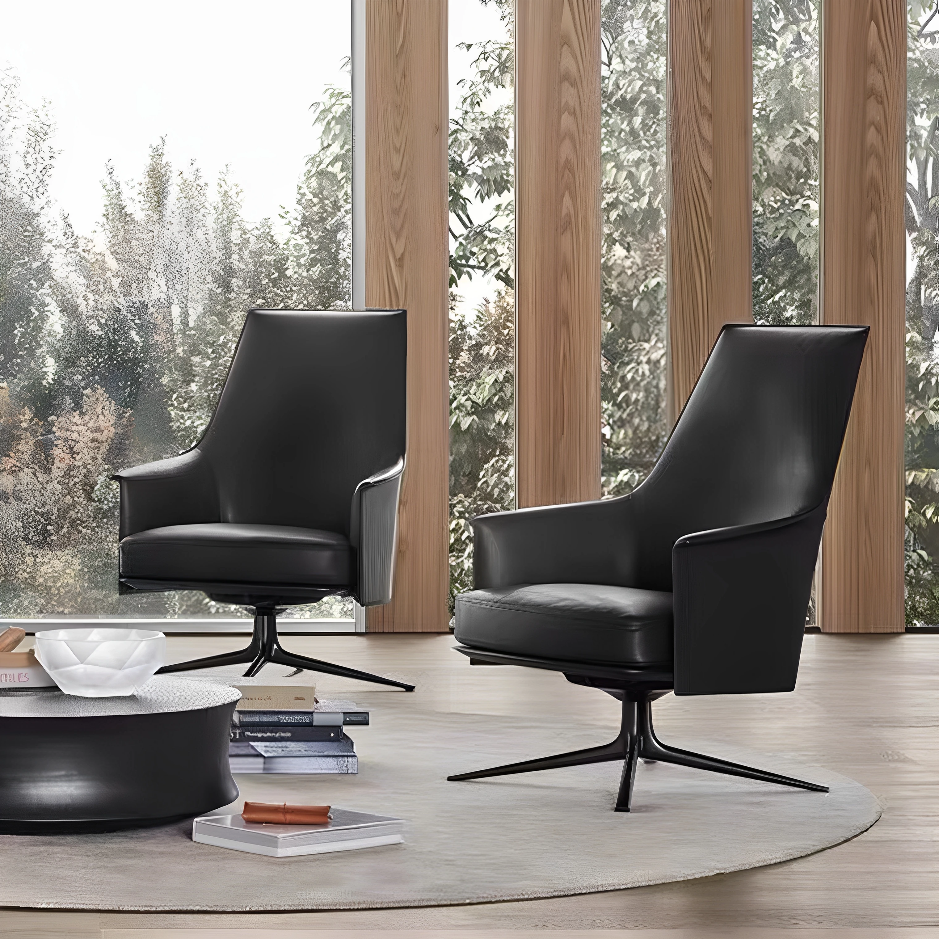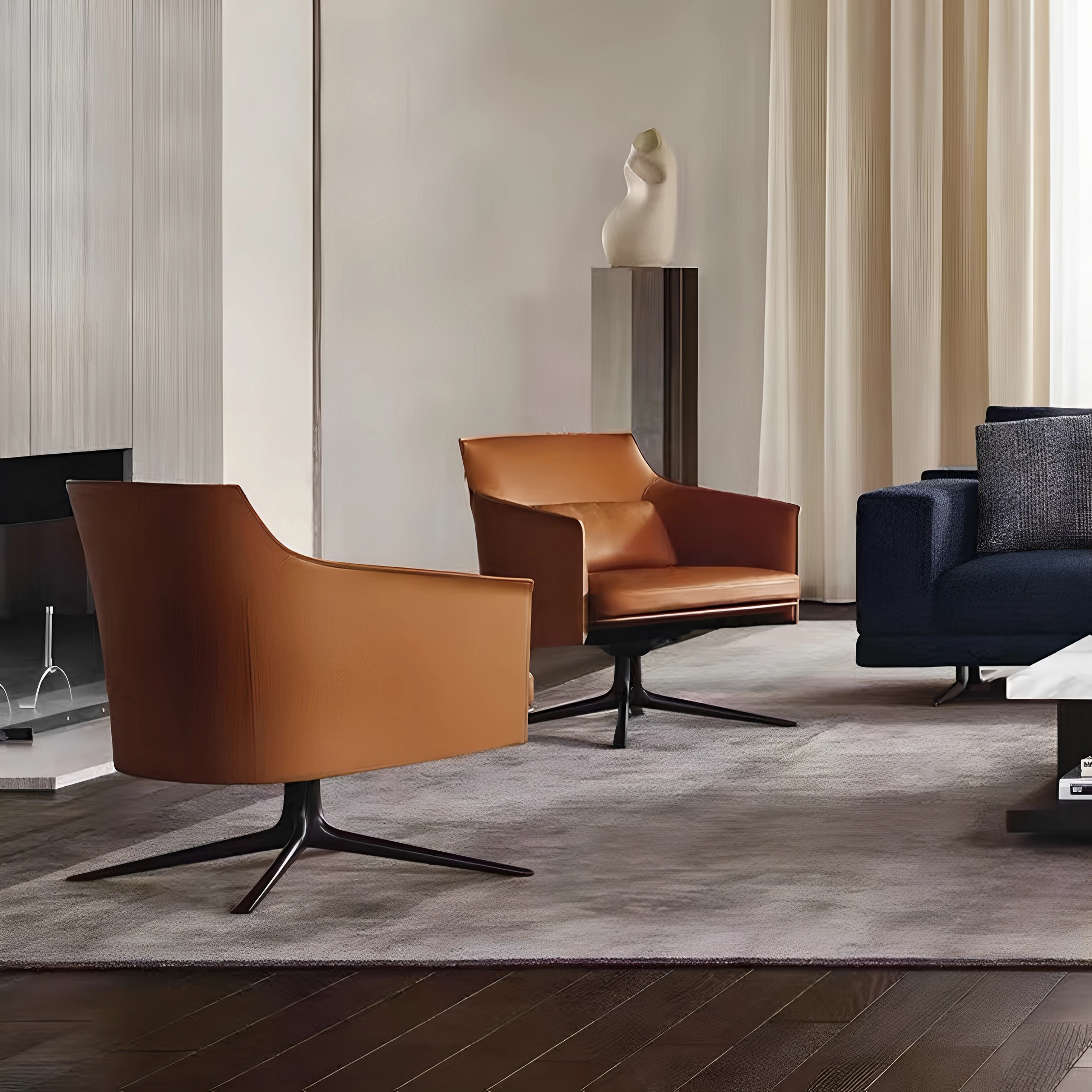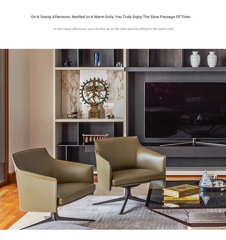 Designer Minimalist Lounge Chair - Creative Rotating Italian Genuine Leather Tiger Chair - Luxurious Single Sofa for Modern Living Room