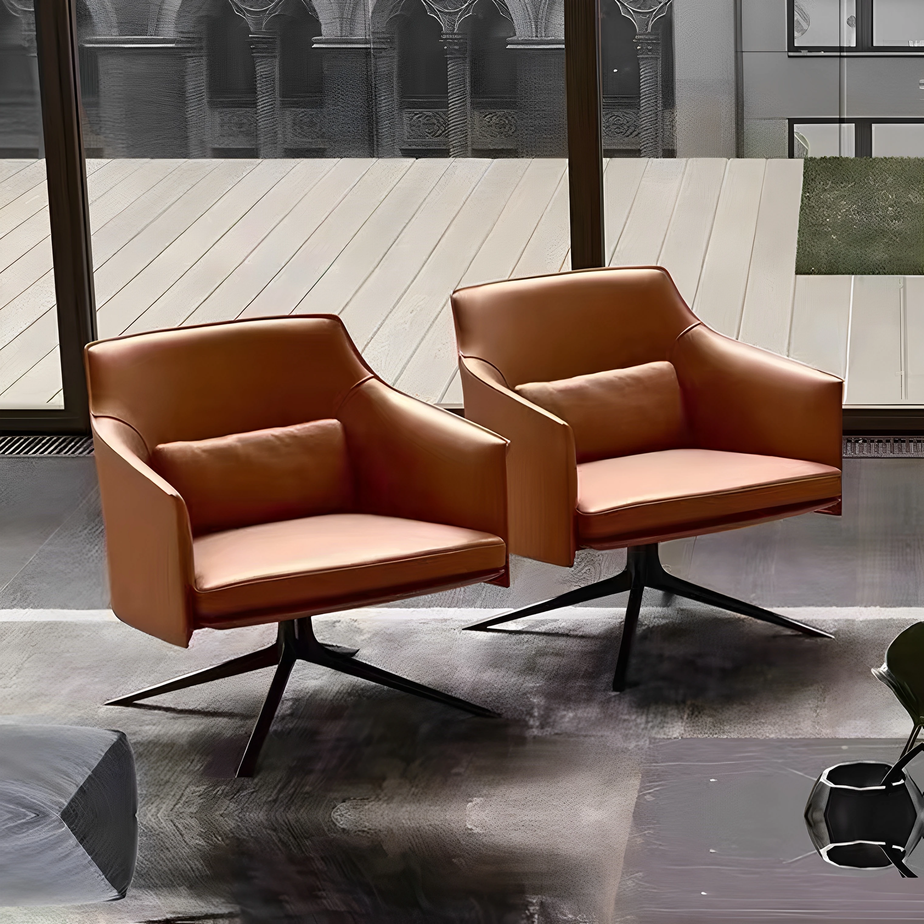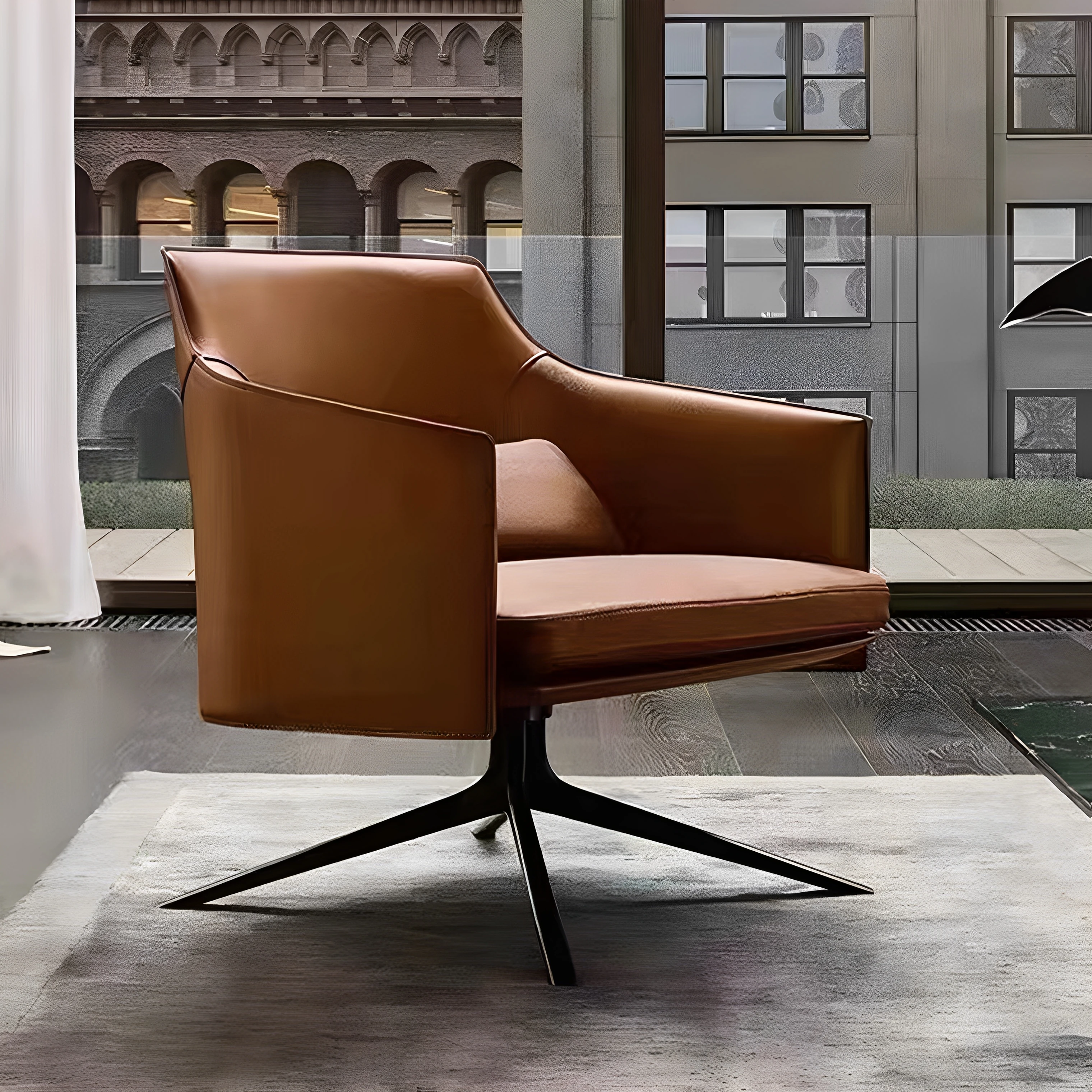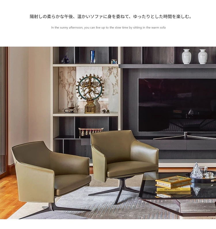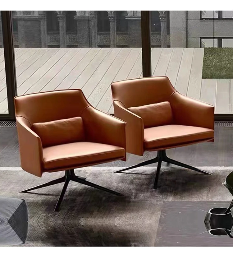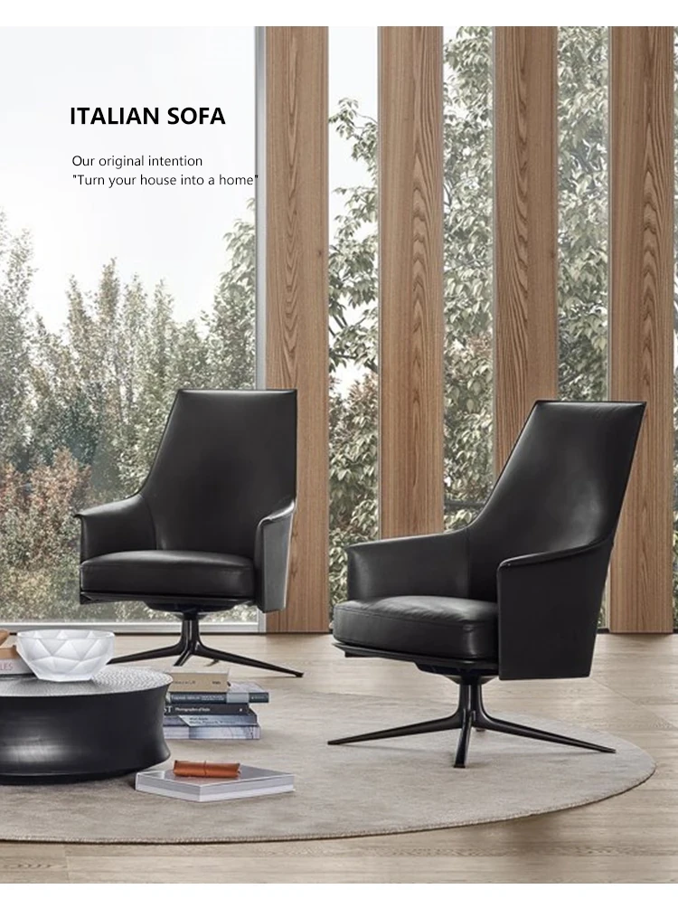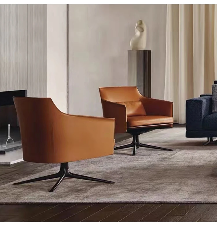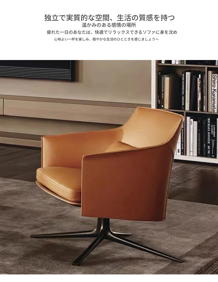 デザイナーによるリビングルーム用ミニマリストクリエイティブ回転式イタリアンレザー虎の椅子、ラグジュアリーな一人掛けソファ。スタイリッシュな空間を演出する、快適さと洗練を兼ね備えた逸品です!