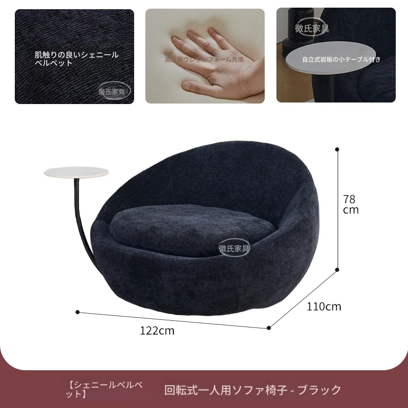ブラック【シェニールベルベット】回転一人掛け椅子