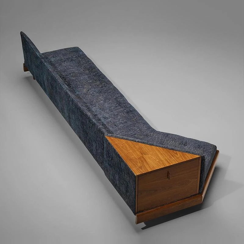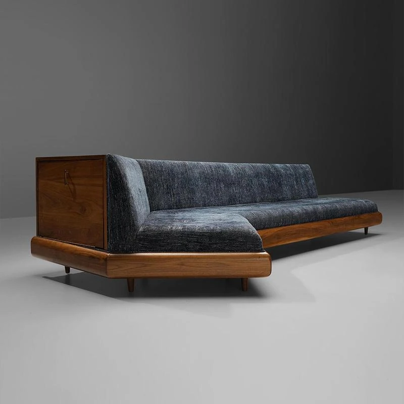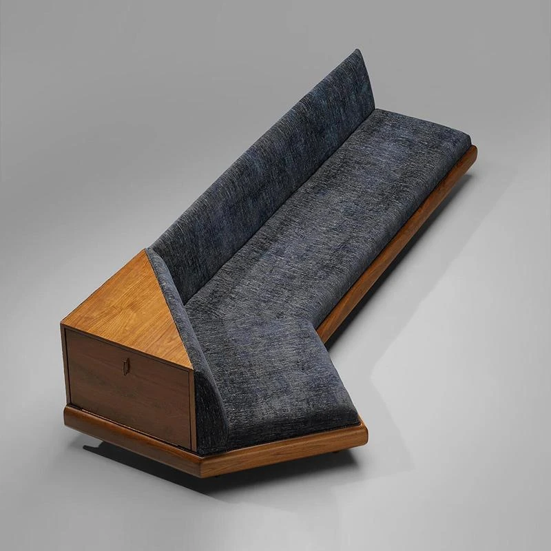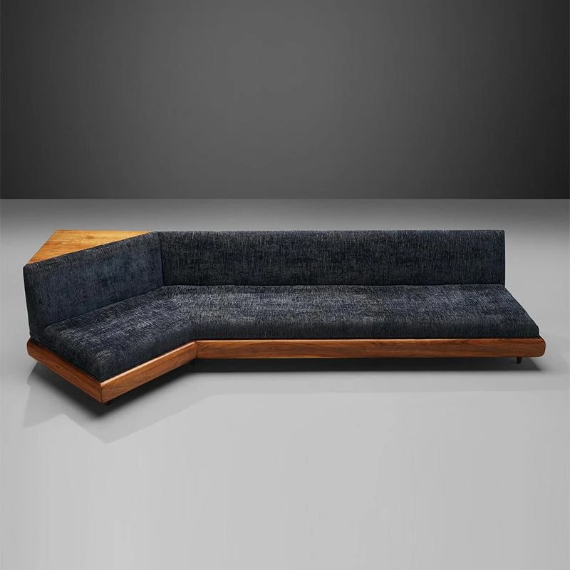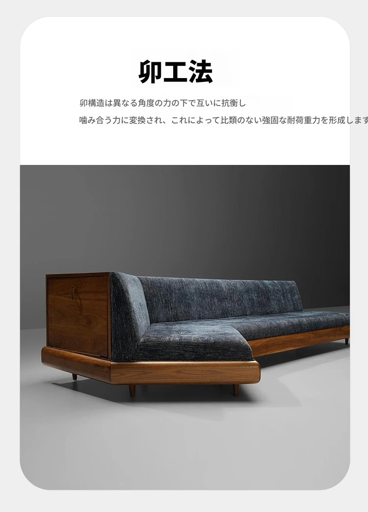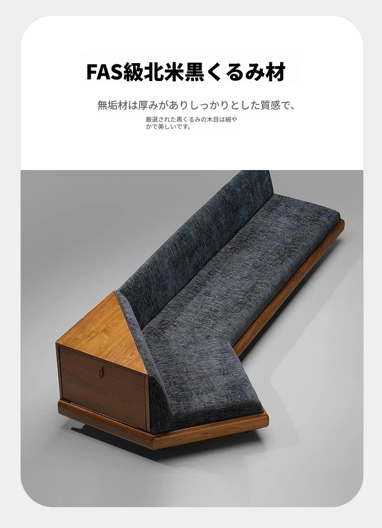 洗練されたデザインの軽奢華リビングルーム用ソファ、ユニークな形状の別荘向け三人掛けソファ。新中式スタイルのウォールナット材で、上質な居心地を提供します。おしゃれな空間を演出する一品です。