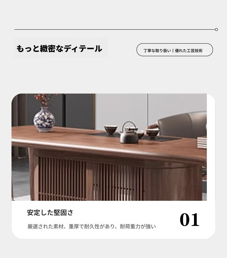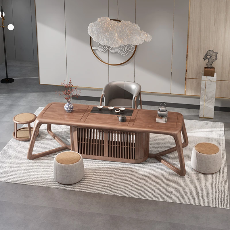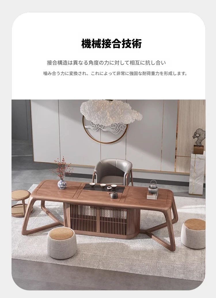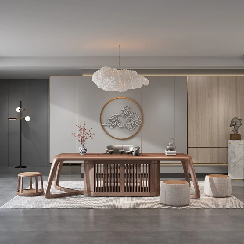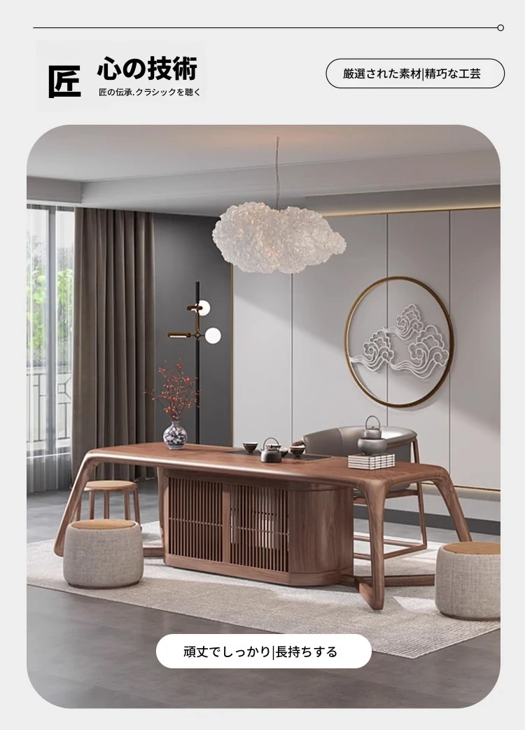 新中式茶卓椅セット - 禅の心を感じる、天然木製の功夫茶台。オフィスや茶室にぴったり。リラックスしたひとときをお楽しみください。