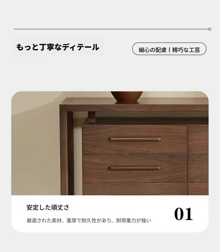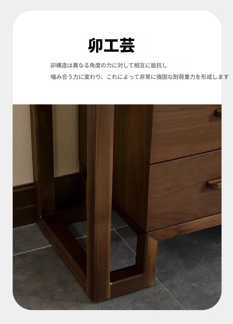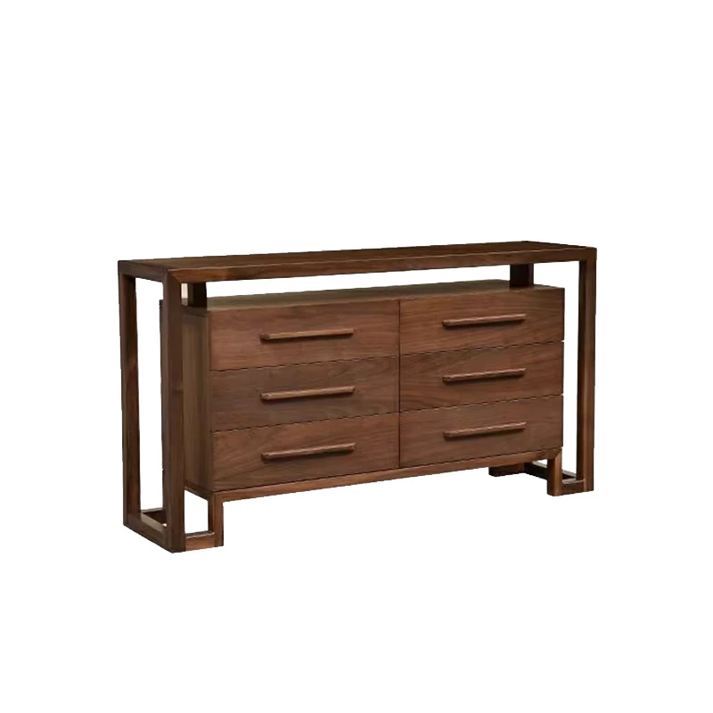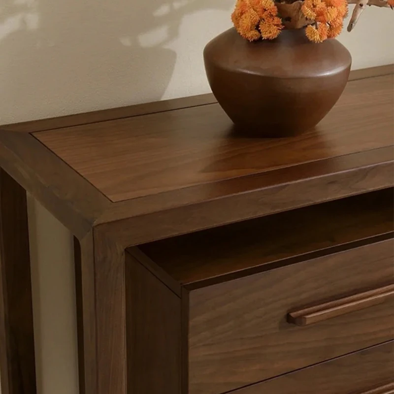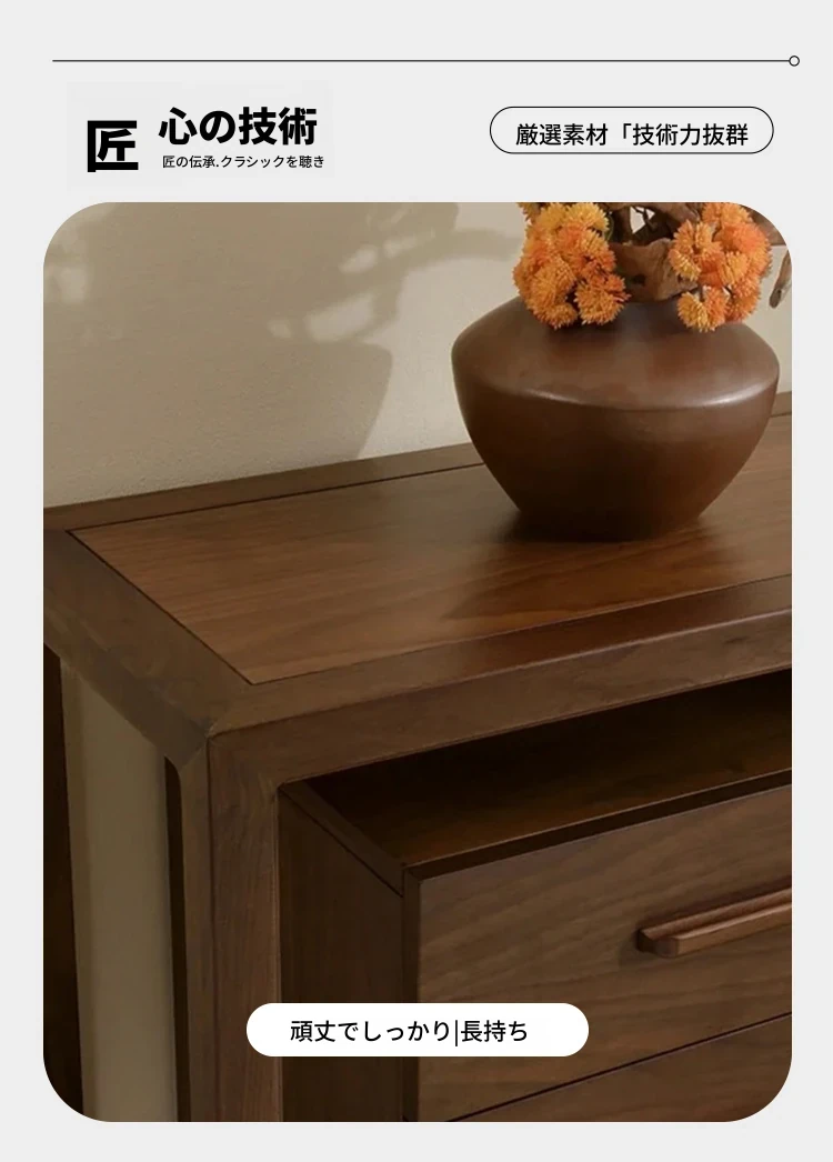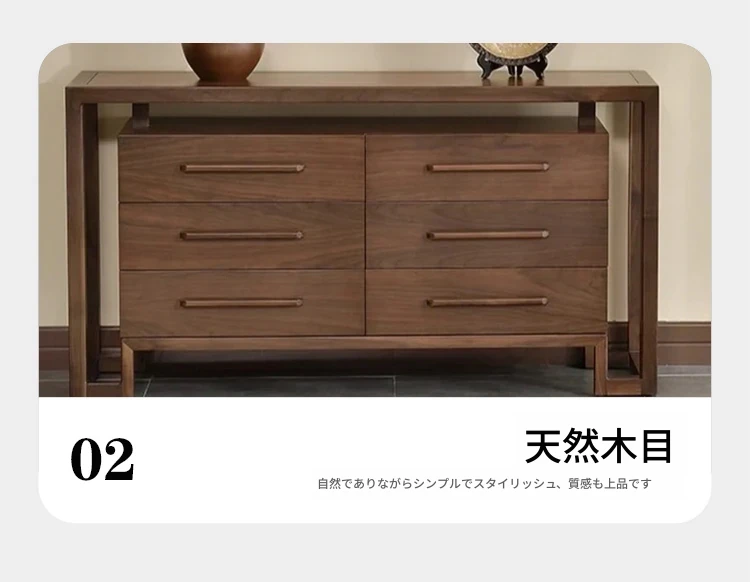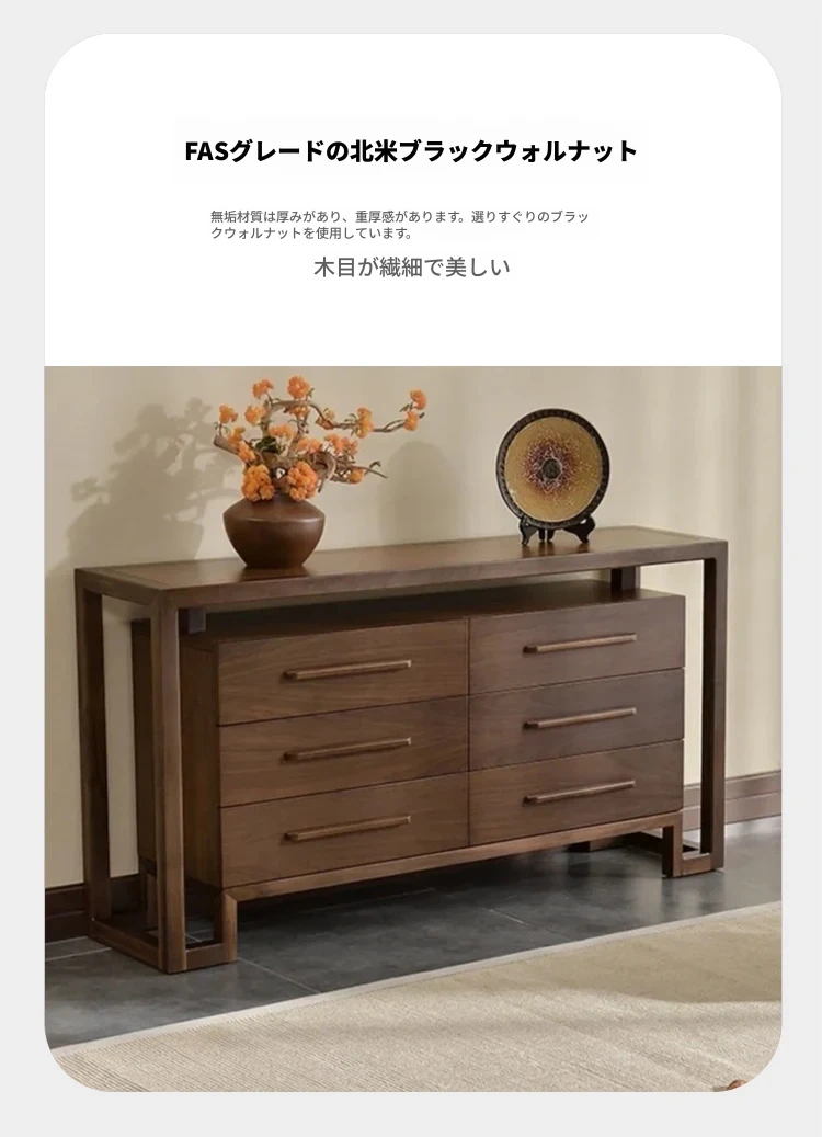 新中式スタイルの高級無垢材収納キャビネット - 玄関にもぴったり!洗練されたウォールナット製のモダンなサイドボード。おしゃれな収納で、入るときも出るときも心地よい空間を演出します。