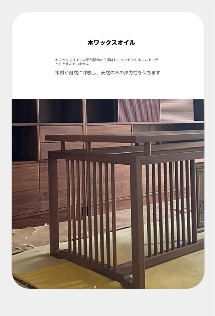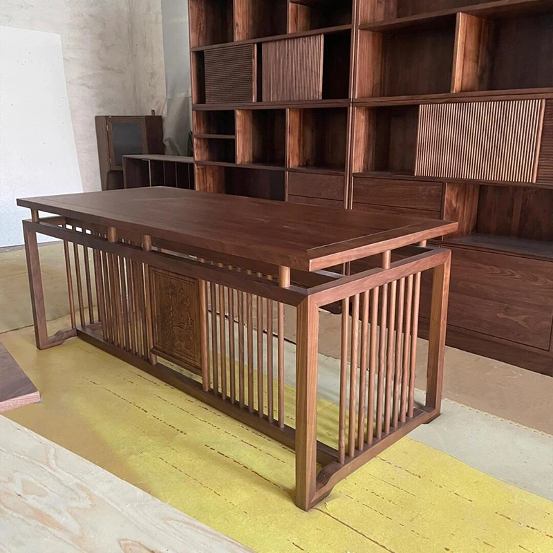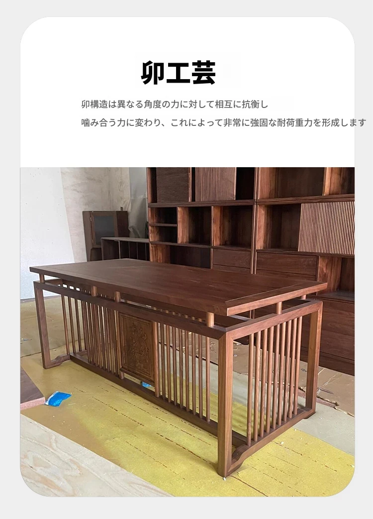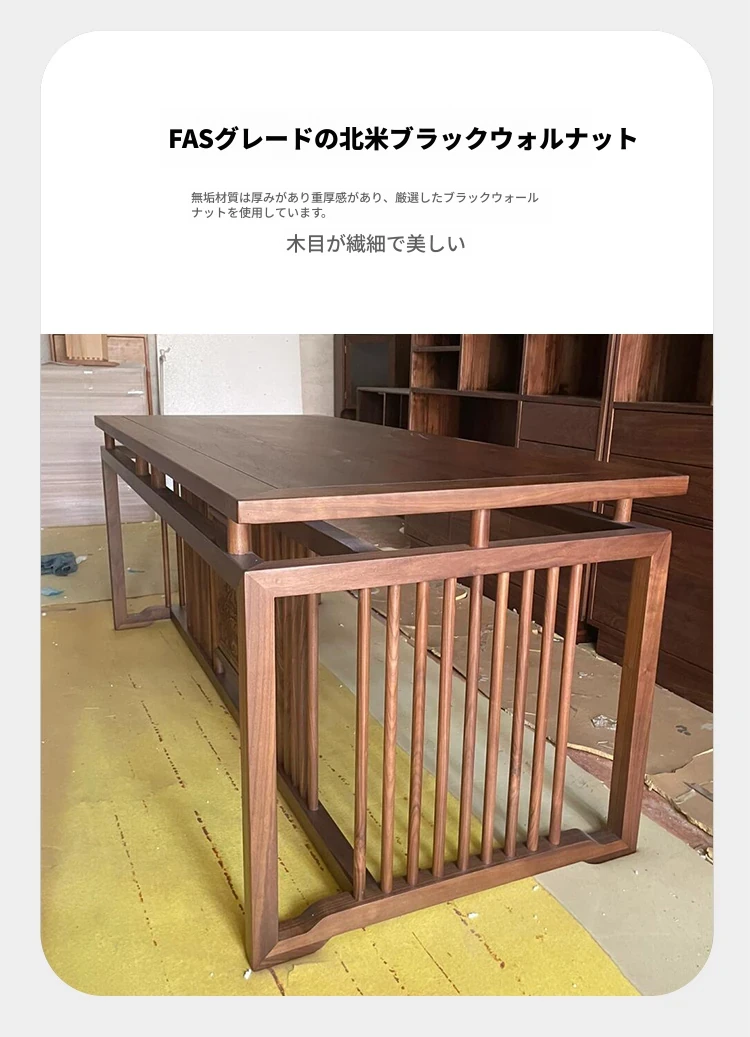 新中式デザインの高級無垢材書道デスク - ウォールナット仕上げ、シンプルでモダンなスタイルの書斎用デスク。快適な作業環境を提供し、あなたのインテリの美しさを引き立てます。