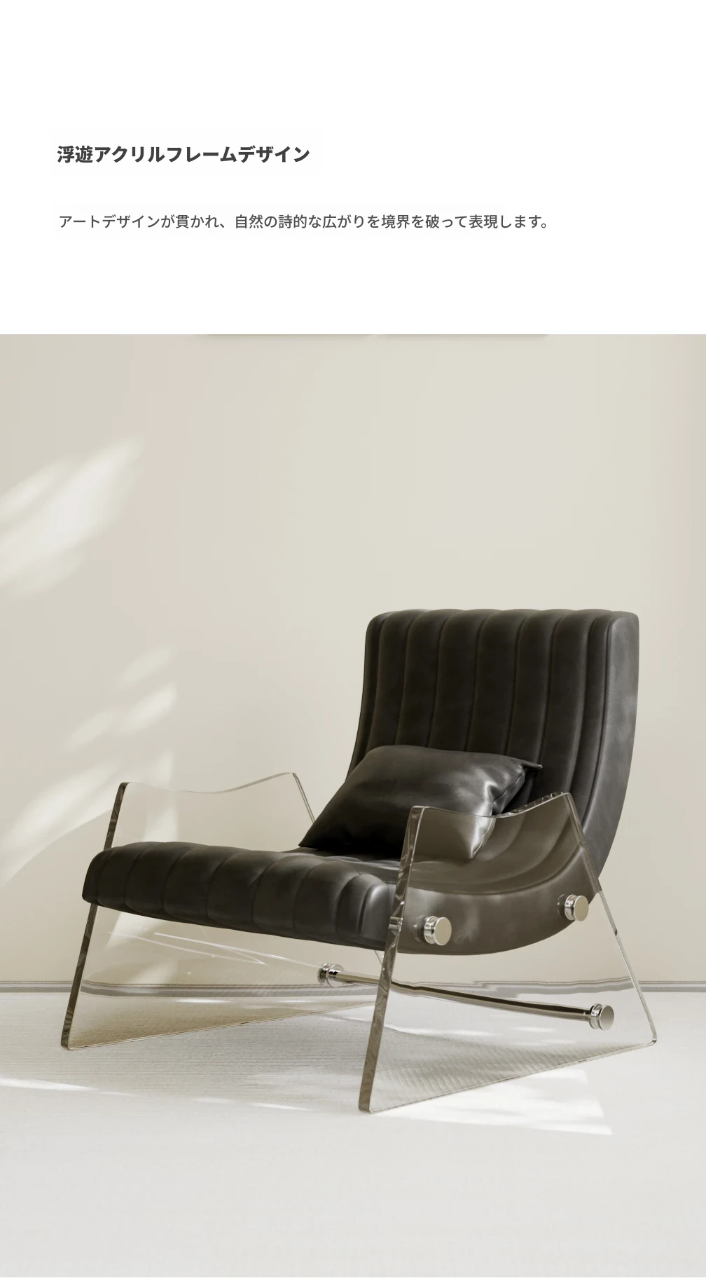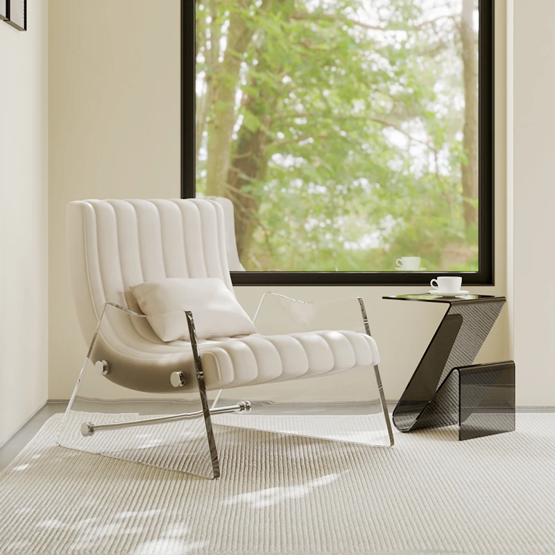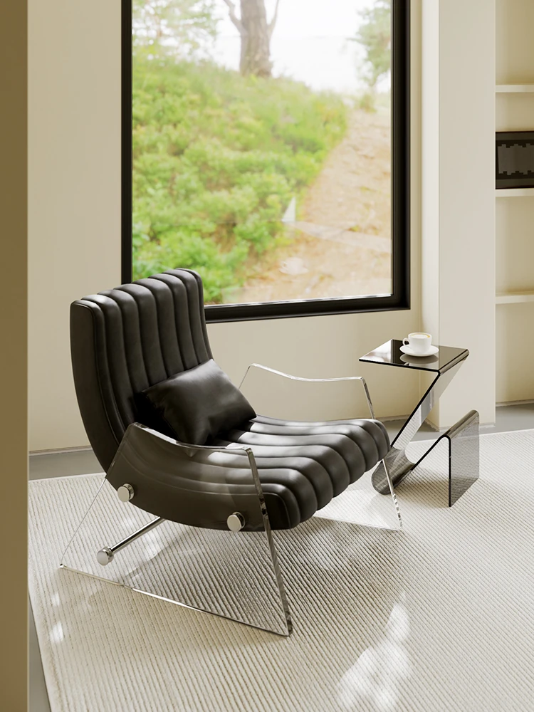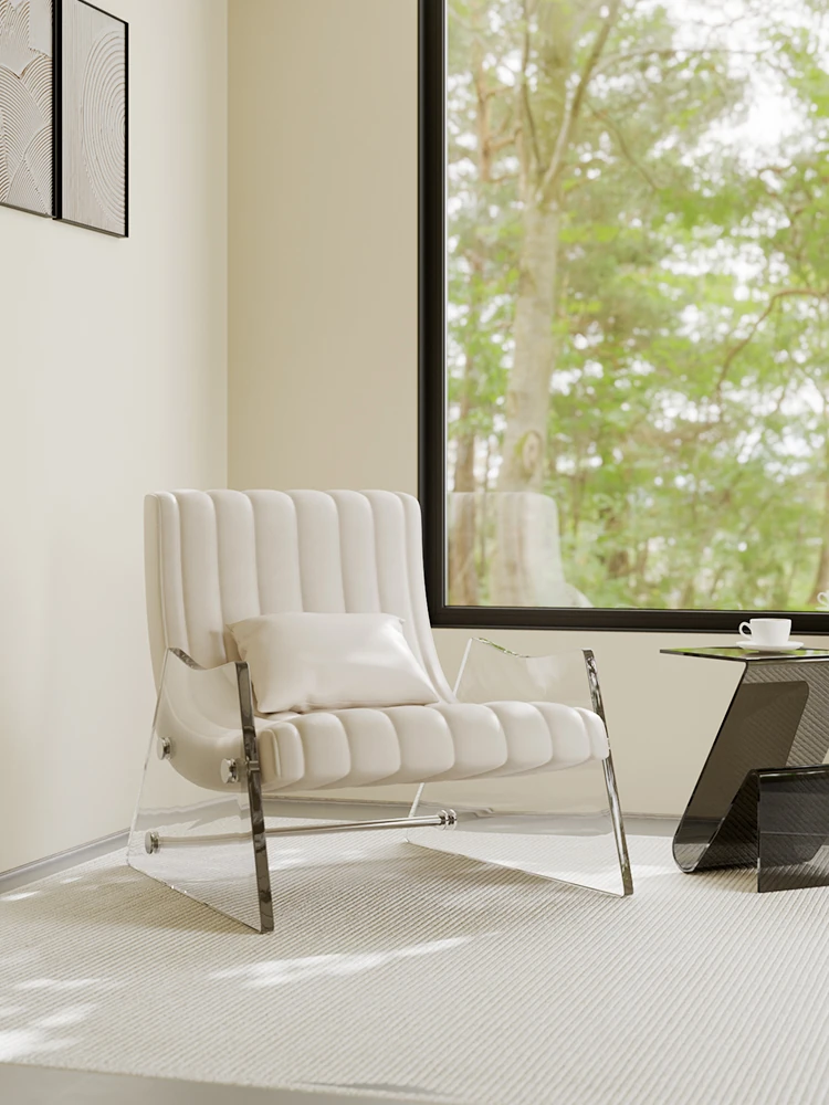 浮遊する透明アクリルの高級ワンシートソファ - 寝室やリビングに最適なデザイナー製レザー調リクライニングチェア。スタイリッシュで快適、あなたの空間を格上げする一品です!