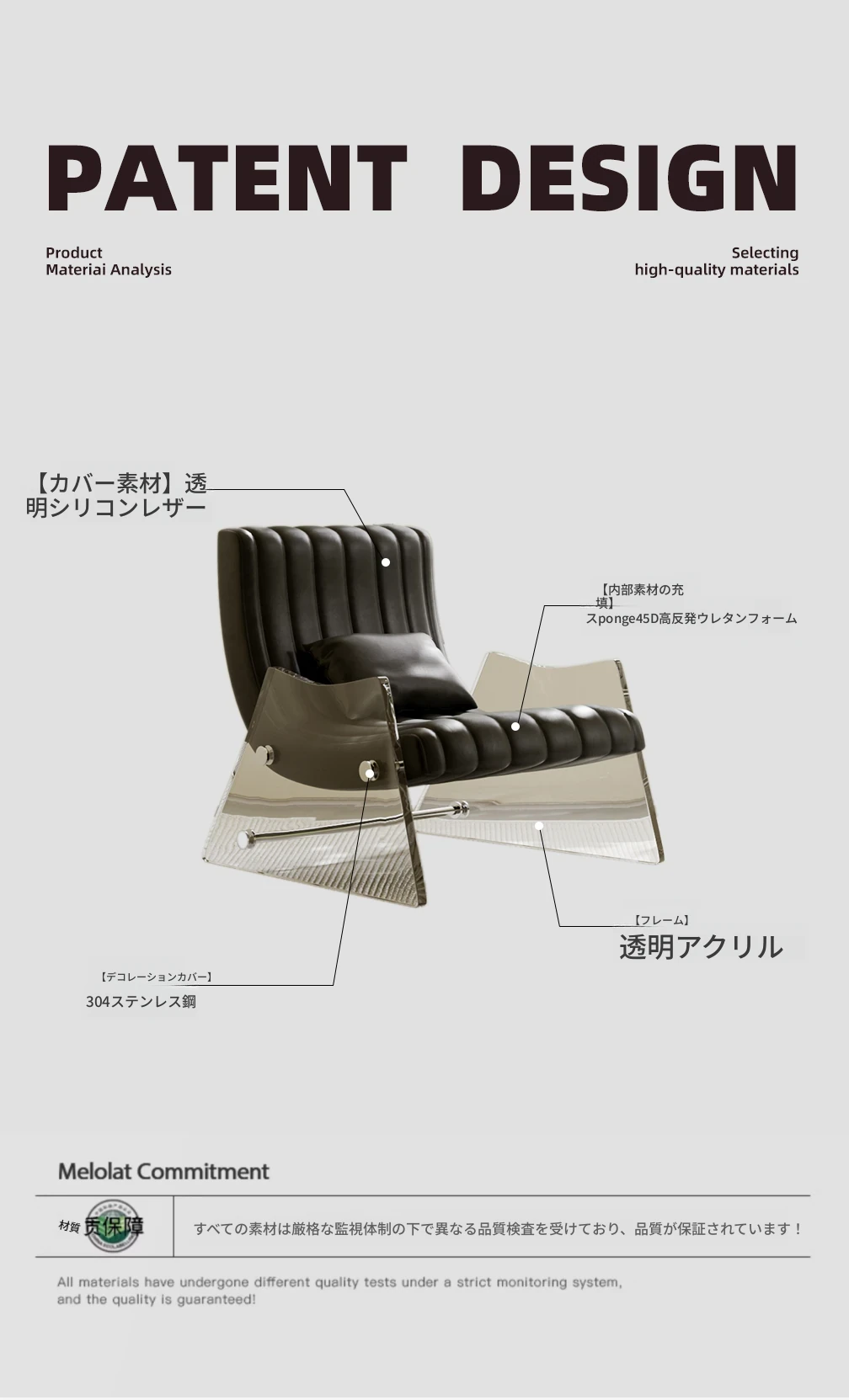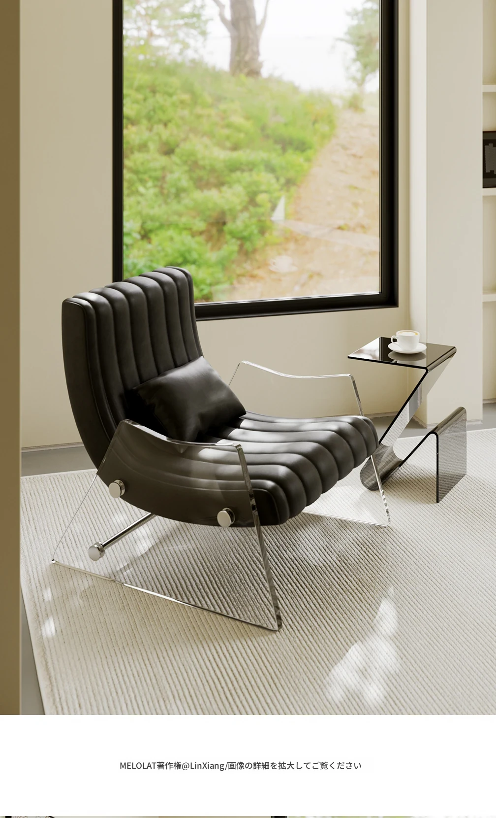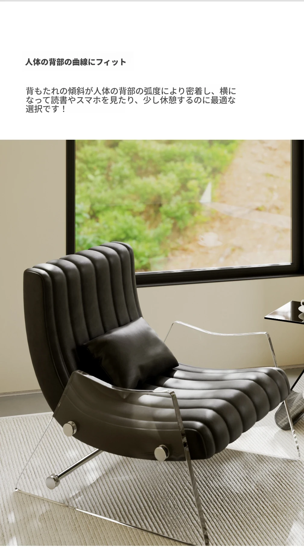 浮遊する透明アクリルの高級ワンシートソファ - 寝室やリビングに最適なデザイナー製レザー調リクライニングチェア。スタイリッシュで快適、あなたの空間を格上げする一品です!