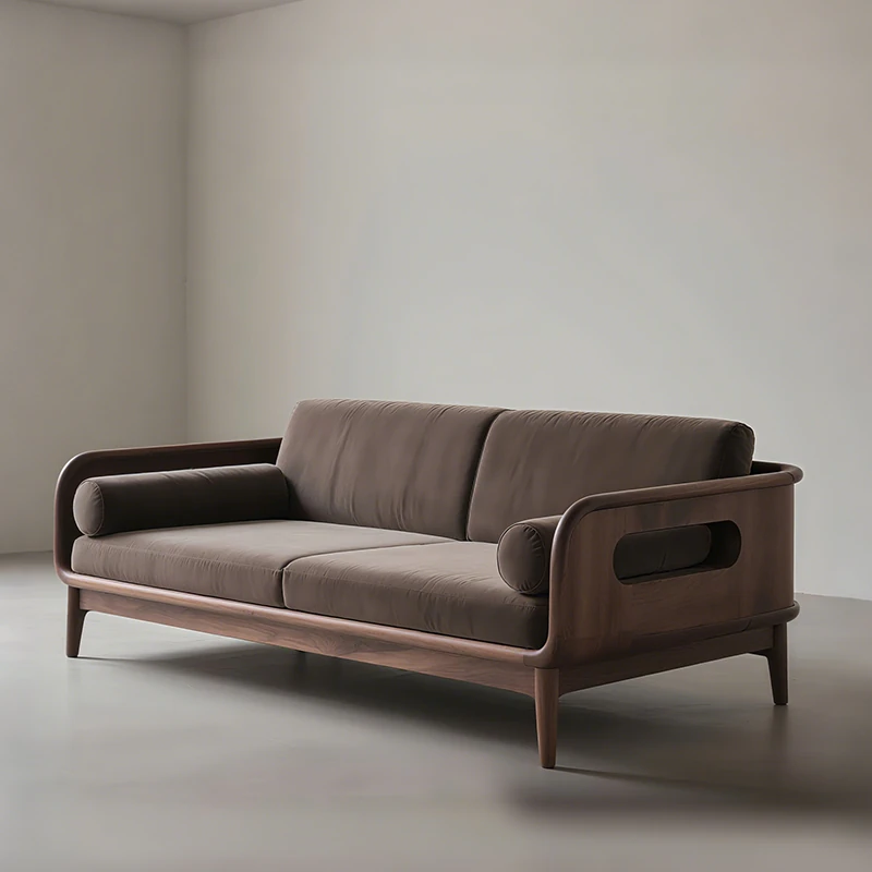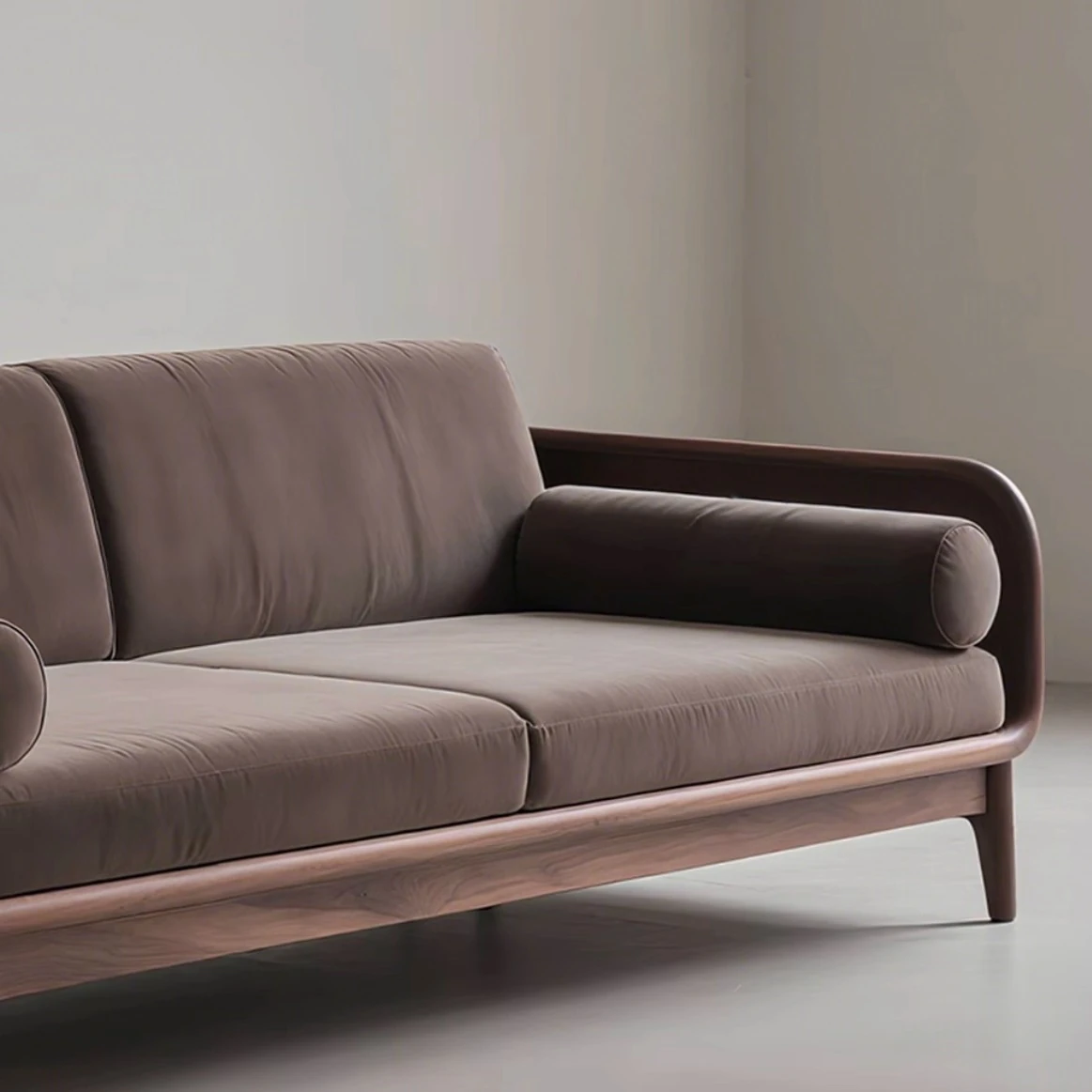 宋風美学の侘寂スタイル直置きファブリック軽奢ソファー|新中式デザインの接客・商談用|ウォールナット無垢材使用で高級感満載!