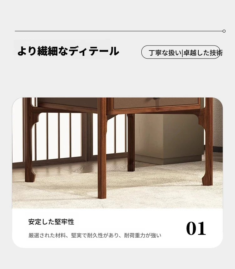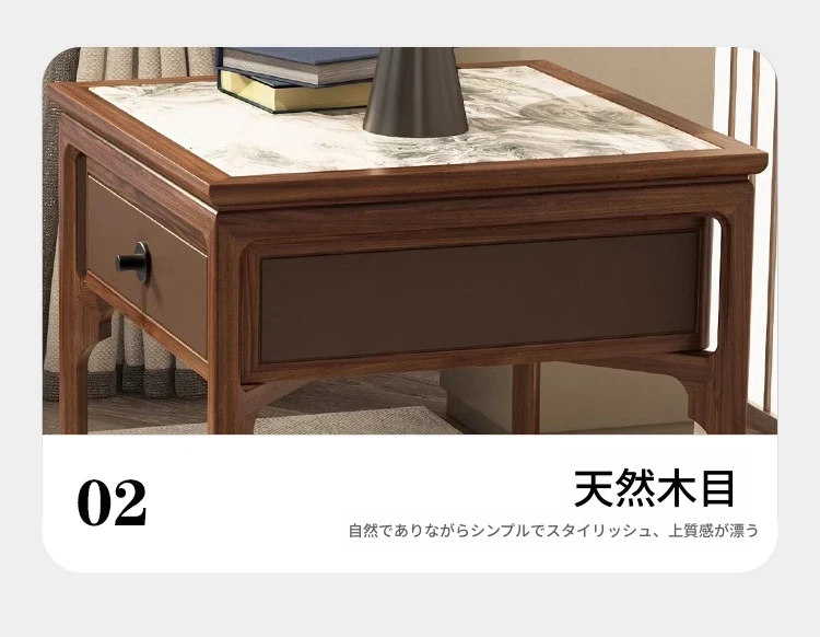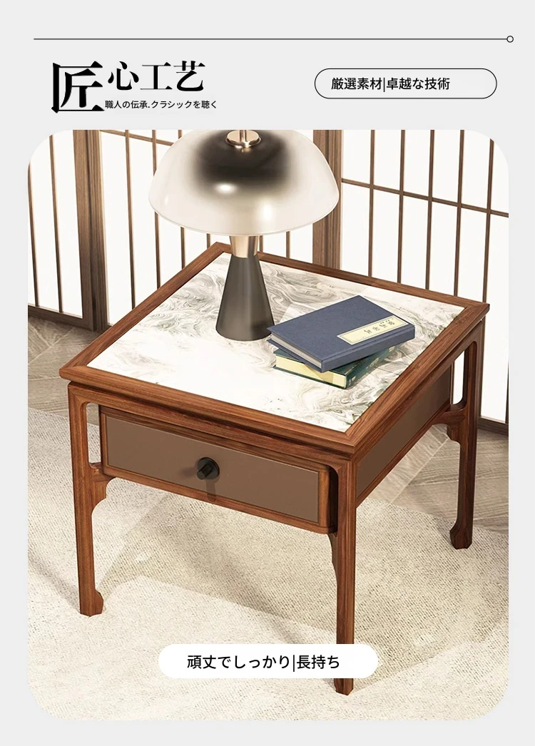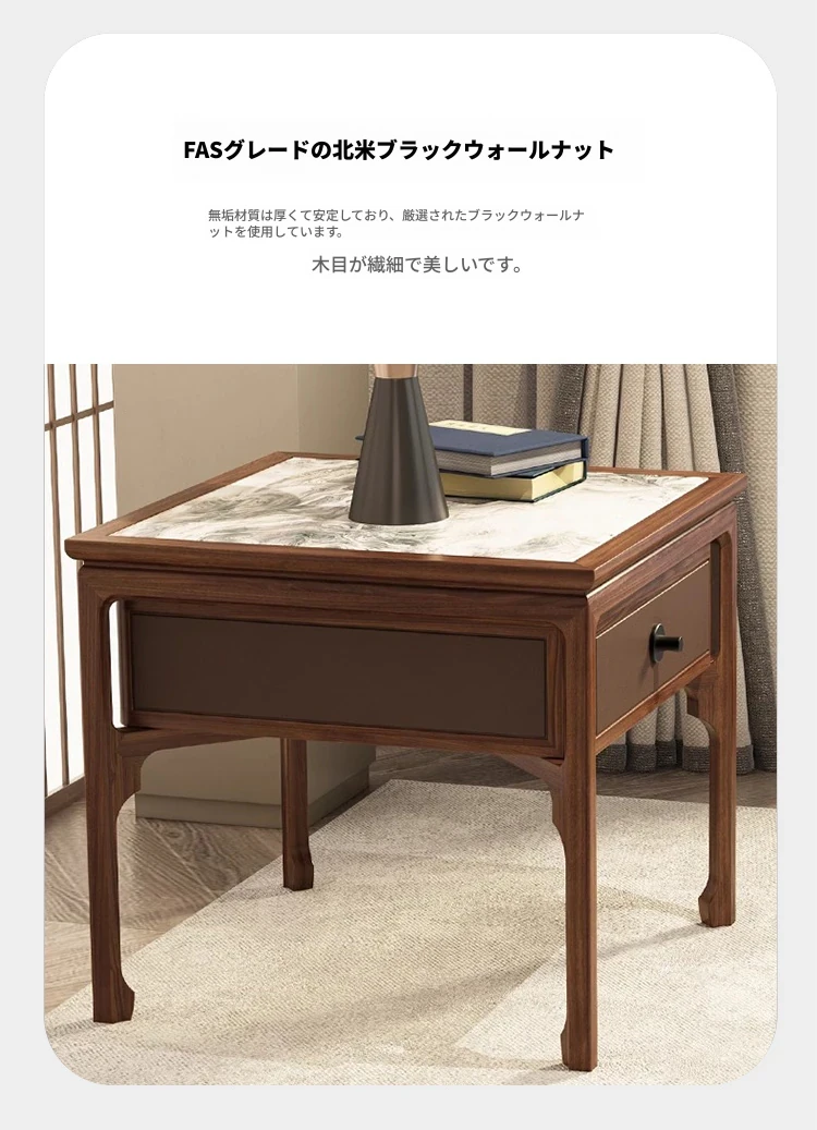 新中式デザインのウォールナット材使用!軽やかなラグジュアリー感漂う実木のサイドテーブル。リビングルームやソファのコーナーにぴったりな収納付きのスタイリッシュなサイドキャビネット!