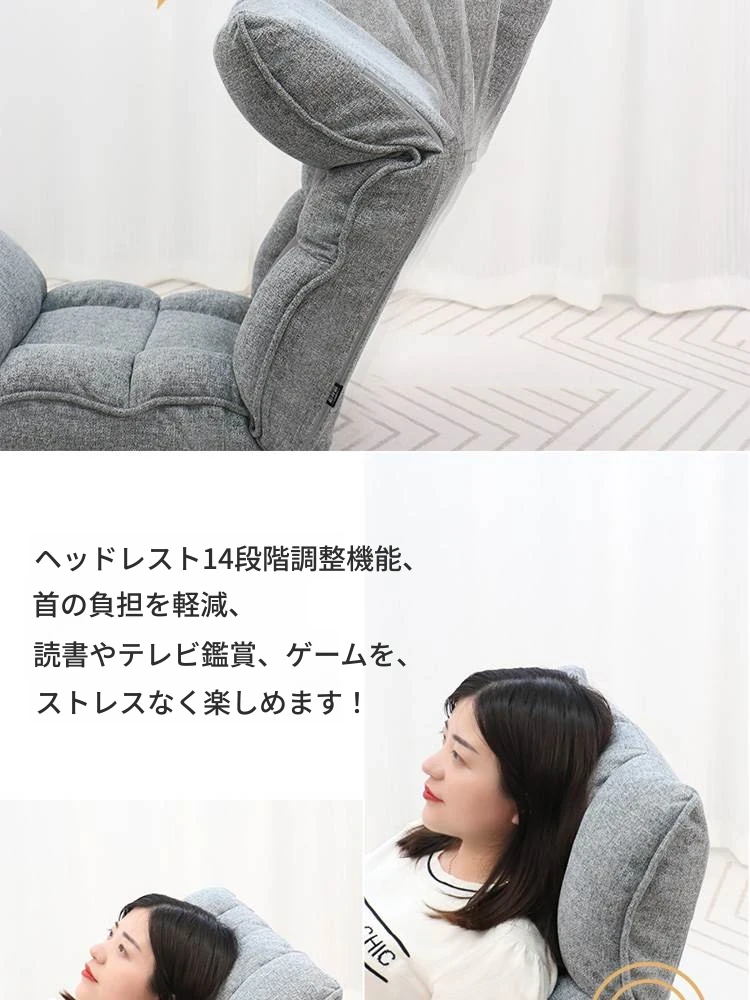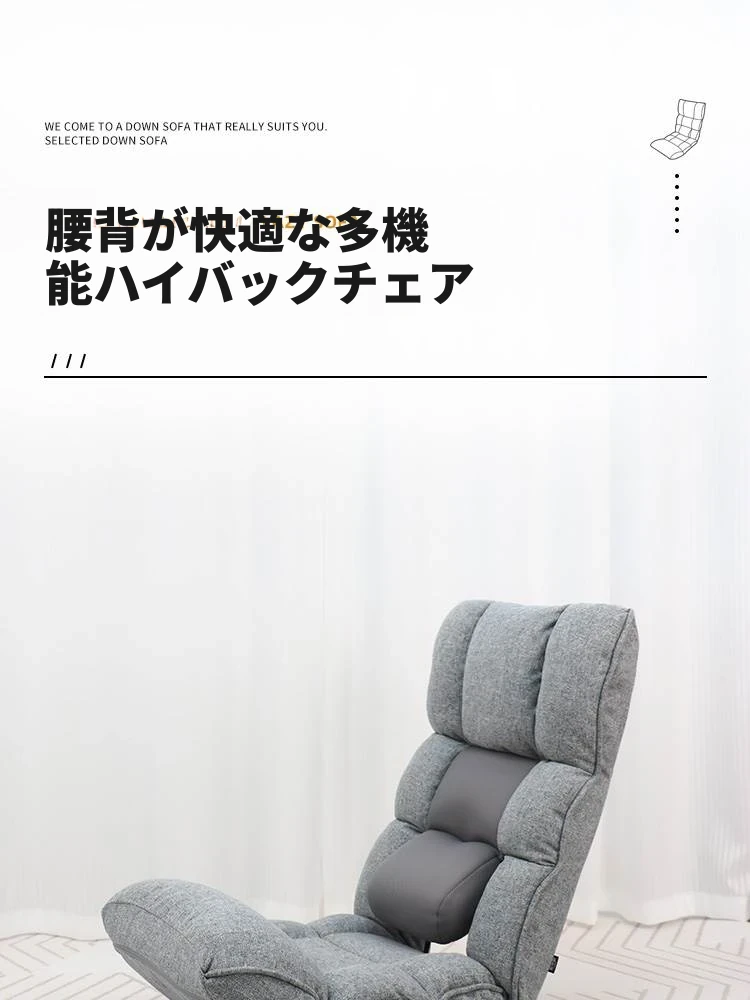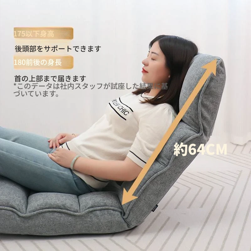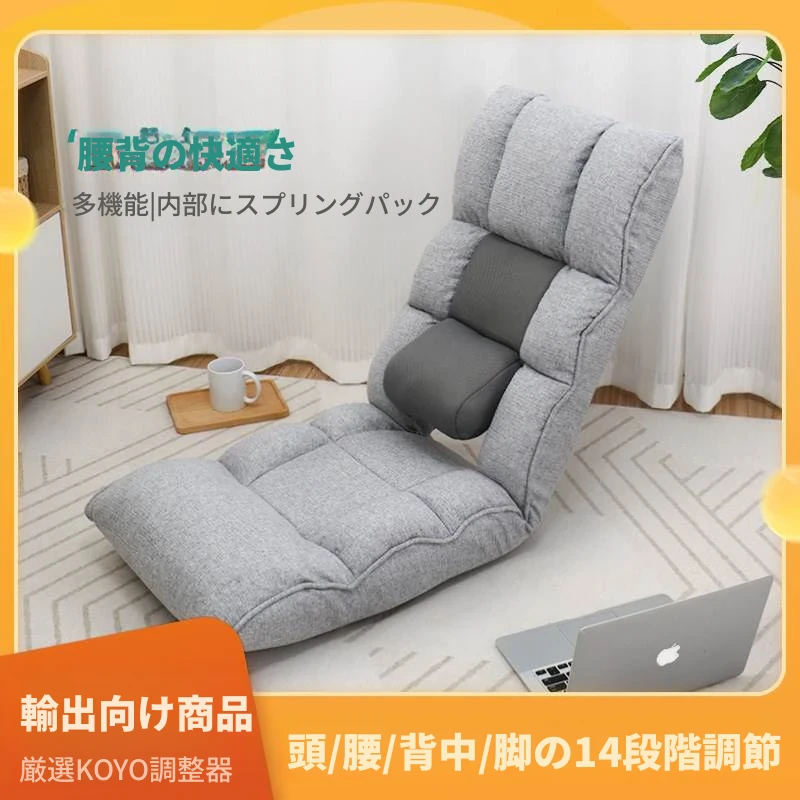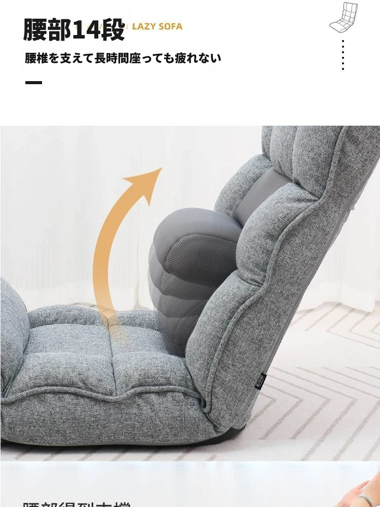 腰を守るリラックス・ソファ!折りたたみ式で、窓辺やベッドサイドにぴったり。快適な座り心地で読書やリラックスタイムをサポートします。タタミにも合うデザインで、どんな空間にもマッチ!