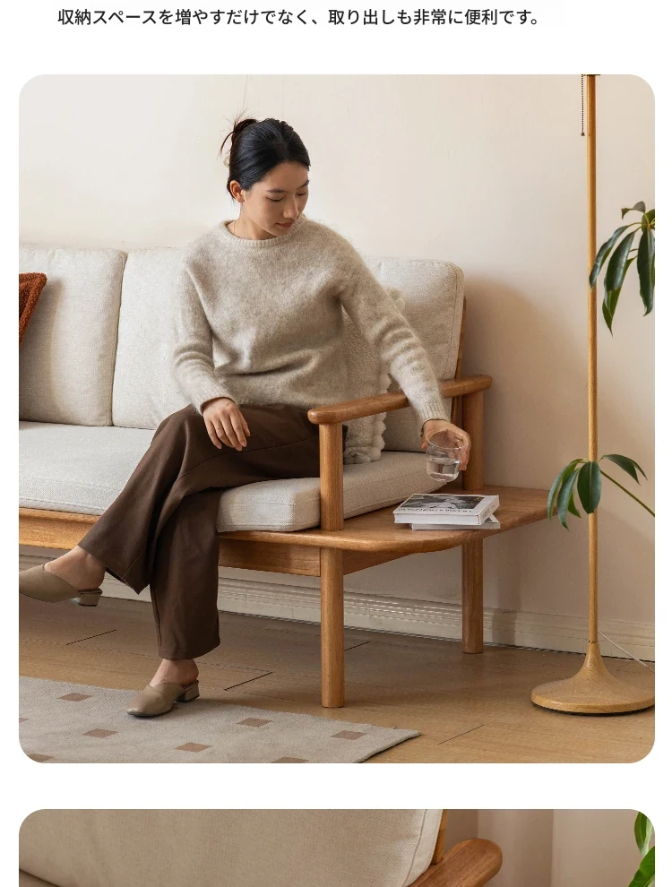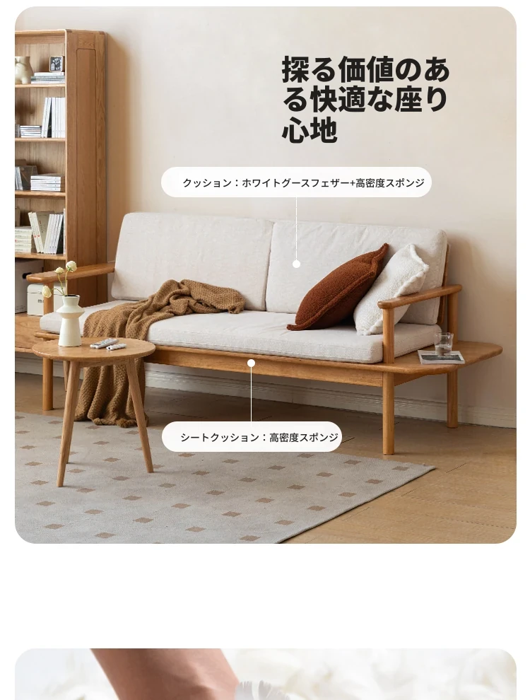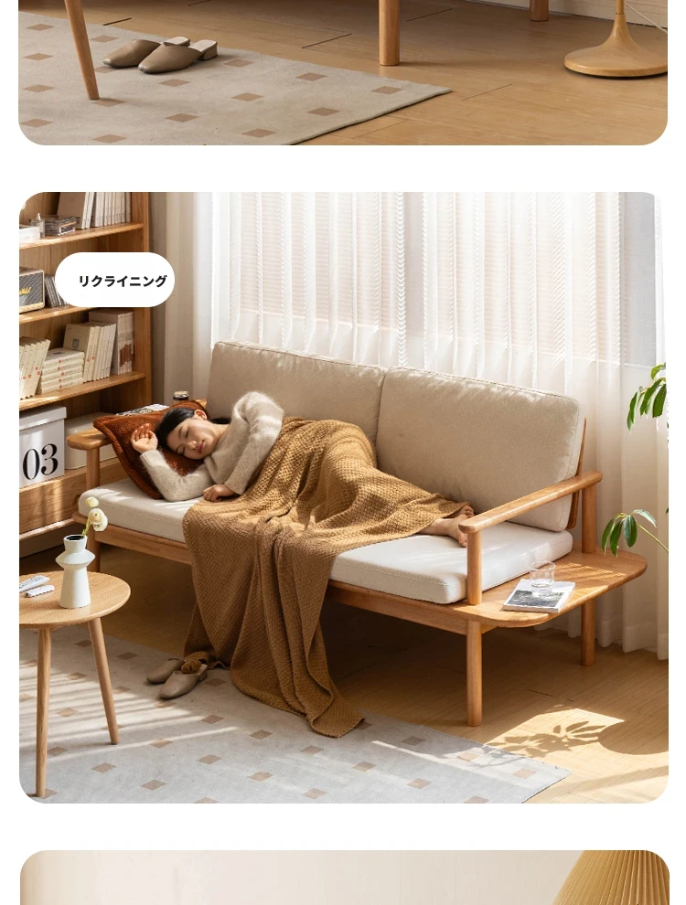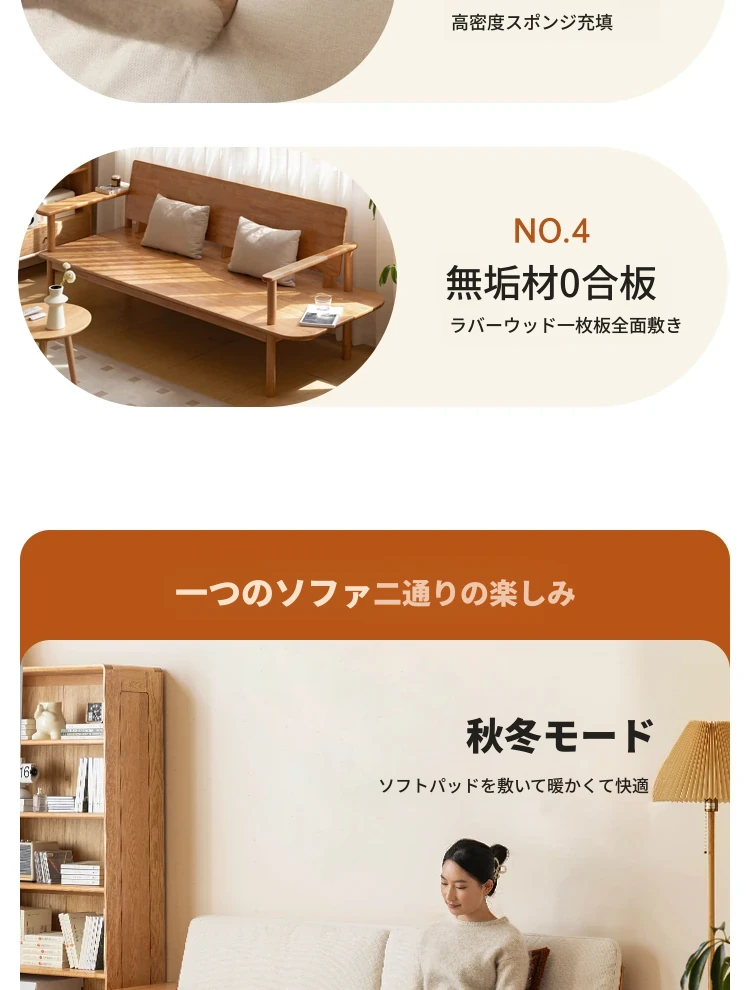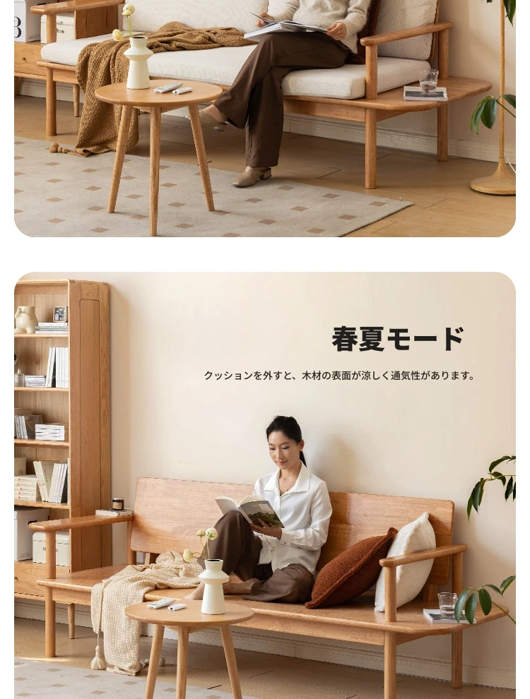 源氏木语x维莎の天然木製ソファ - 小型リビングにぴったりな3人掛け!四季対応で快適な座り心地、自然素材の美しさを感じるシンプルデザインソファ!