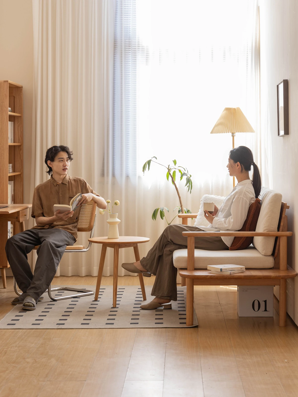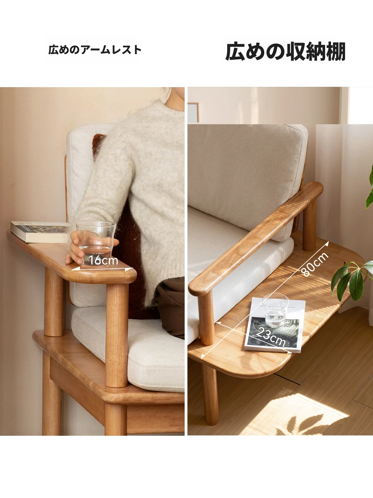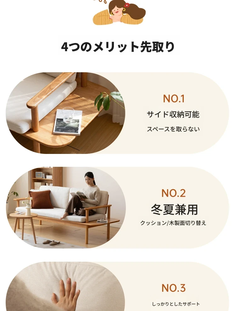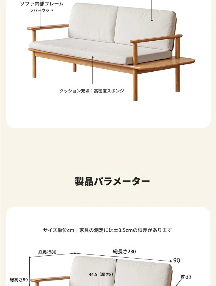 源氏木语x维莎の天然木製ソファ - 小型リビングにぴったりな3人掛け!四季対応で快適な座り心地、自然素材の美しさを感じるシンプルデザインソファ!