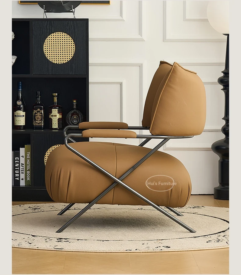 Genuine Leather Single Sofa Chair - Luxurious Eco-Friendly Lounge Chair for Living Room, Balcony, and Reception Areas - Perfect for Relaxation and Conversations