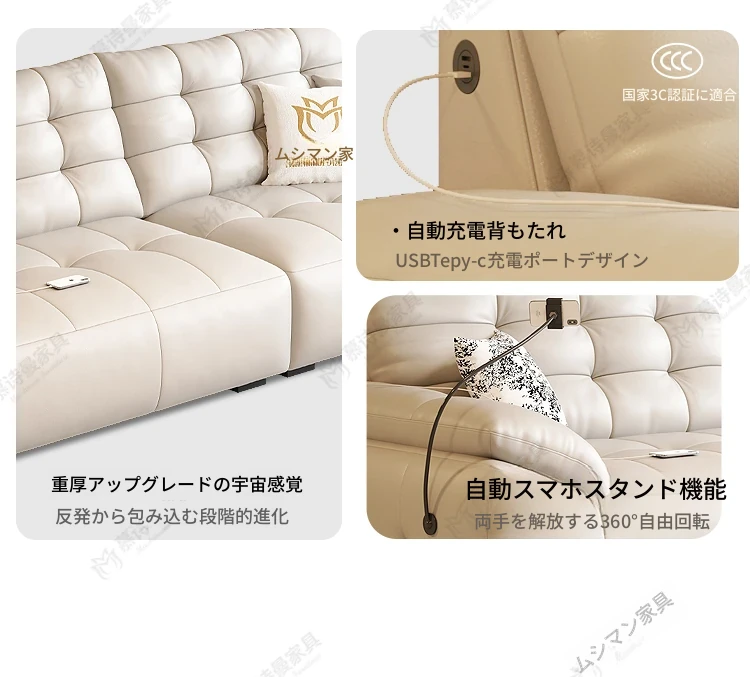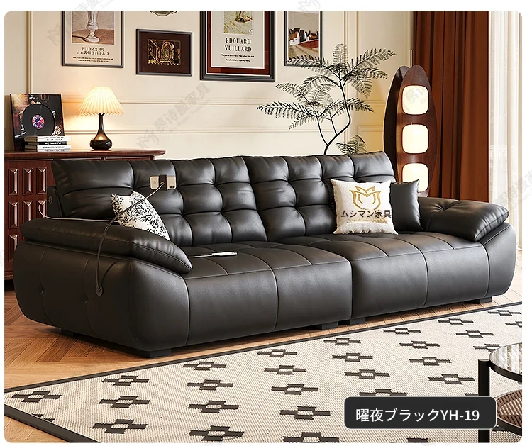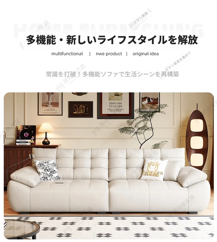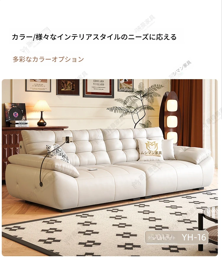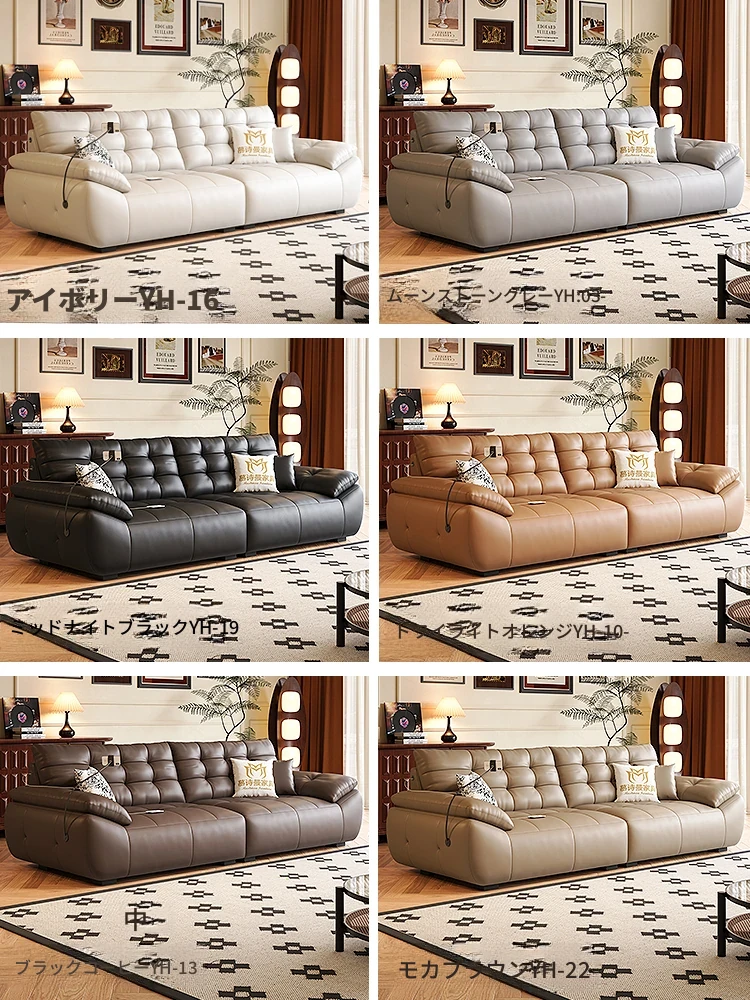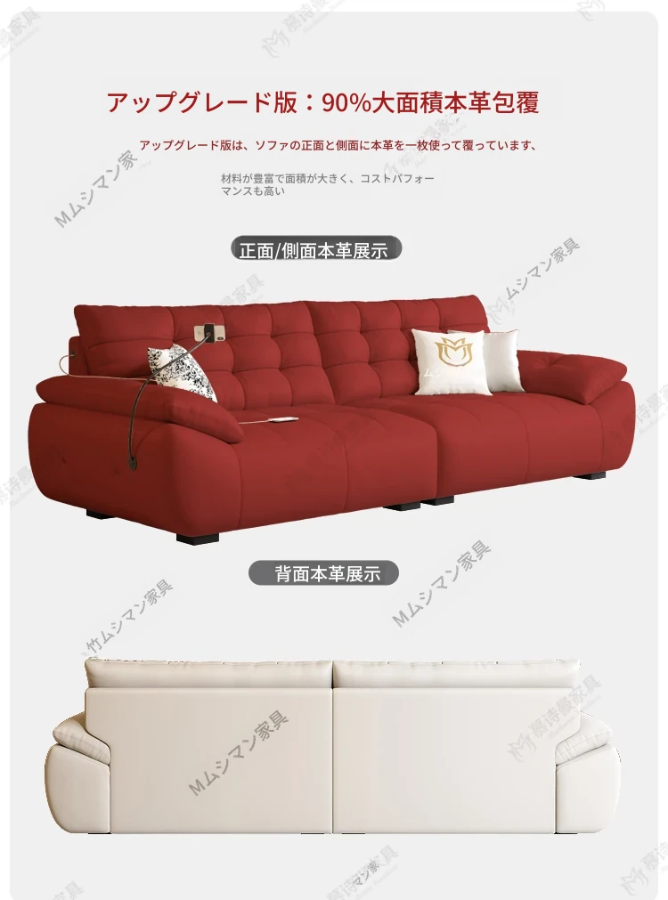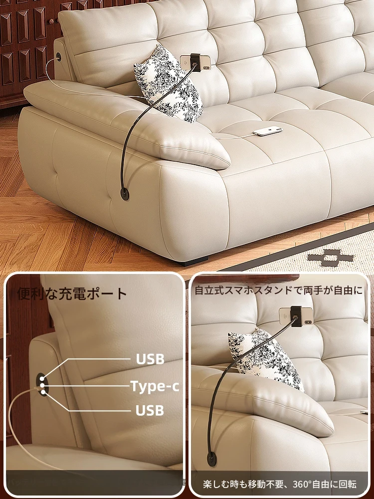 本革ソファー 高級トップグレイン牛革 イタリアンヴィンテージスタイル リビングルーム向け 中古風 スペースクラウド 多機能充電 雲型デザインで快適な癒し空間を実現!