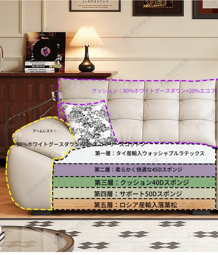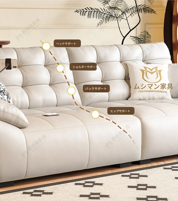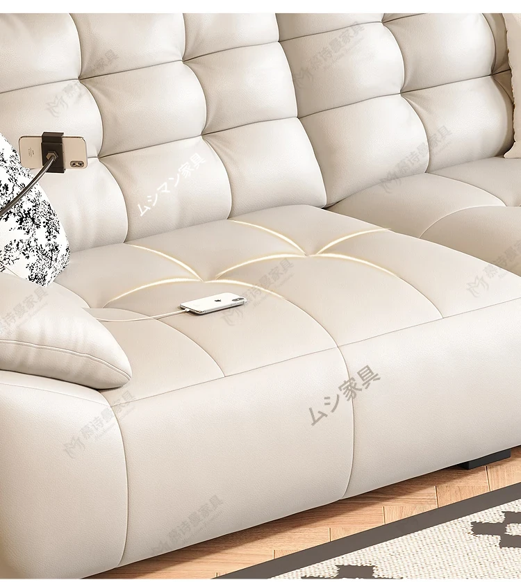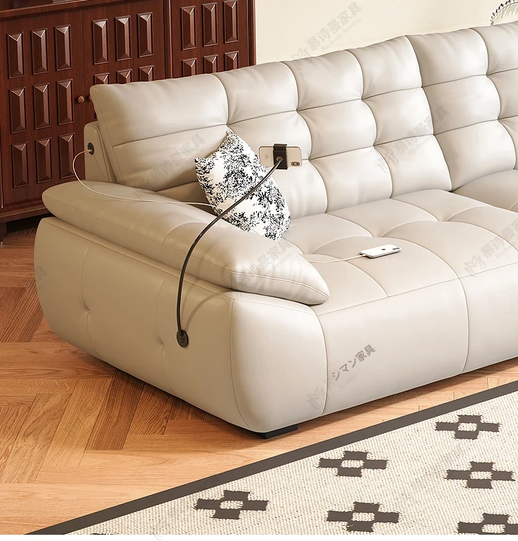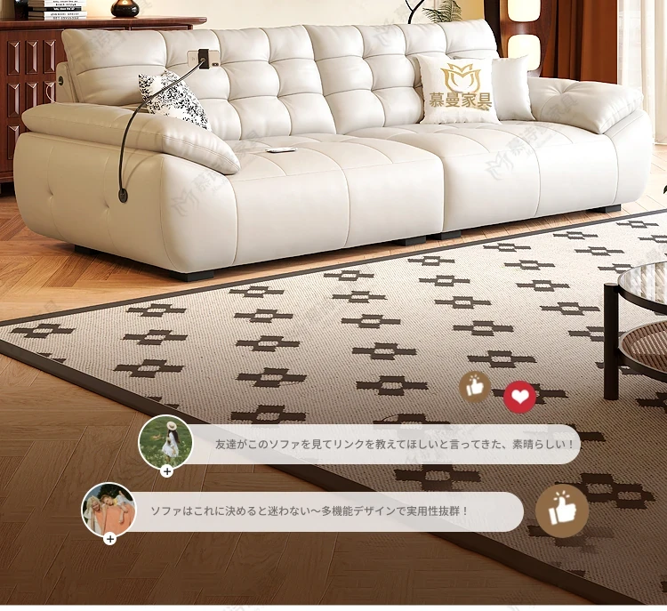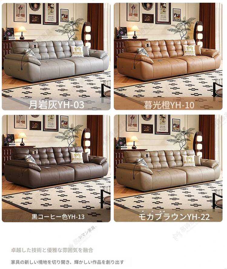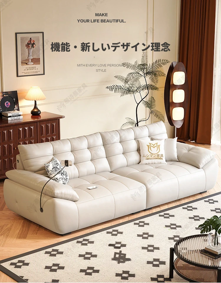 本革ソファー 高級トップグレイン牛革 イタリアンヴィンテージスタイル リビングルーム向け 中古風 スペースクラウド 多機能充電 雲型デザインで快適な癒し空間を実現!