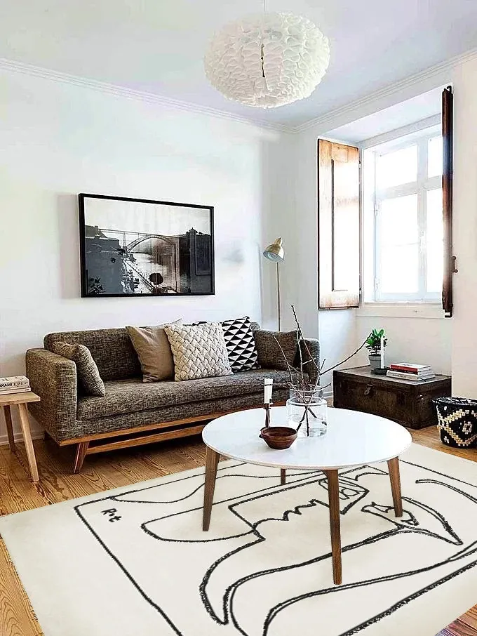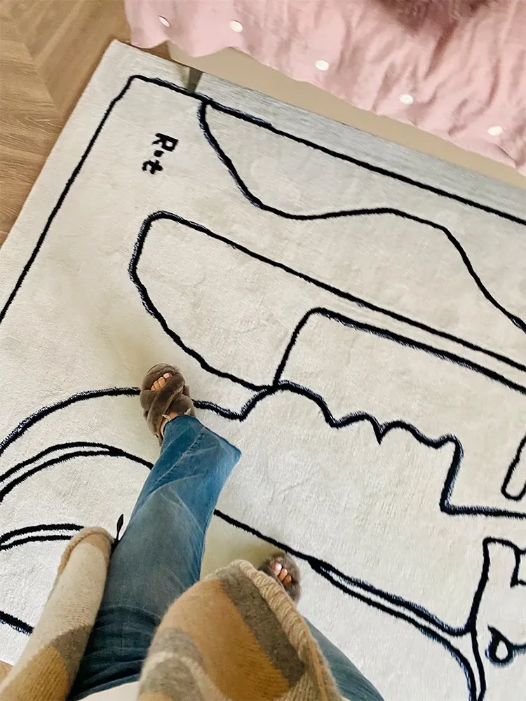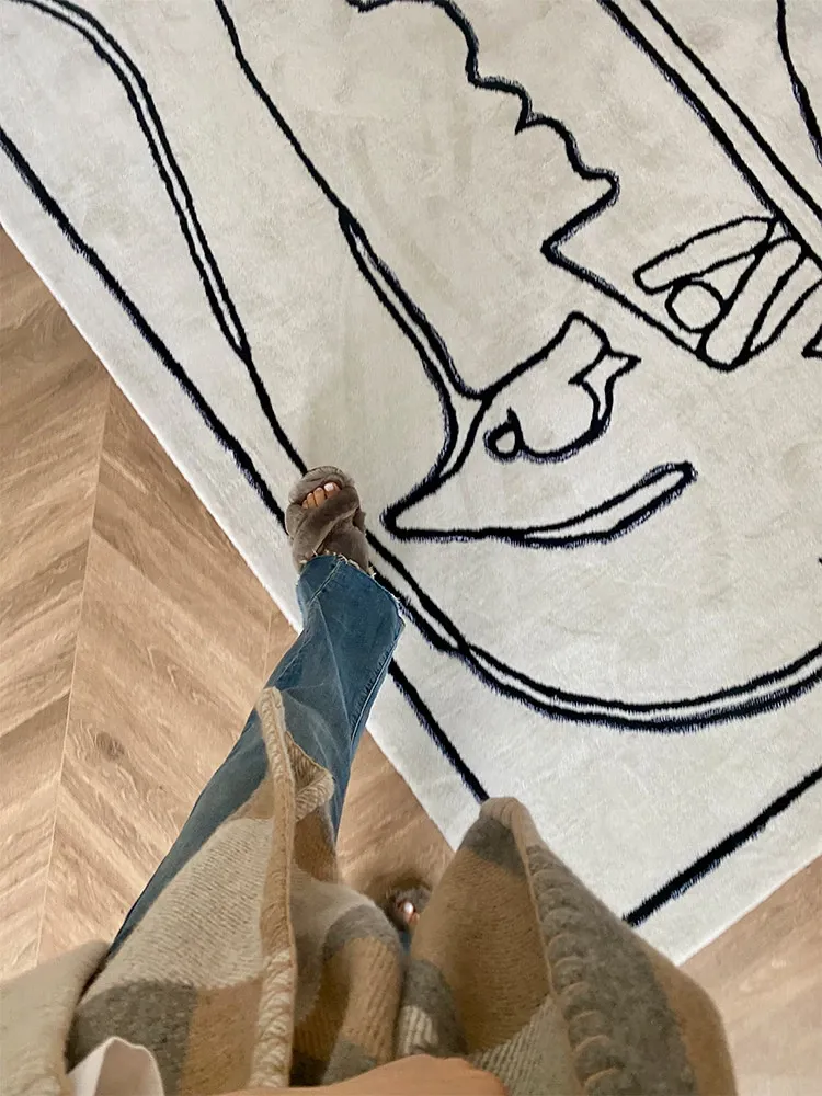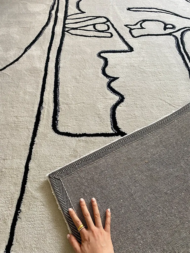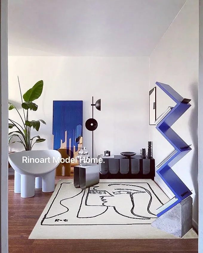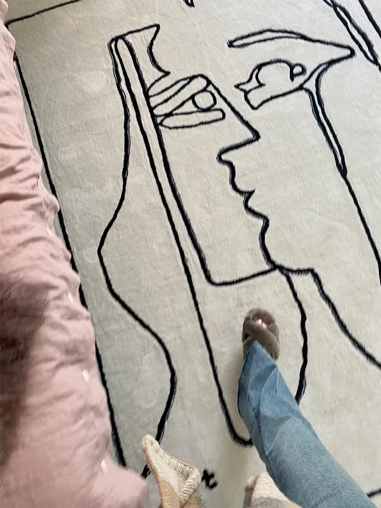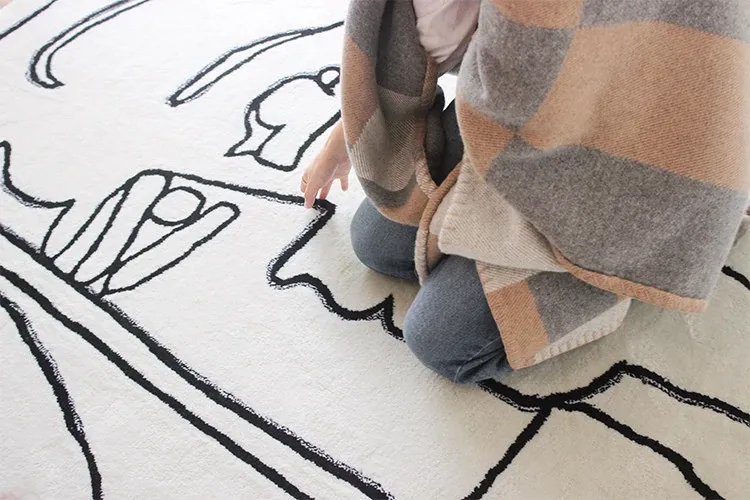 ピカソカップル 手描き「生まれながらのペア」象灰色ラグ ベッドサイドマット 厚手ハンドライン