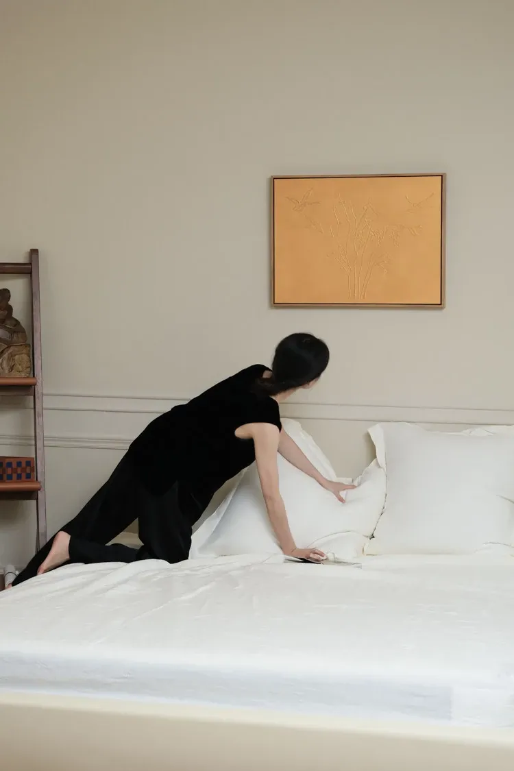 若奈の新作!フランスシルク級のピュアフラックスリネン大クッション、芯付きで寝室を華やかに演出!心地よい抱きしめ感でリラックス空間を実現!