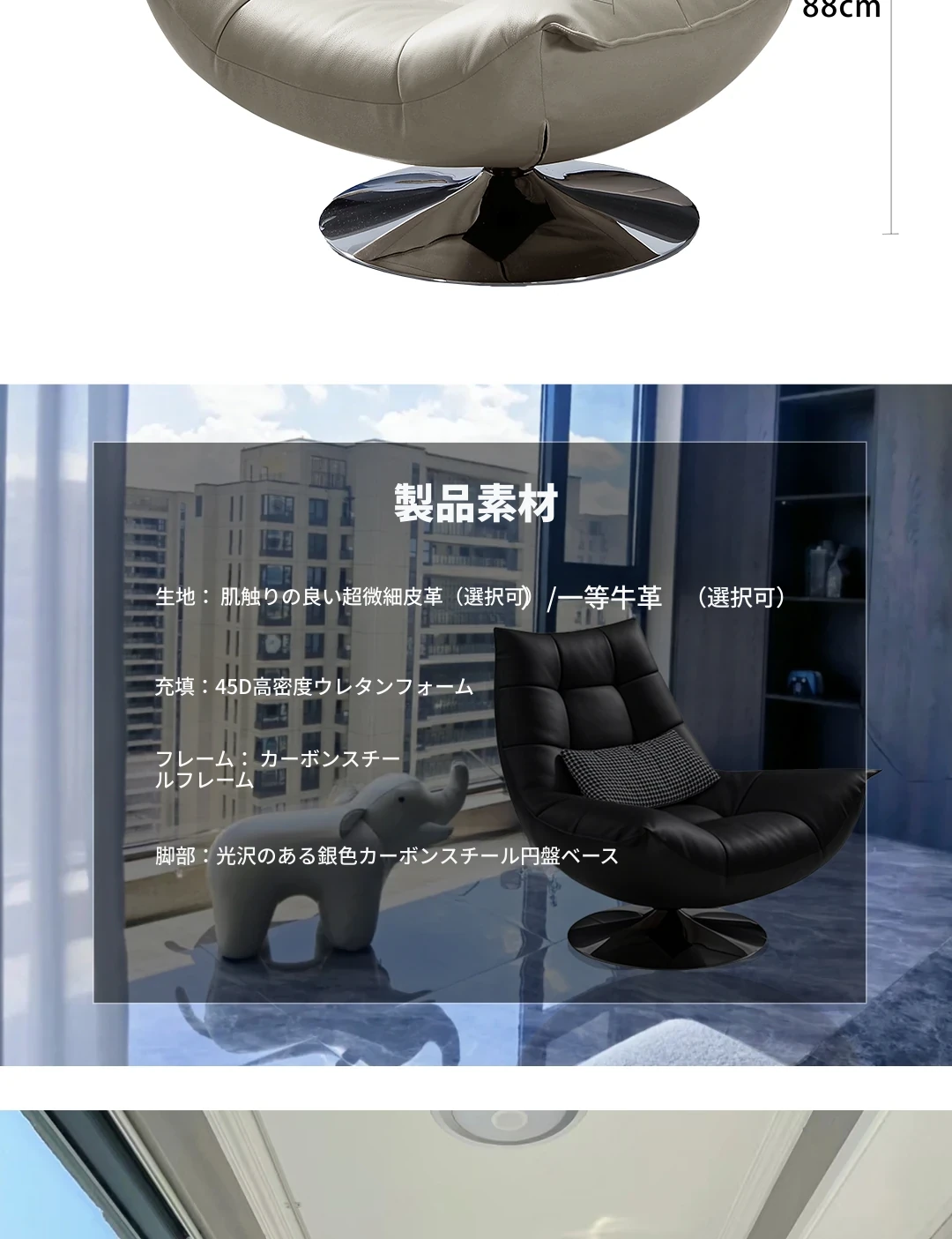 カスタム全トップグレイン牛革単椅子の色選択はカスタマーサービスにお問い合わせください