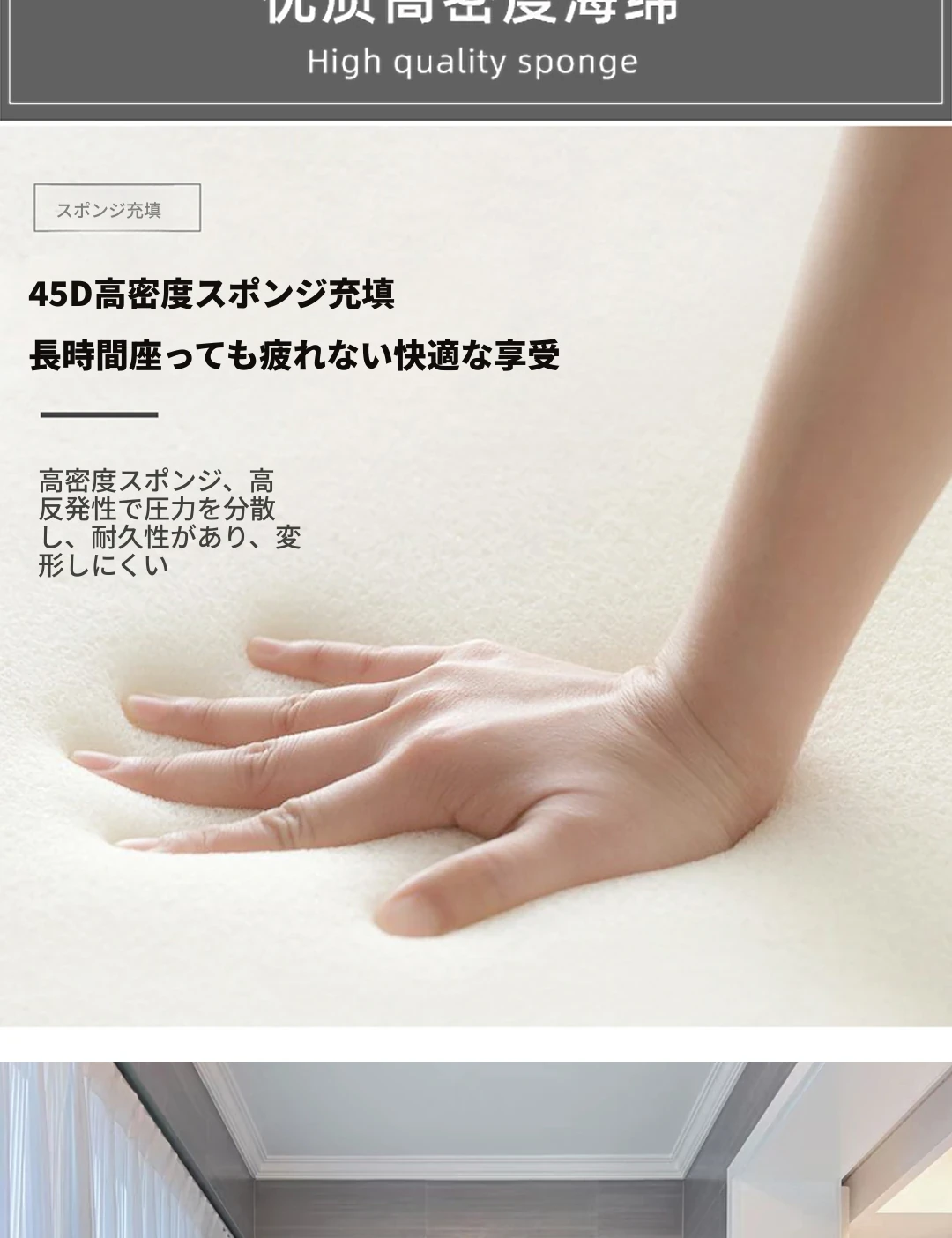 アイボリーの超ファイバーレザー単椅子と千鳥格の腰枕付き