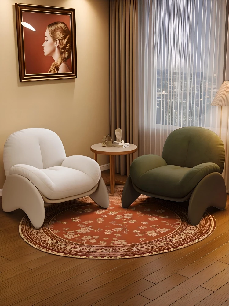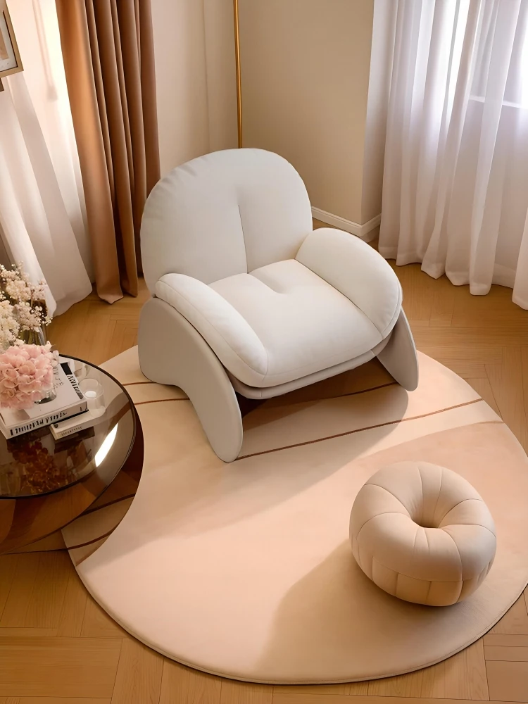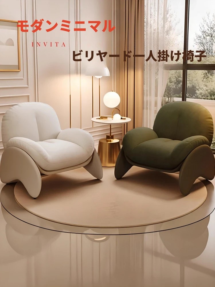 イタリアンミニマル軽奢リラックス1人掛けチェア|寝室・リビング・バルコニーに最適|モデルルーム・民宿・小型住宅にぴったりなラウンジソファ!心地よいひとときをお届けします。