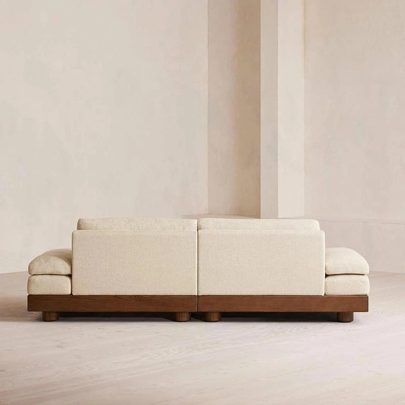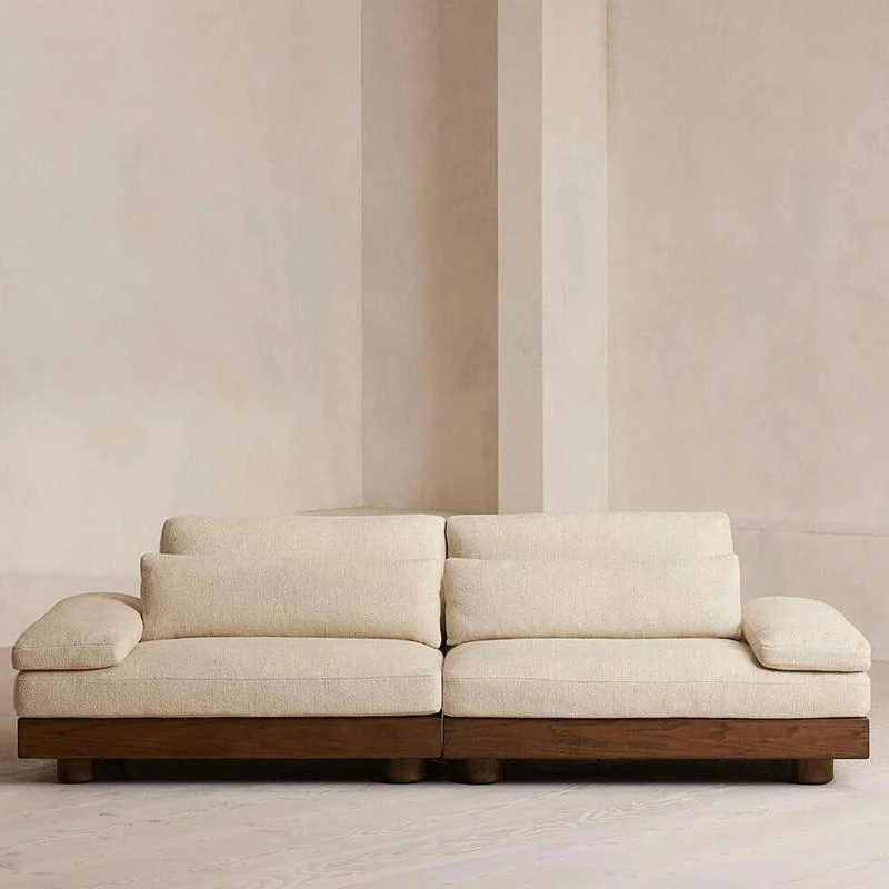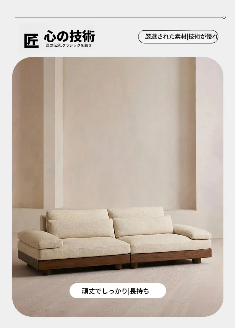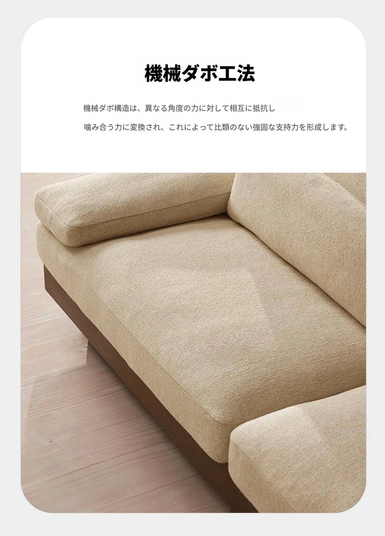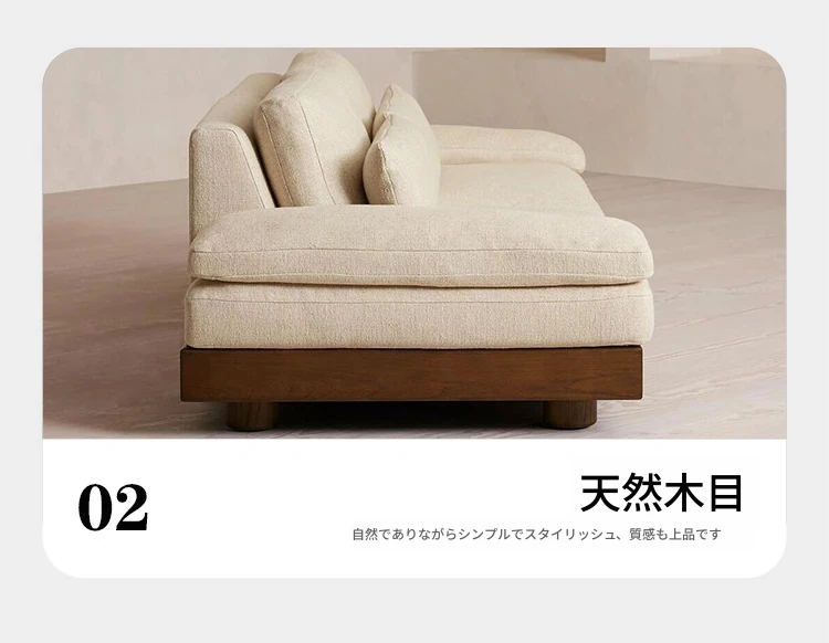 イタリアンミニマリズムのリビングルーム用、天然木とファブリックの3人掛けソファ。別荘やサロン、販売センターに最適な新中式スタイル。洗練されたデザインで、居心地の良い空間を演出します!