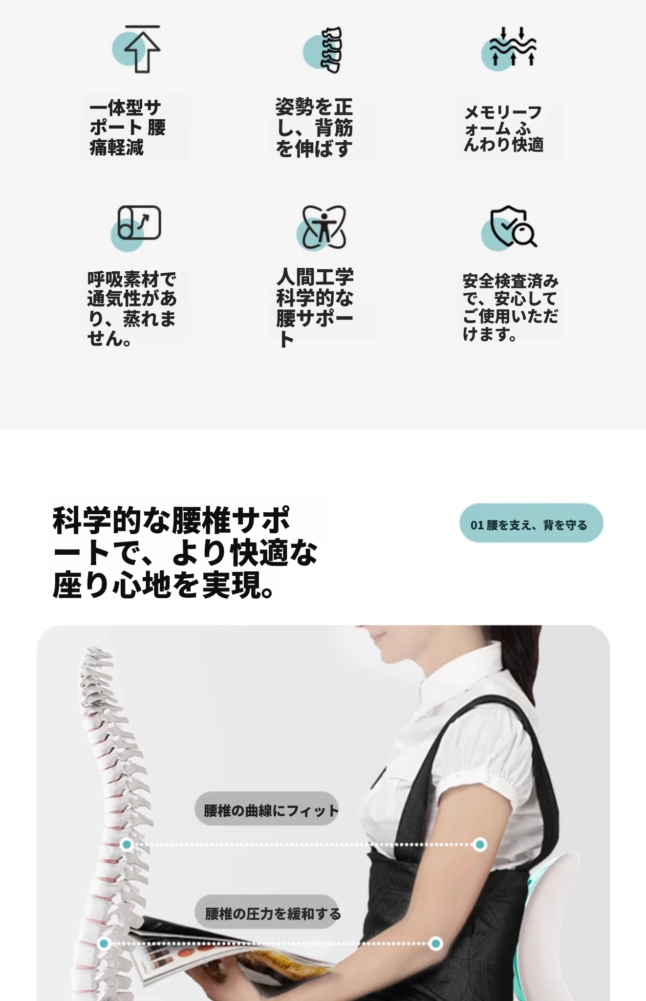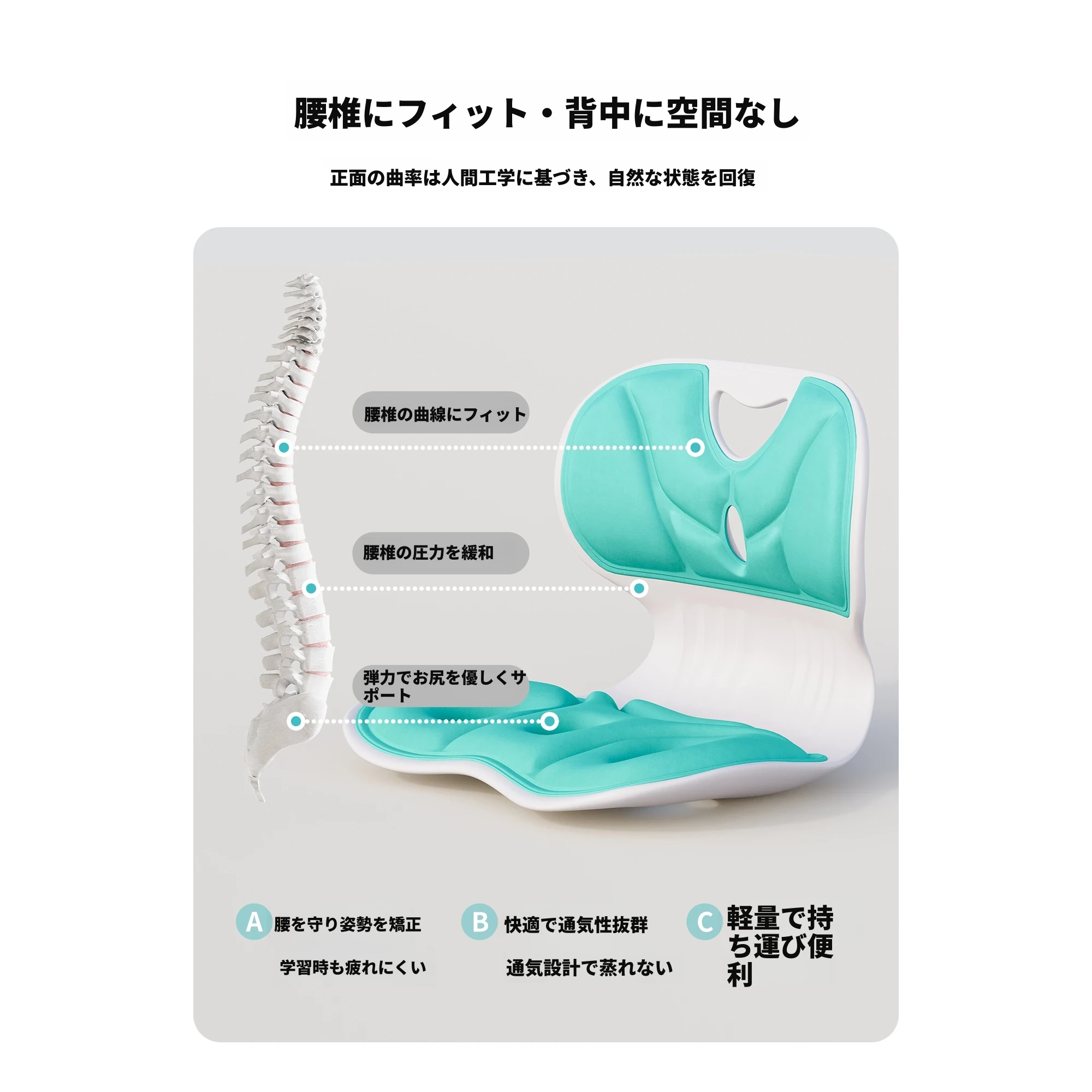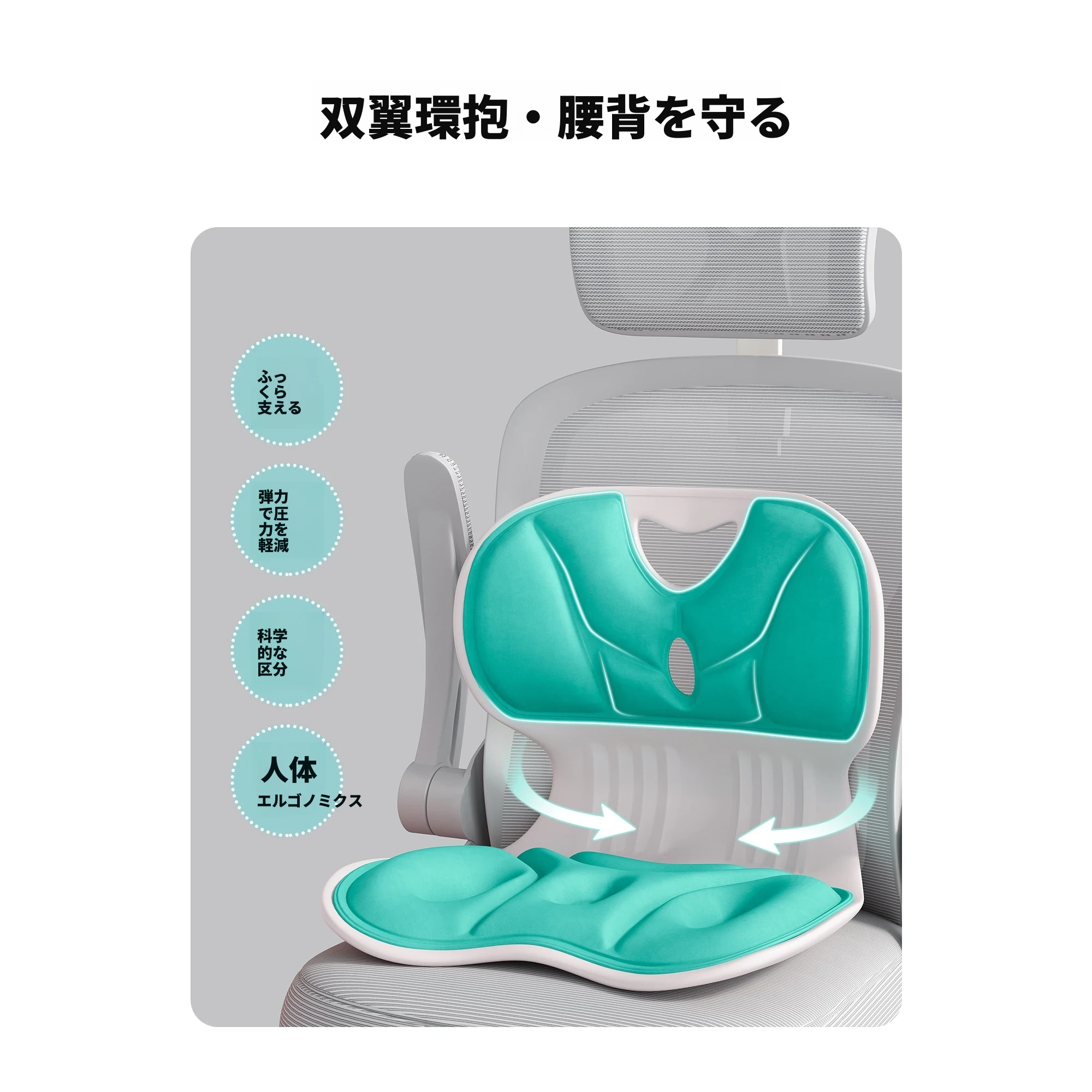 成人用【腰サポート姿勢矯正】静かなグリーン