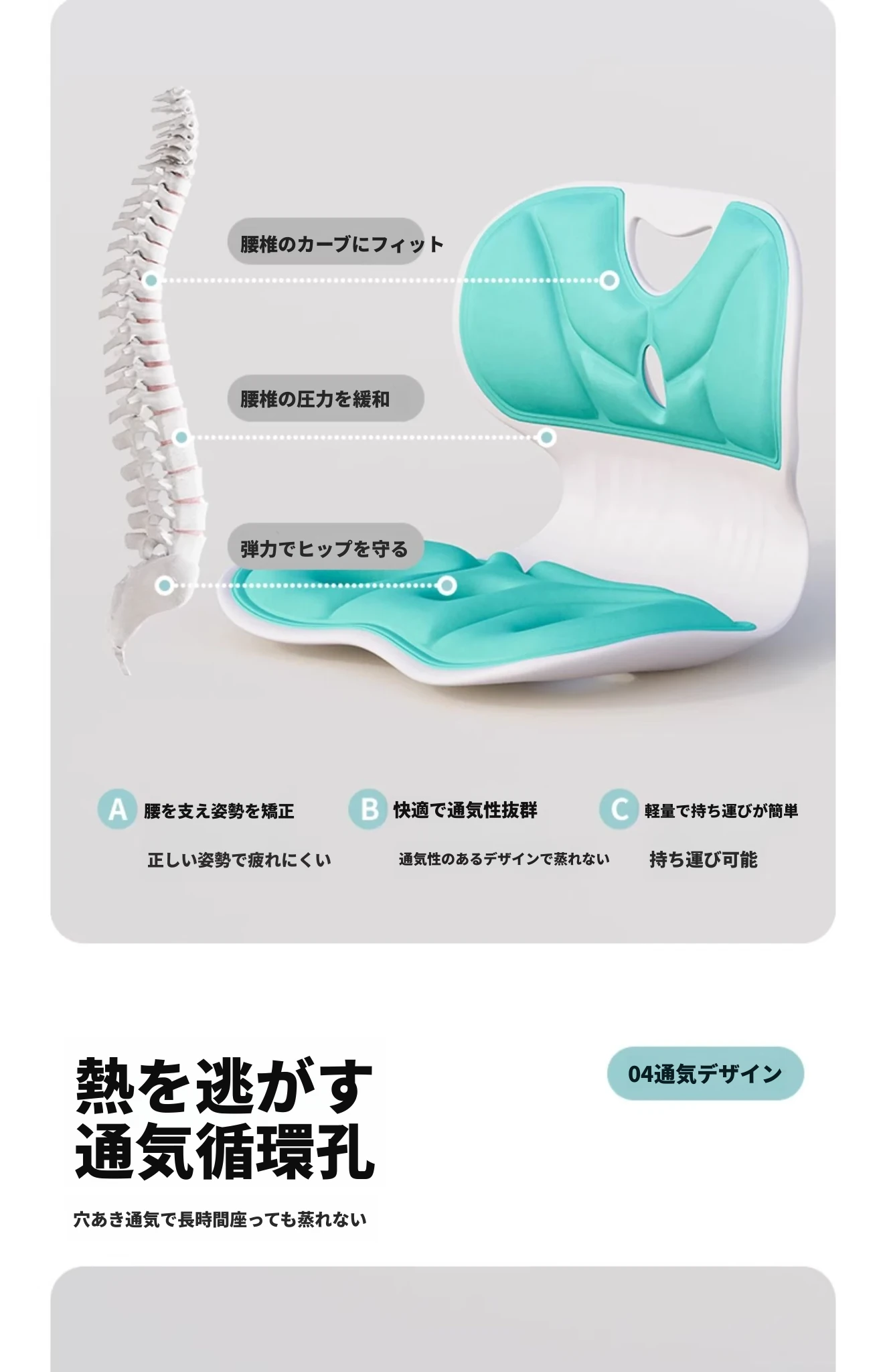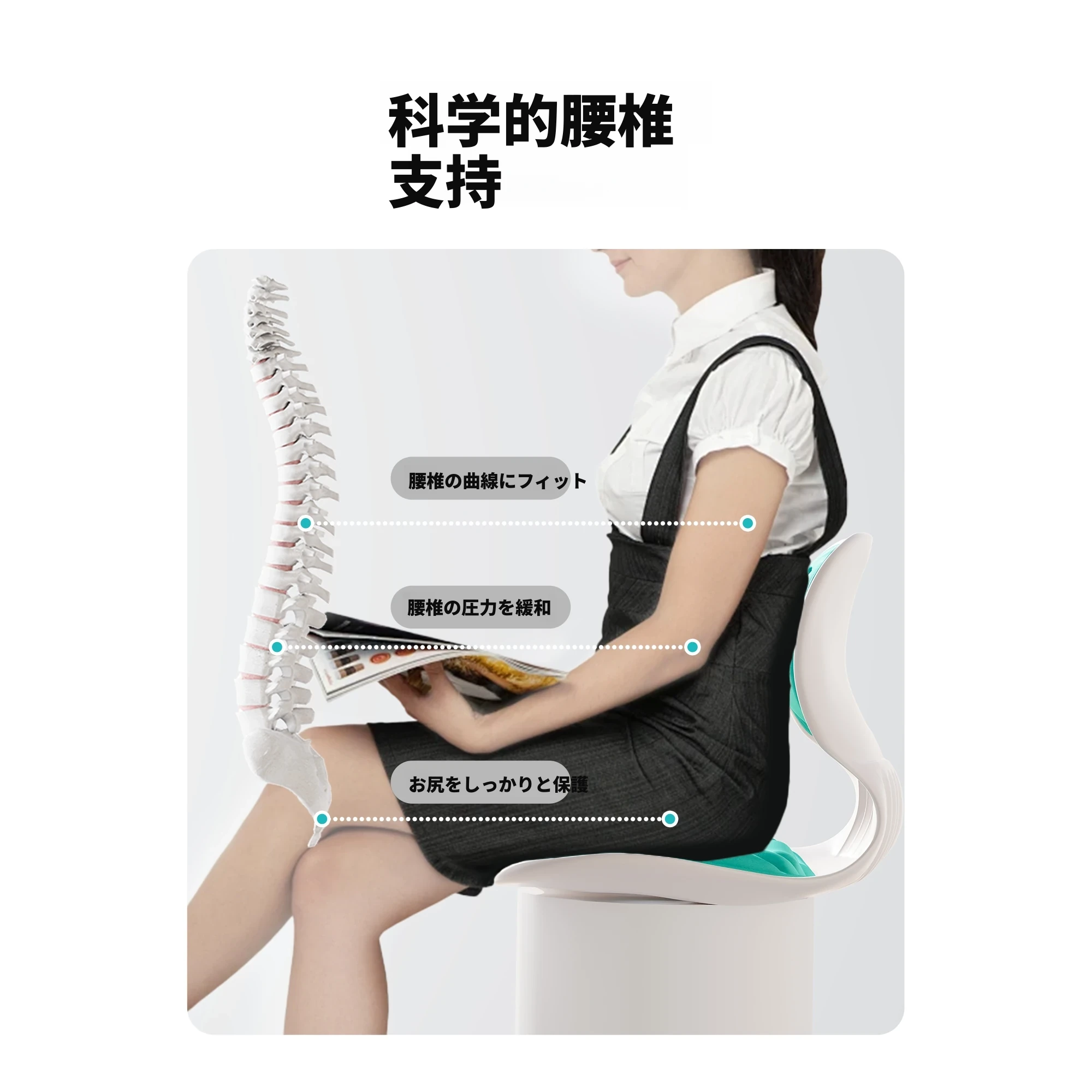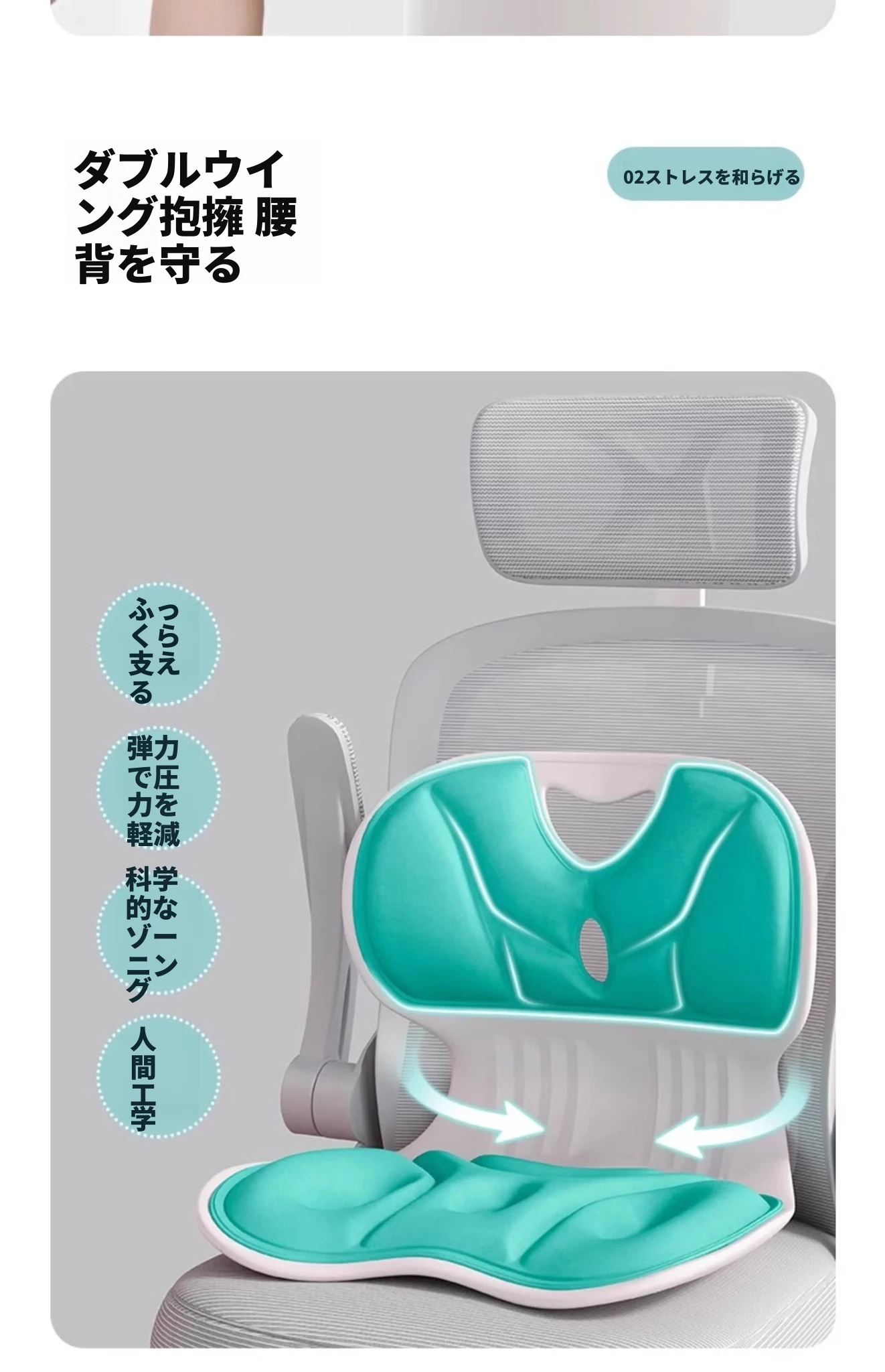 成人用【腰サポート姿勢矯正】静かなグリーン